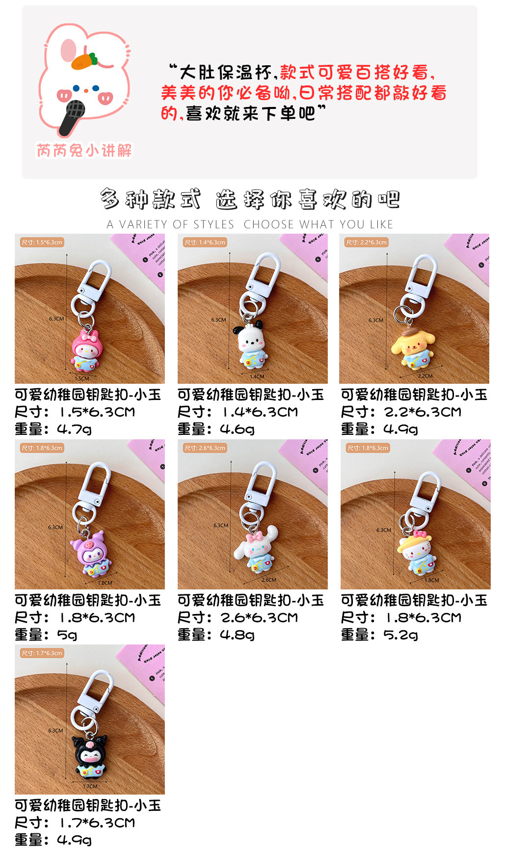 유치원 산리오 랍스터 버클 책가방 장식 소녀 만화 열쇠고리 친구 선물 액세서리 자동차 열쇠