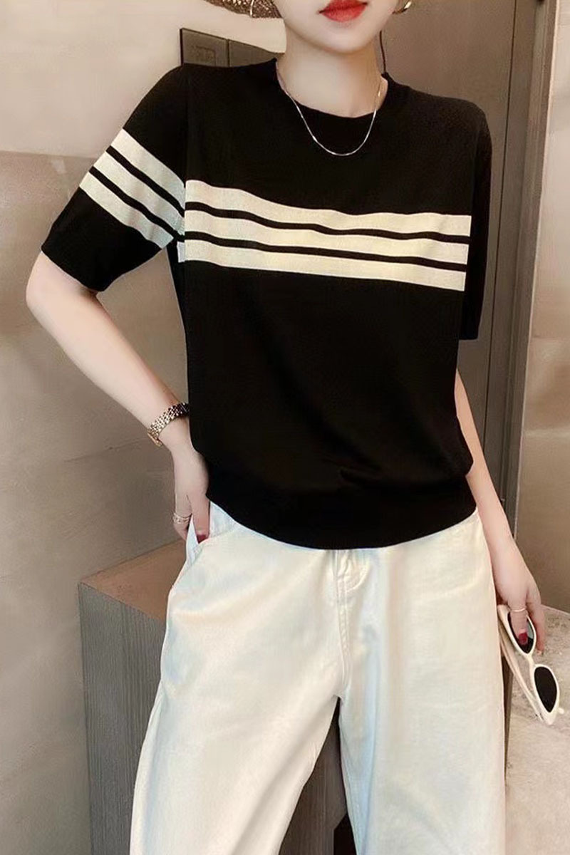 여름 새 여성 의류 Quzhu 아이스 대마 실크 짧은 소매 여성용 스웨터 티셔츠 여성용 둥근 목 얇은 한국판 대외 무역 도매스토어 가기