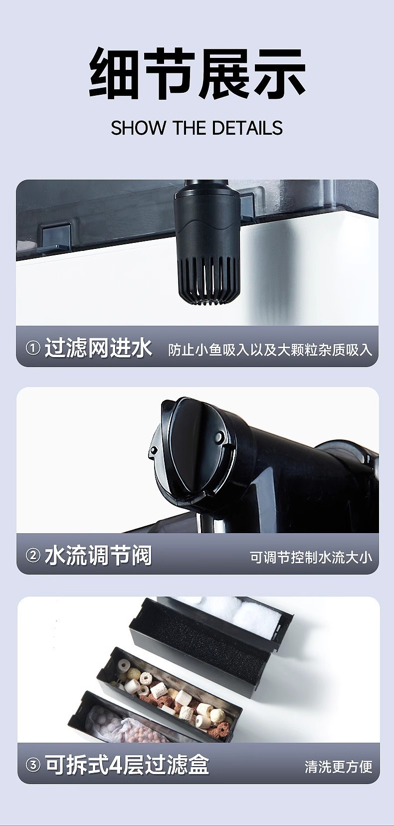 아마존 예 어항 필터 고출력 정수 사이클 무음 펌프 외부 벽에 장착 된 폭포 산소 발생기