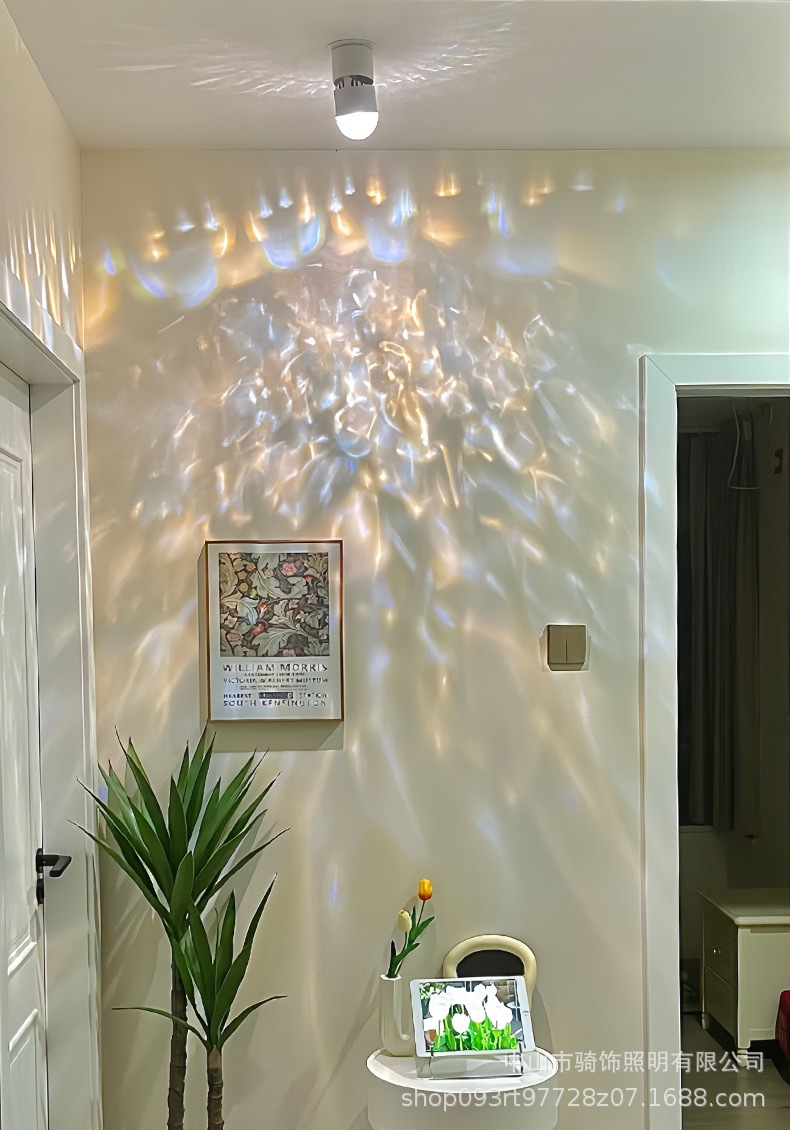 홈 장식 동적 워터 리플 스포트라이트 침실 거실 입구 뷰티 네일 살롱 스파클링 폐기물 분위기 감지 램프