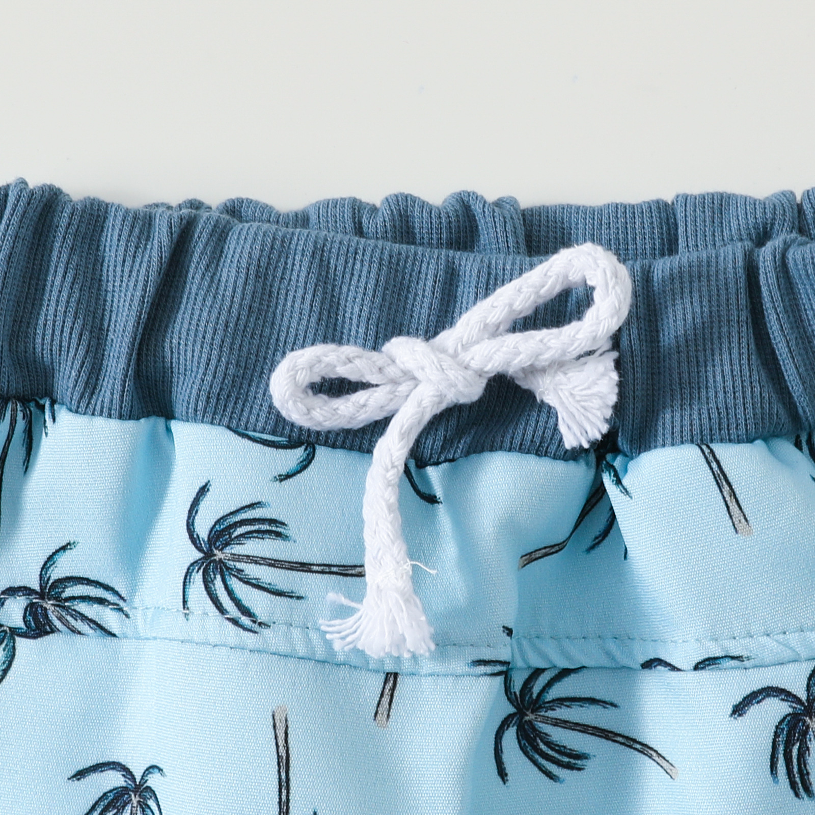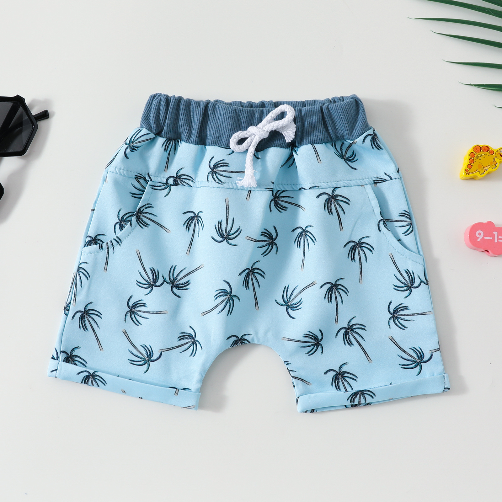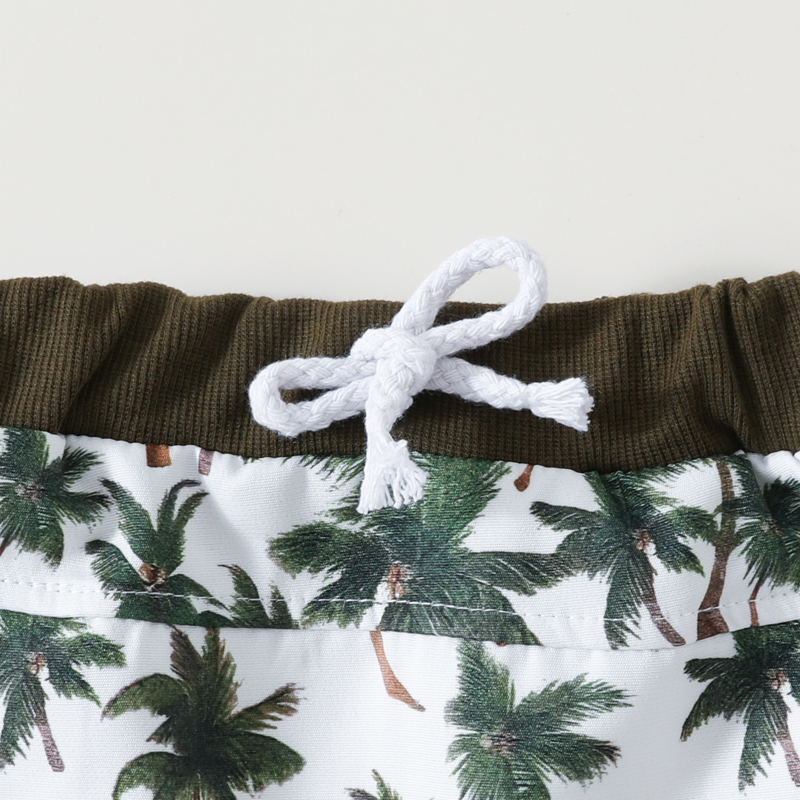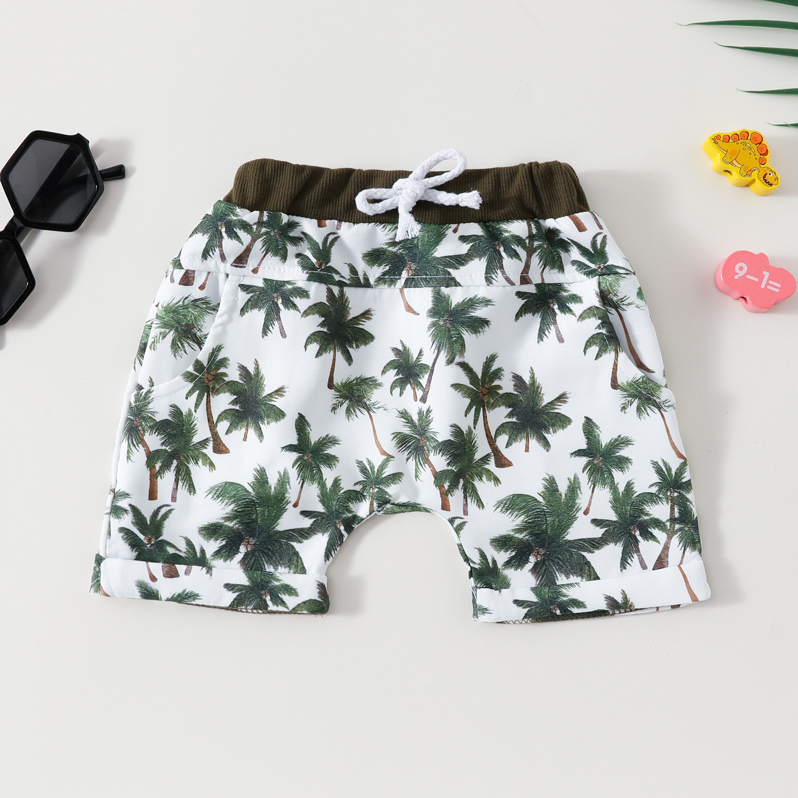0-24m 아기 의류 소년 여름 세트 아기 민소매 조끼 코코넛 나무 인쇄 반바지 2 개 세트