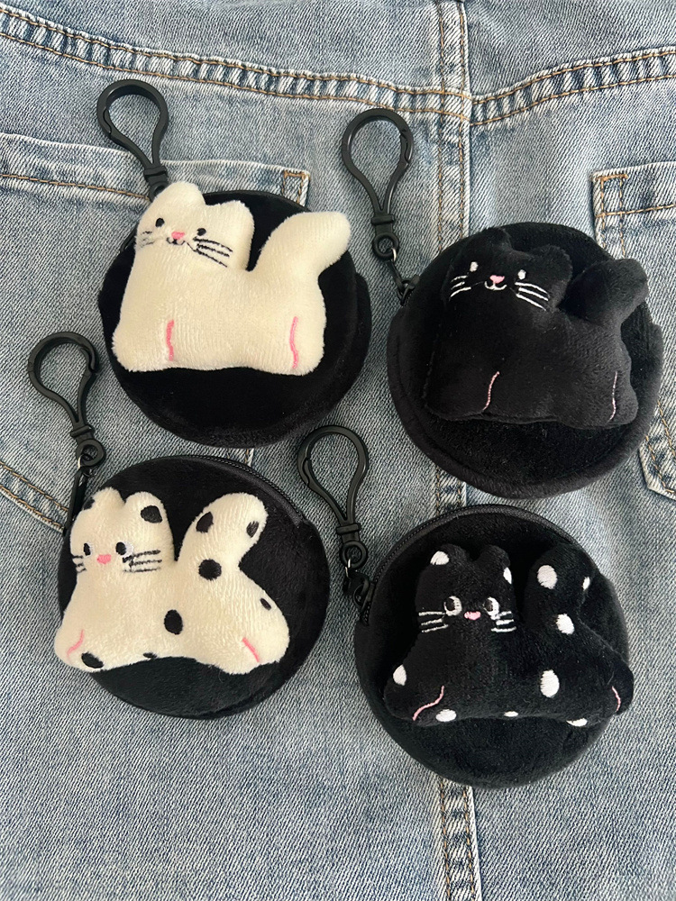귀여운 새끼 고양이 플러시 동전 지갑 귀여운 만화 소녀 심장 휴대용 라운드 헤드폰 가방 휴대 도매스토어 가기