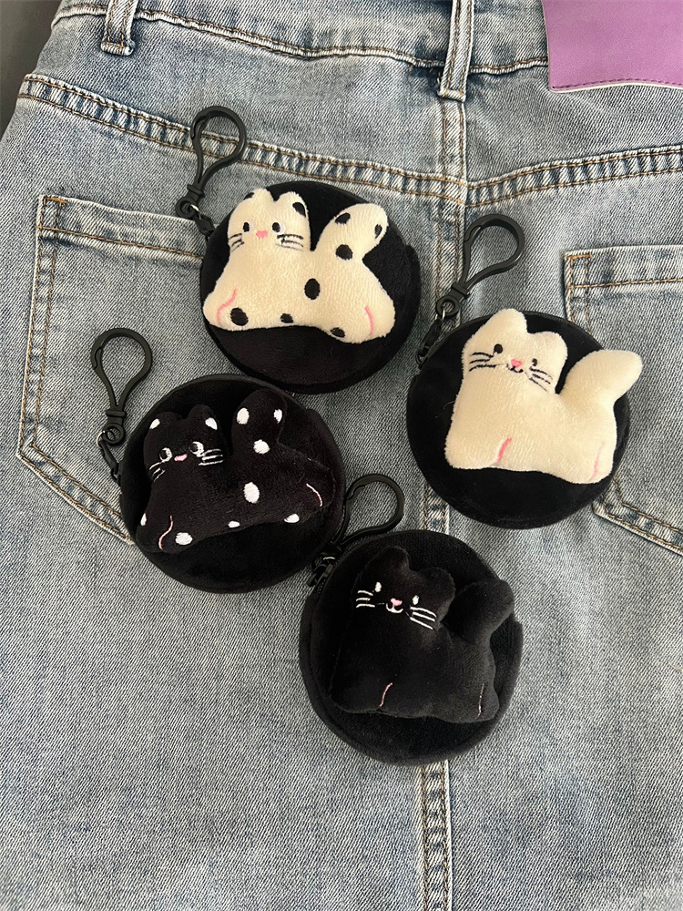 귀여운 새끼 고양이 플러시 동전 지갑 귀여운 만화 소녀 심장 휴대용 라운드 헤드폰 가방 휴대 도매