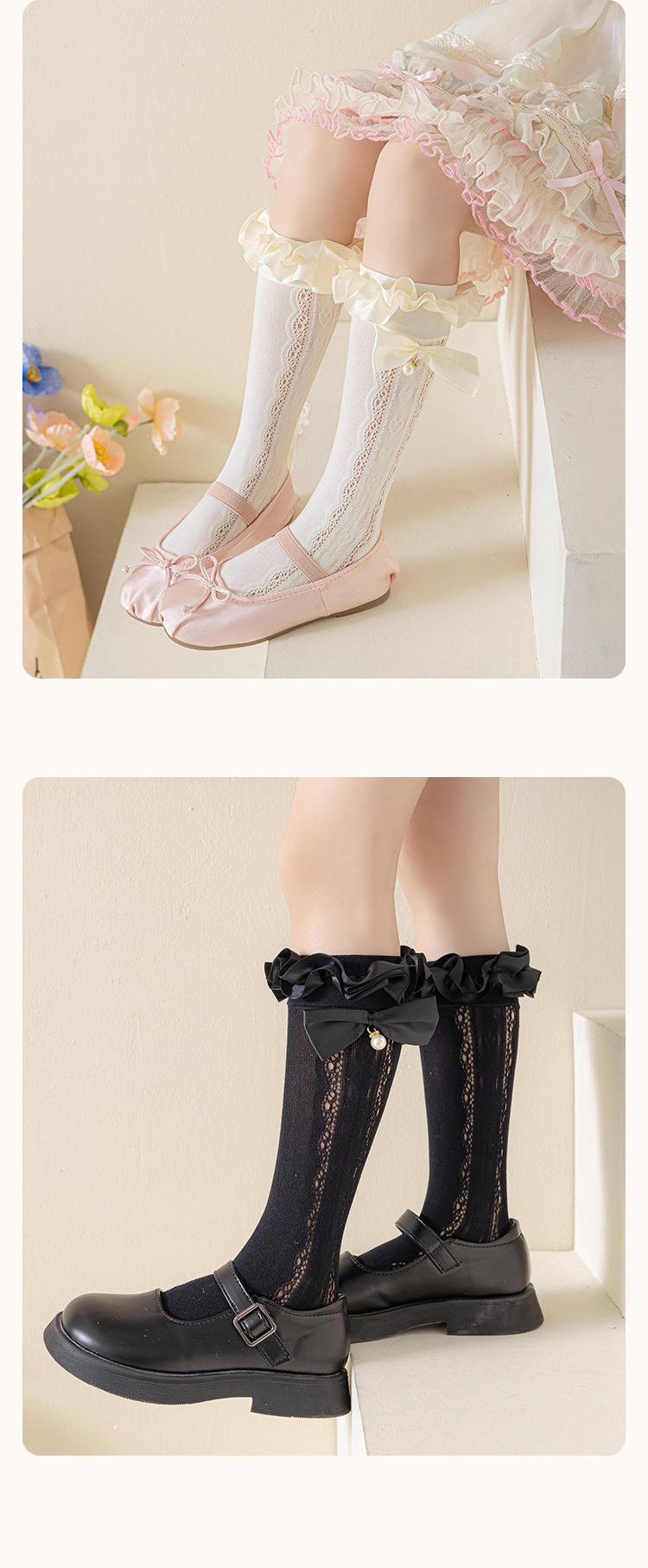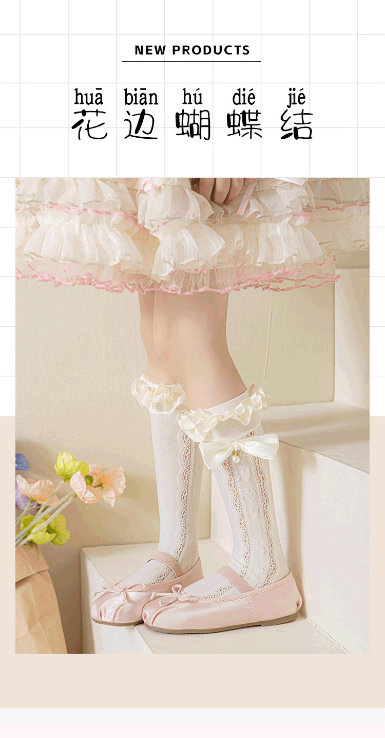 어린이 레이스 더미 양말 봄과 여름 얇은 로리타 중간 배럴 활 빈 사랑 공주 소녀 스타킹