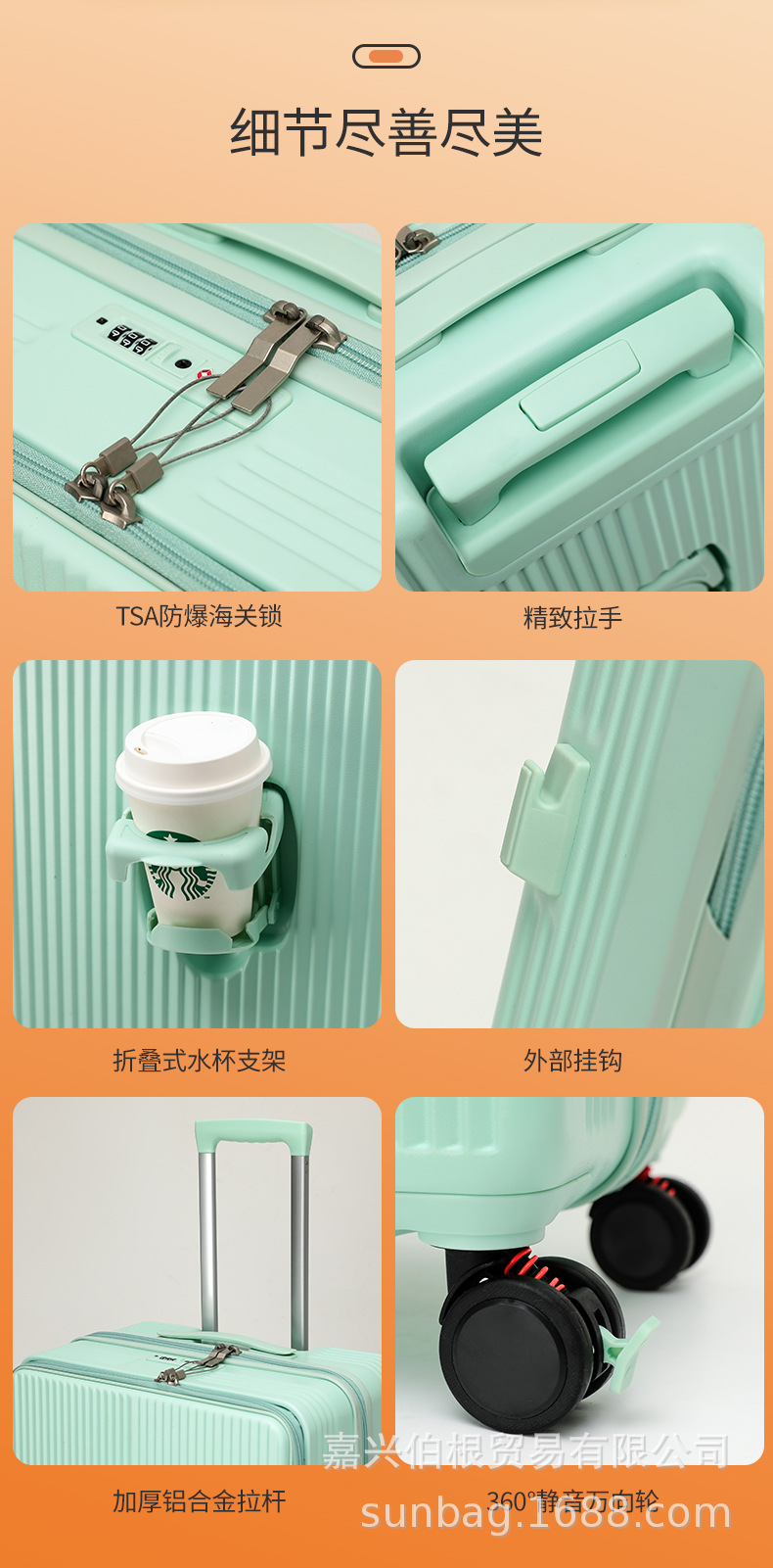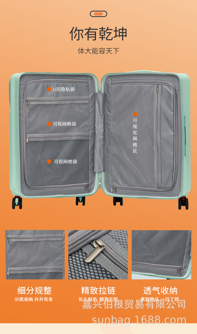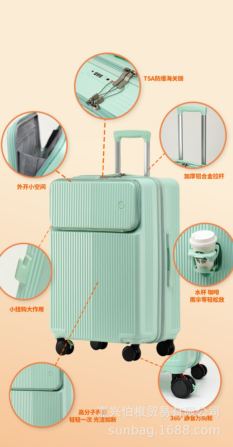 프런트 오프닝 가방 여자 짐 컵 홀더 남자 20 인치 탑승 케이스 암호 상자 24 인치 트롤리 케이스 26 인치스토어 가기