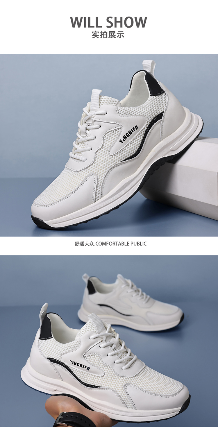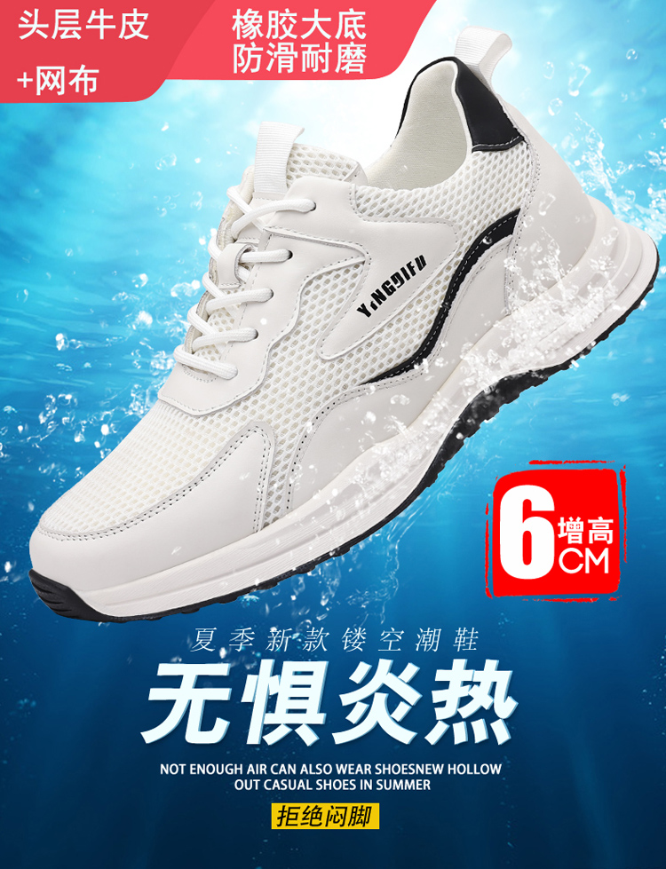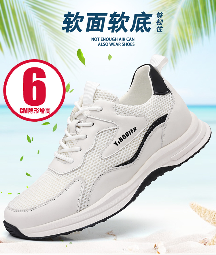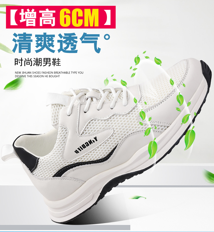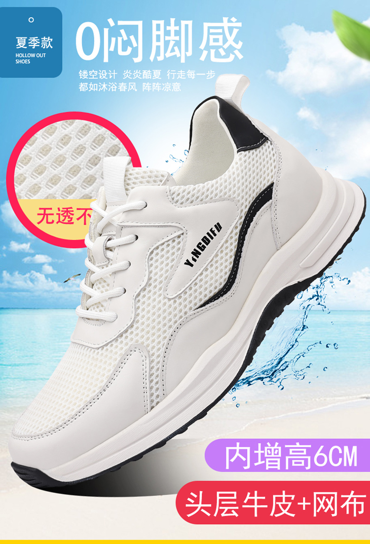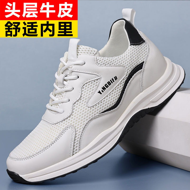 소 가죽의 첫 번째 레이어 6cm 증가 작은 흰색 신발 남성 여름 메쉬 운동화 8cm 보이지 않는 증가 된 흰색 캐주얼 신발스토어 가기