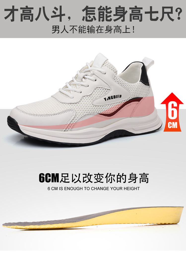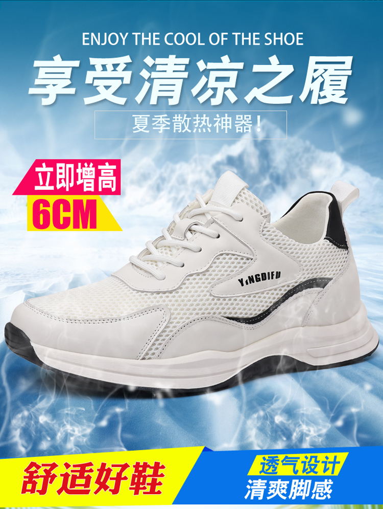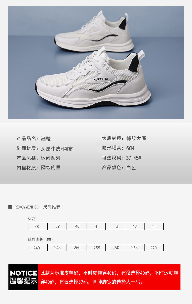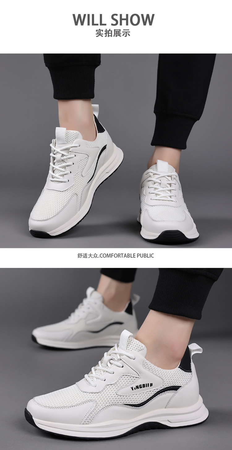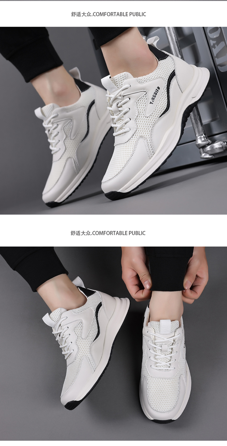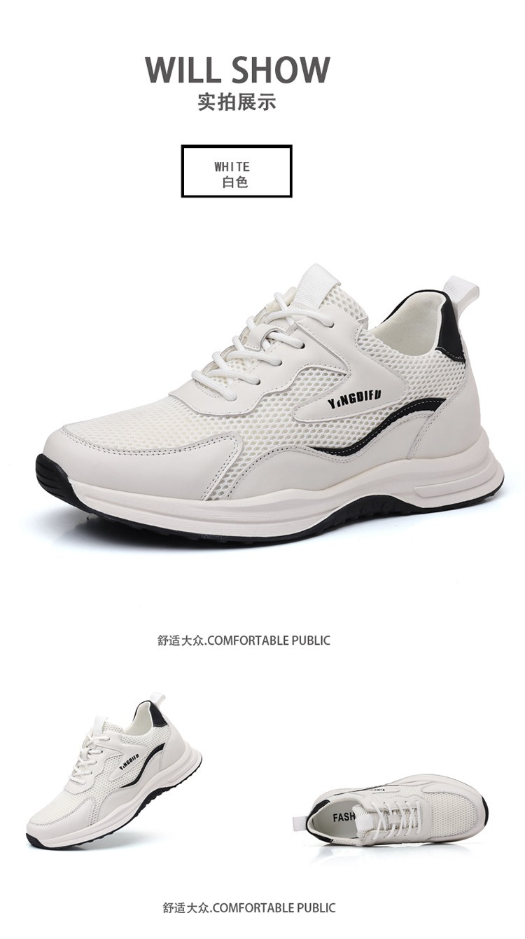 소 가죽의 첫 번째 레이어 6cm 증가 작은 흰색 신발 남성 여름 메쉬 운동화 8cm 보이지 않는 증가 된 흰색 캐주얼 신발스토어 가기