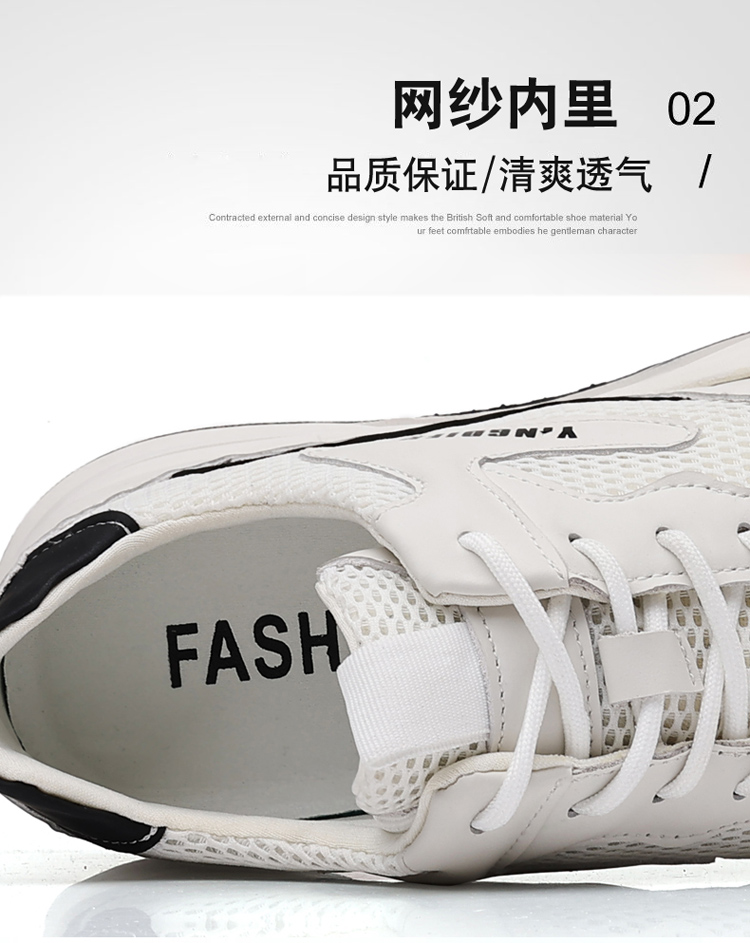 소 가죽의 첫 번째 레이어 6cm 증가 작은 흰색 신발 남성 여름 메쉬 운동화 8cm 보이지 않는 증가 된 흰색 캐주얼 신발