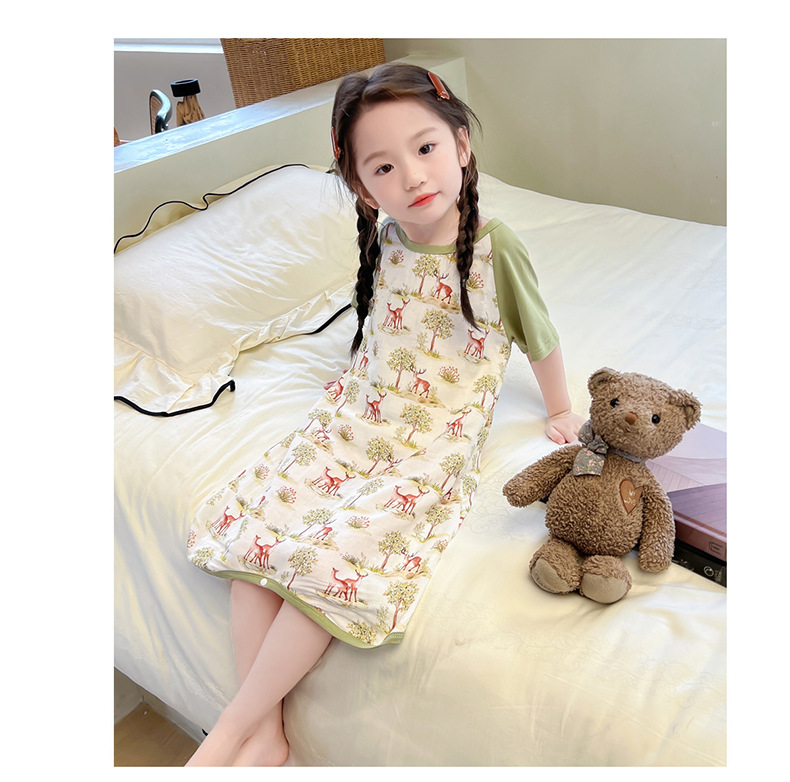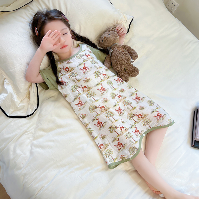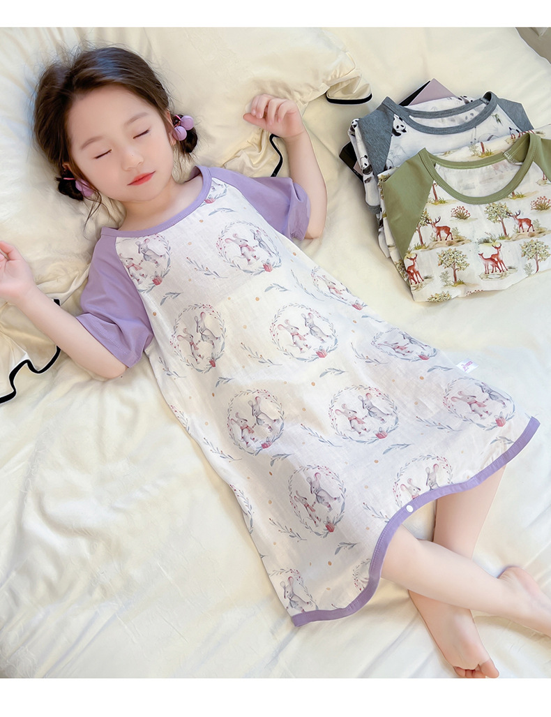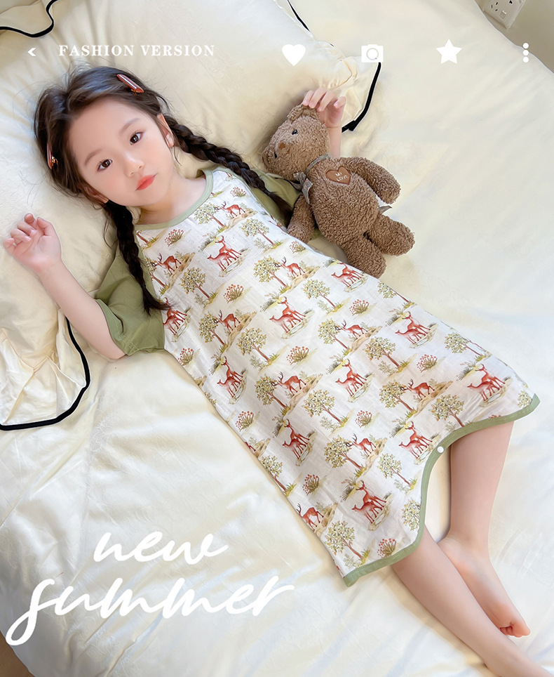 아기 소년 소녀 여름면 잠옷 어린이 여름 에어컨 방 킥 방지 아티팩트 거즈 얇은 잠옷 가방스토어 가기