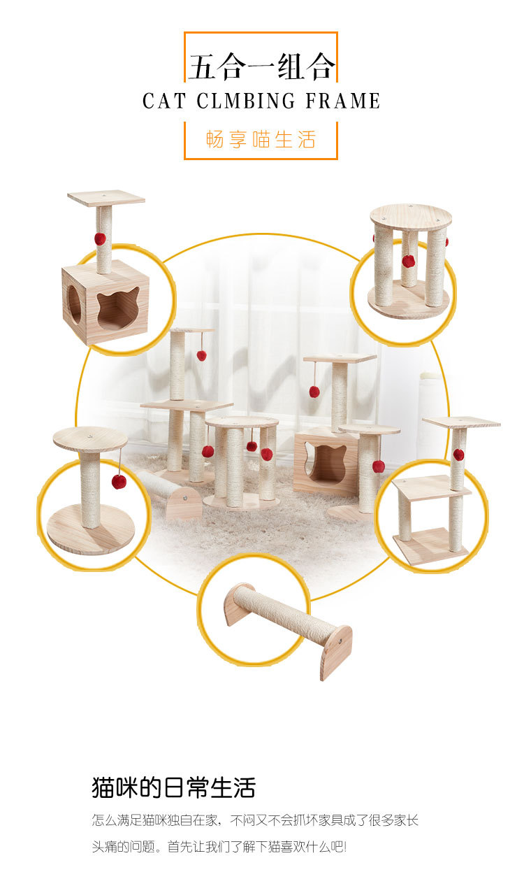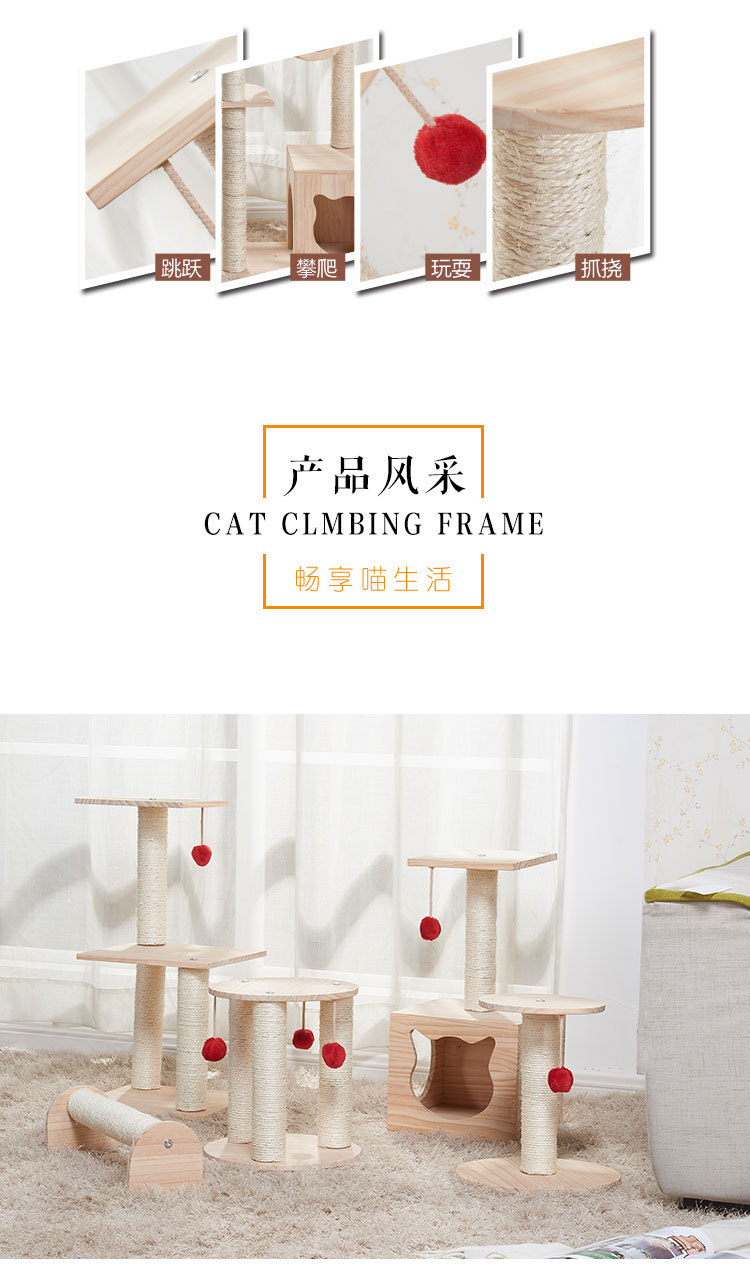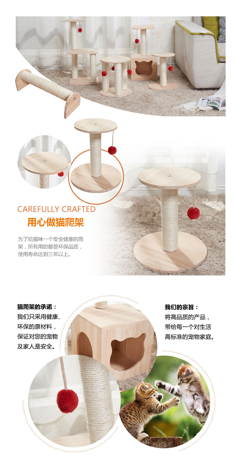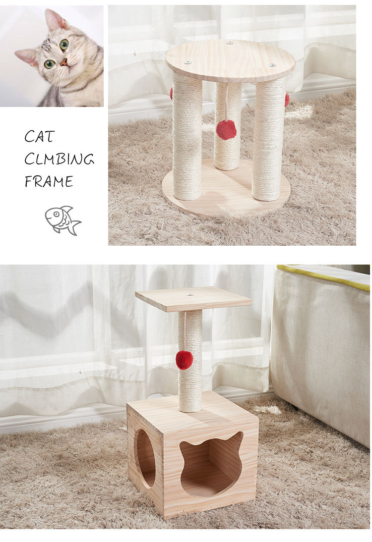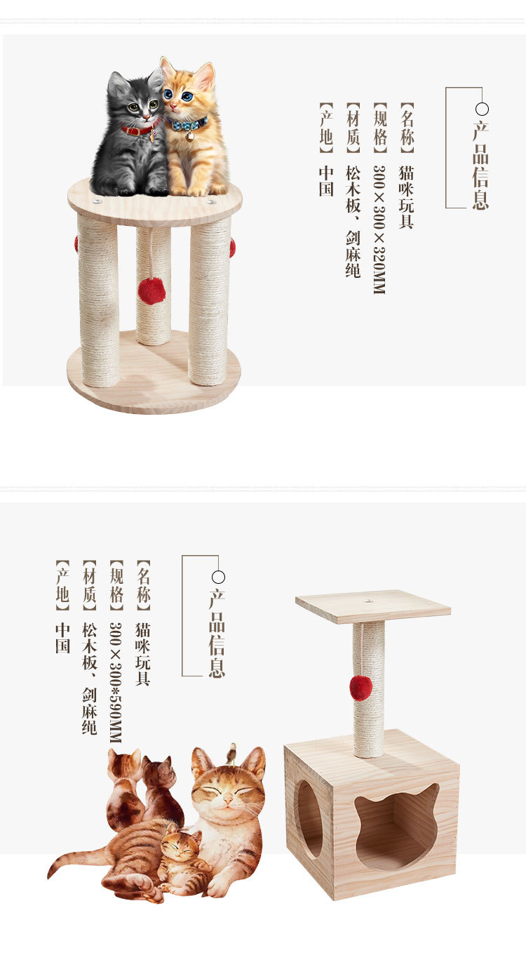 원목 미니 고양이 둥지, 일체형 캣타워, 캣스크래치보드, 소형 고양이 점프플랫폼, 고양이 장난감, 삼나무 고양이 빌라, 고양이 클라이밍 프레임스토어 가기