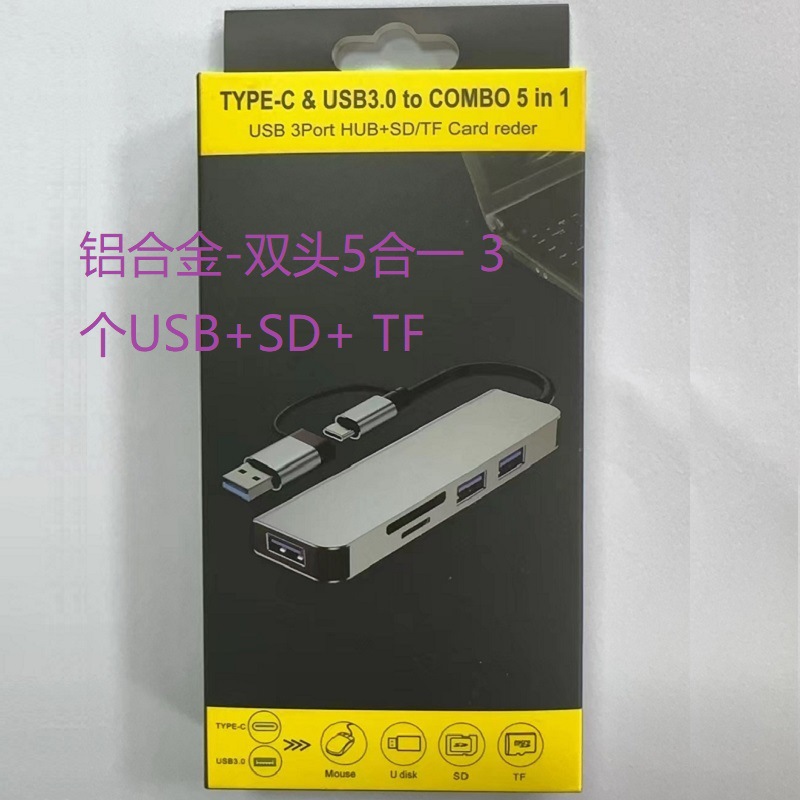 유형 c/usb 5 대 1 확장 도크 허브 스플리터 다기능 카드 리더 TF/SD 알루미늄