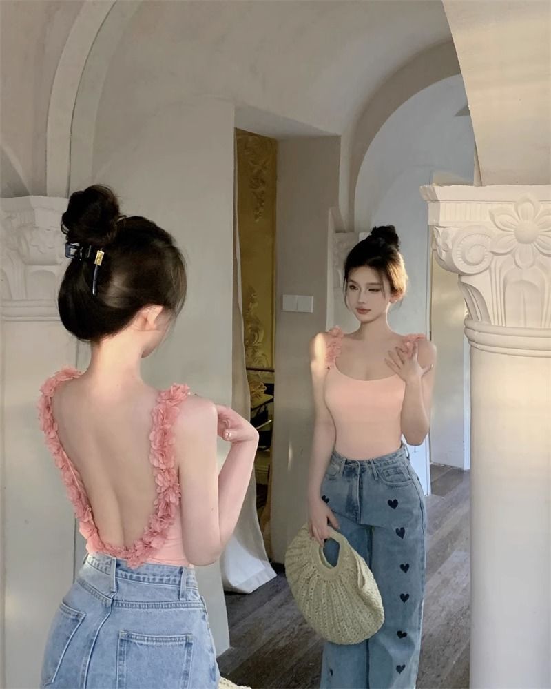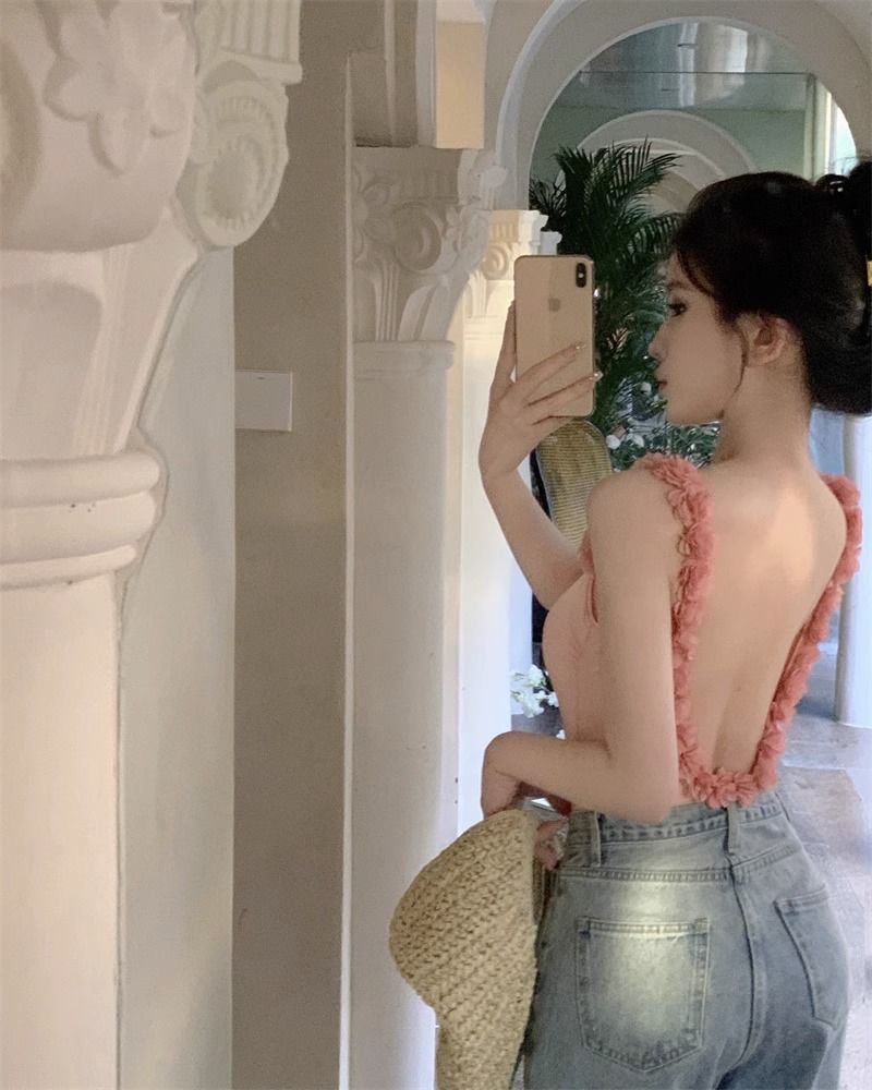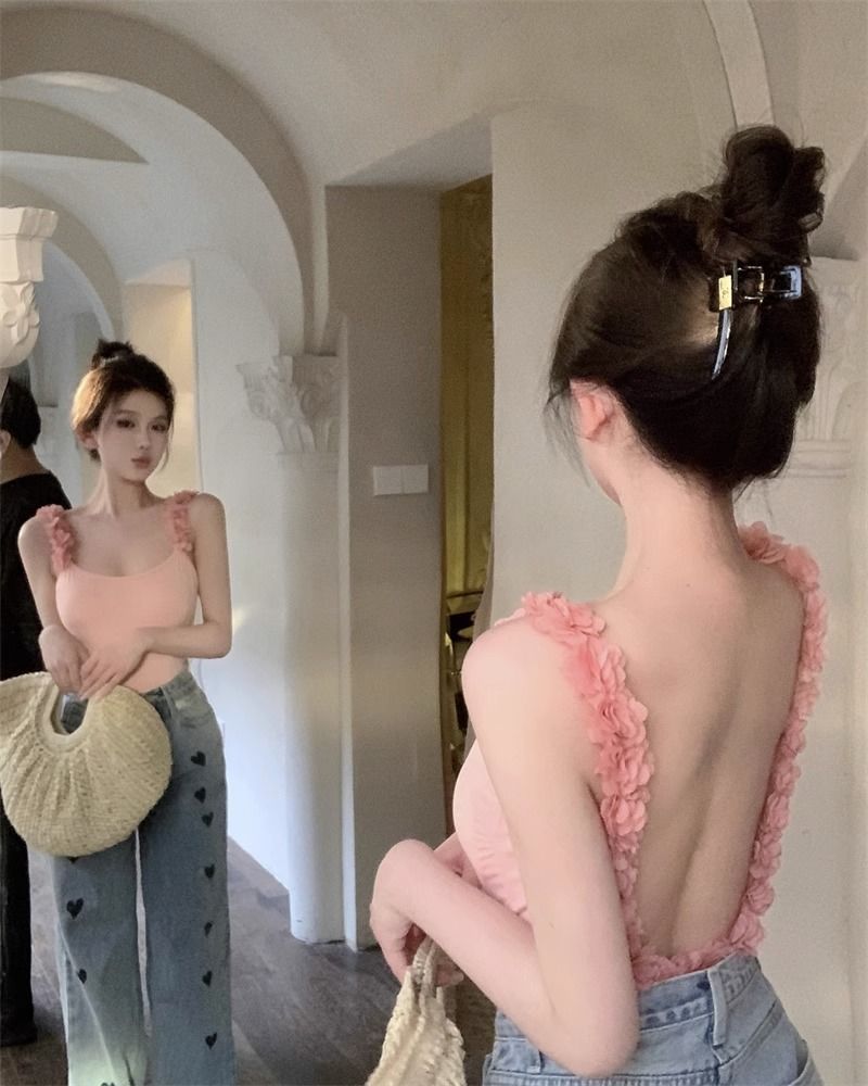 가슴 패드 입체 꽃 슬링 수영복 여성용 슬림 핏 달콤하고 매운 원피스 수영복 여성의 순수한 욕망 바람 온천 슈퍼 요정