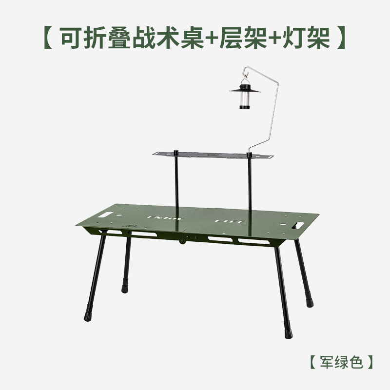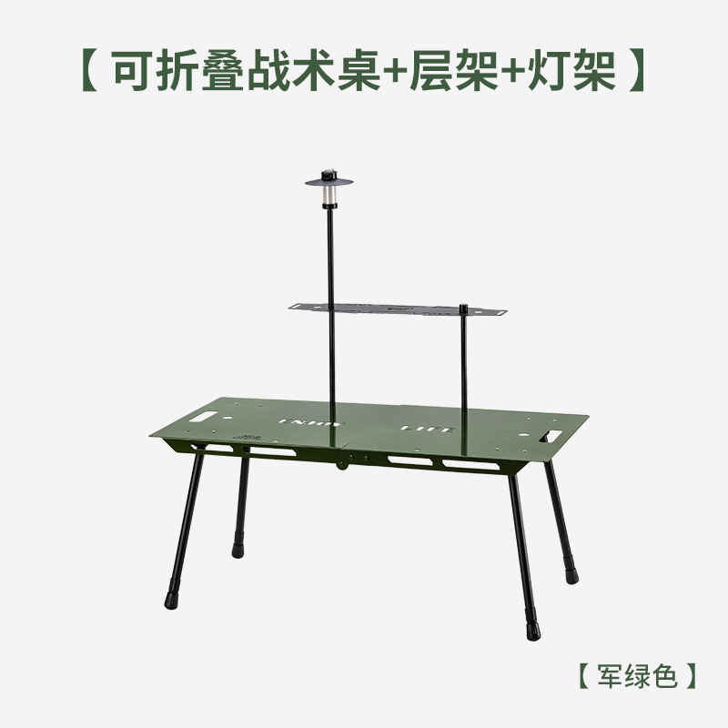 • 접이식 평판 테이블 밀리터리 그린 + 라미네이트 + 휴대용 램프