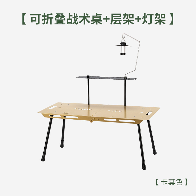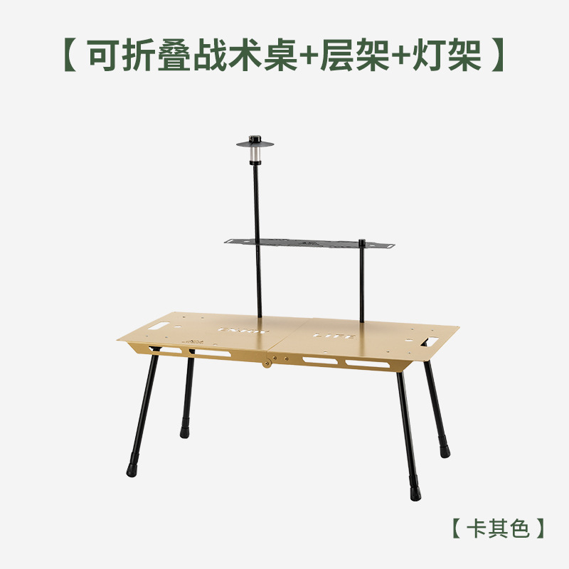 • 접이식 플랫 테이블 카키 + 라미네이트 + 휴대용 램프
