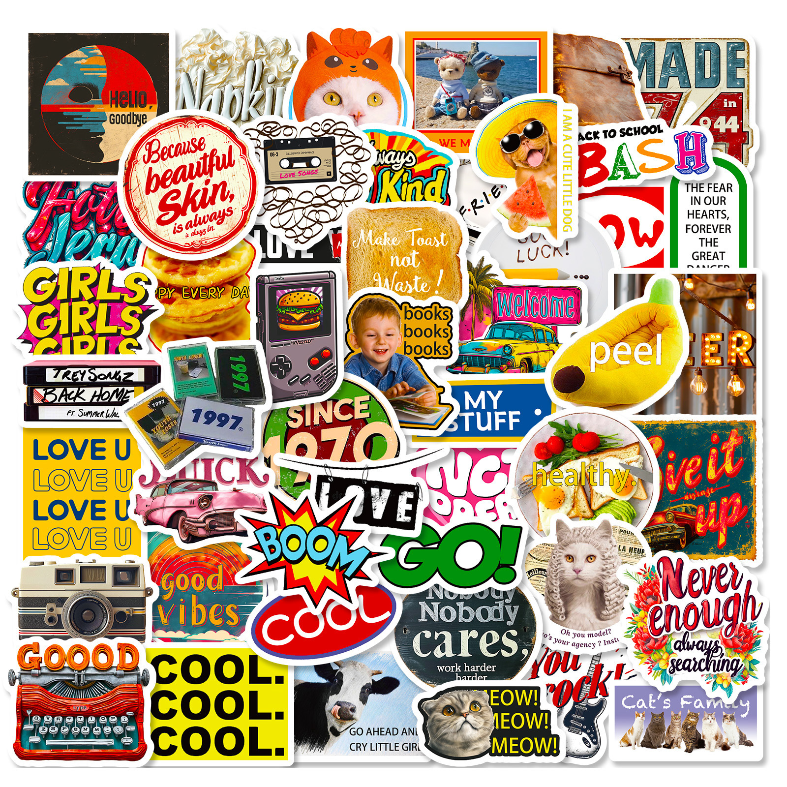 [특가] 50개 레트로 그래피티 카메라 음식 영어 텍스트 스티커 해외 인기 DIY 스티커스토어 가기