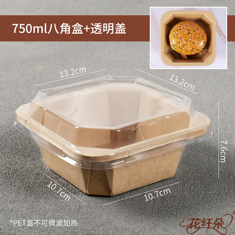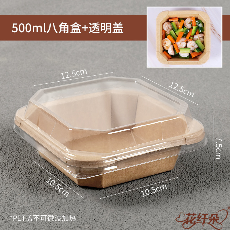 • 투명한 덮개가있는 650ml 팔각형 상자
