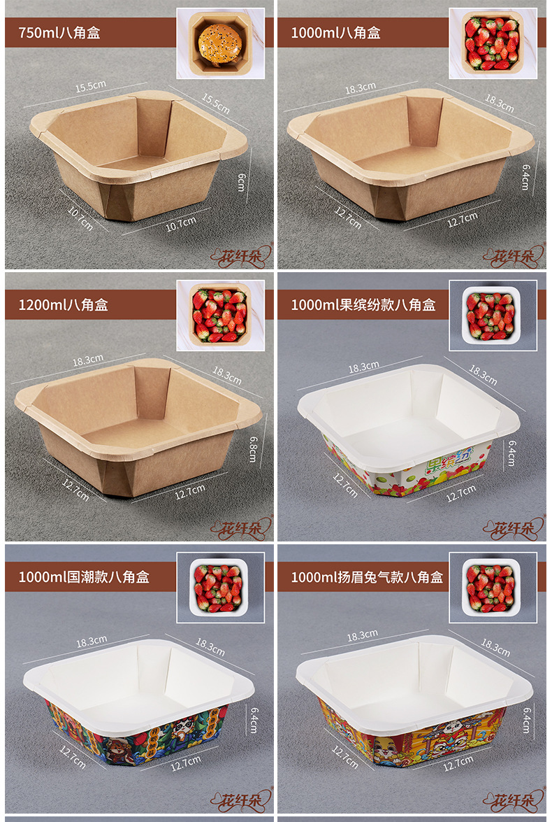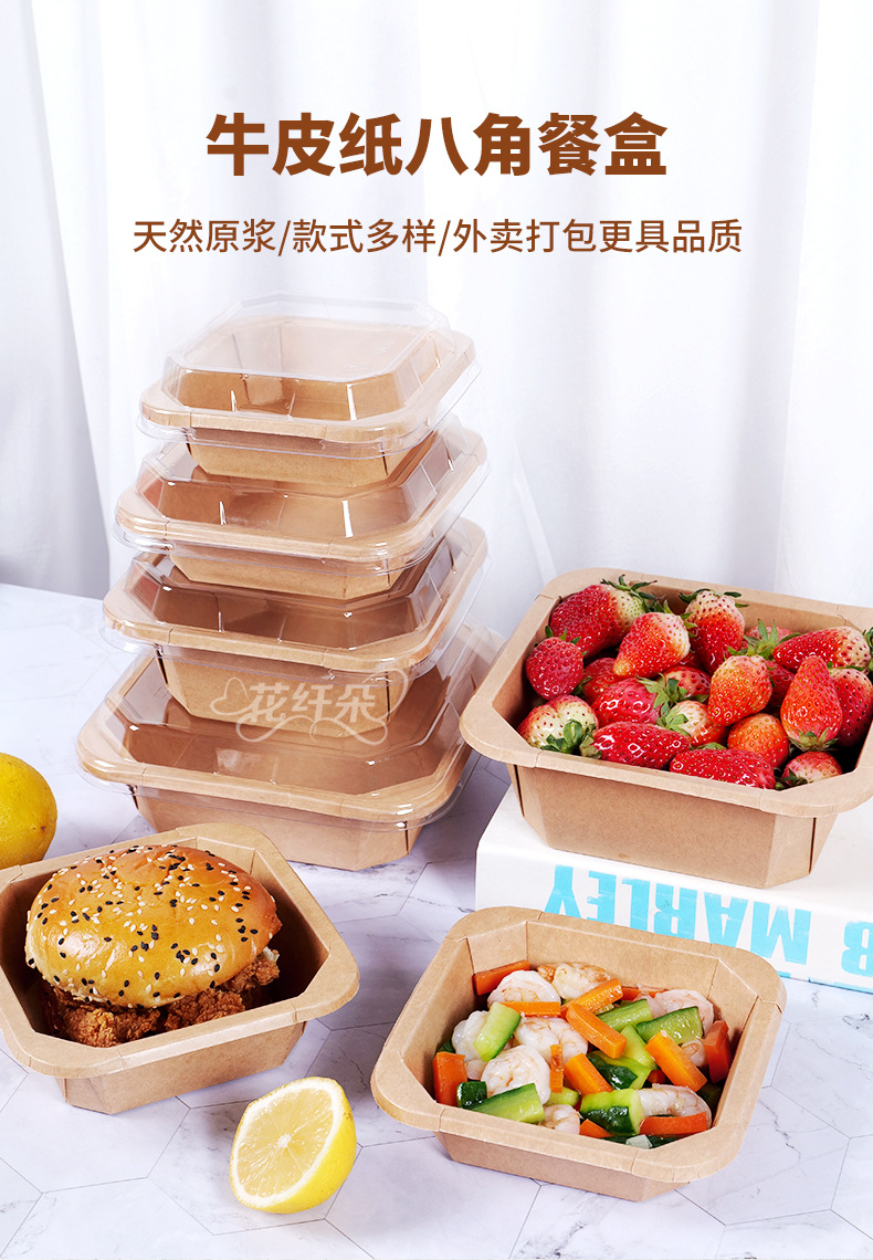 일회용 크래프트 종이 도시락 과일 포장 상자 과일 포장 상자 상업 도매 고급 팔각형 과일 절단 상자 식품 포장 상자