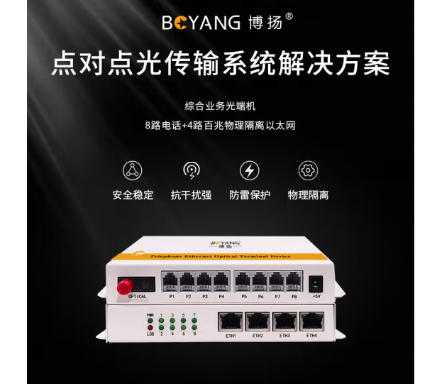 博扬(BOYANG)电话光端机8路电话+4路百兆网络 8路对讲语音+4路物理隔离以太网光纤传输 FC口 BY-8P4EV