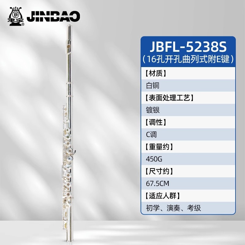 • Jinbao 플루트 5238S [E 버튼이 있는 16홀 개폐 겸용 곡열형]
