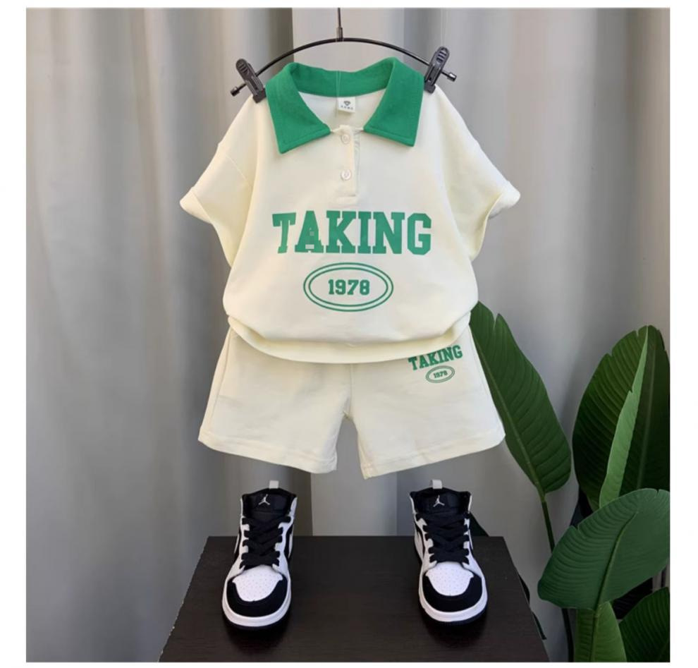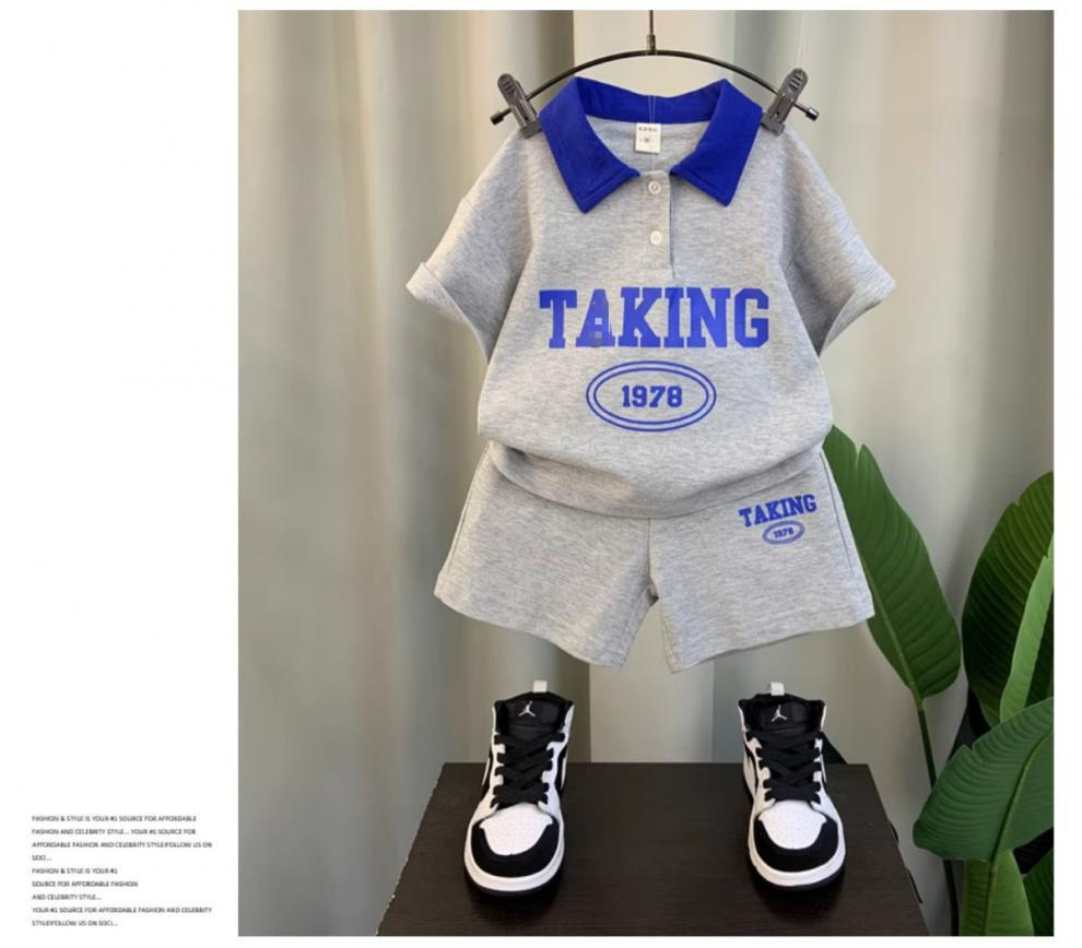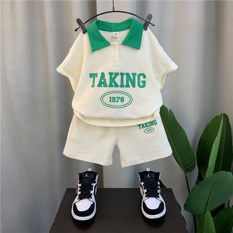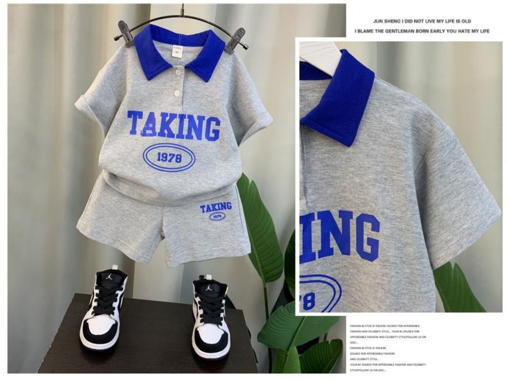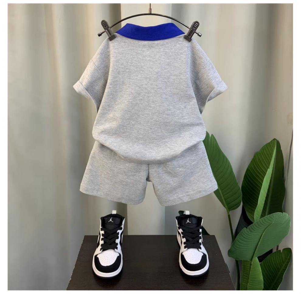 남자들의 여름 반팔 세트 2024 새로운 스타일 여름 인터넷 기념 옷 어린이 멋진 스포츠 투피스 세트