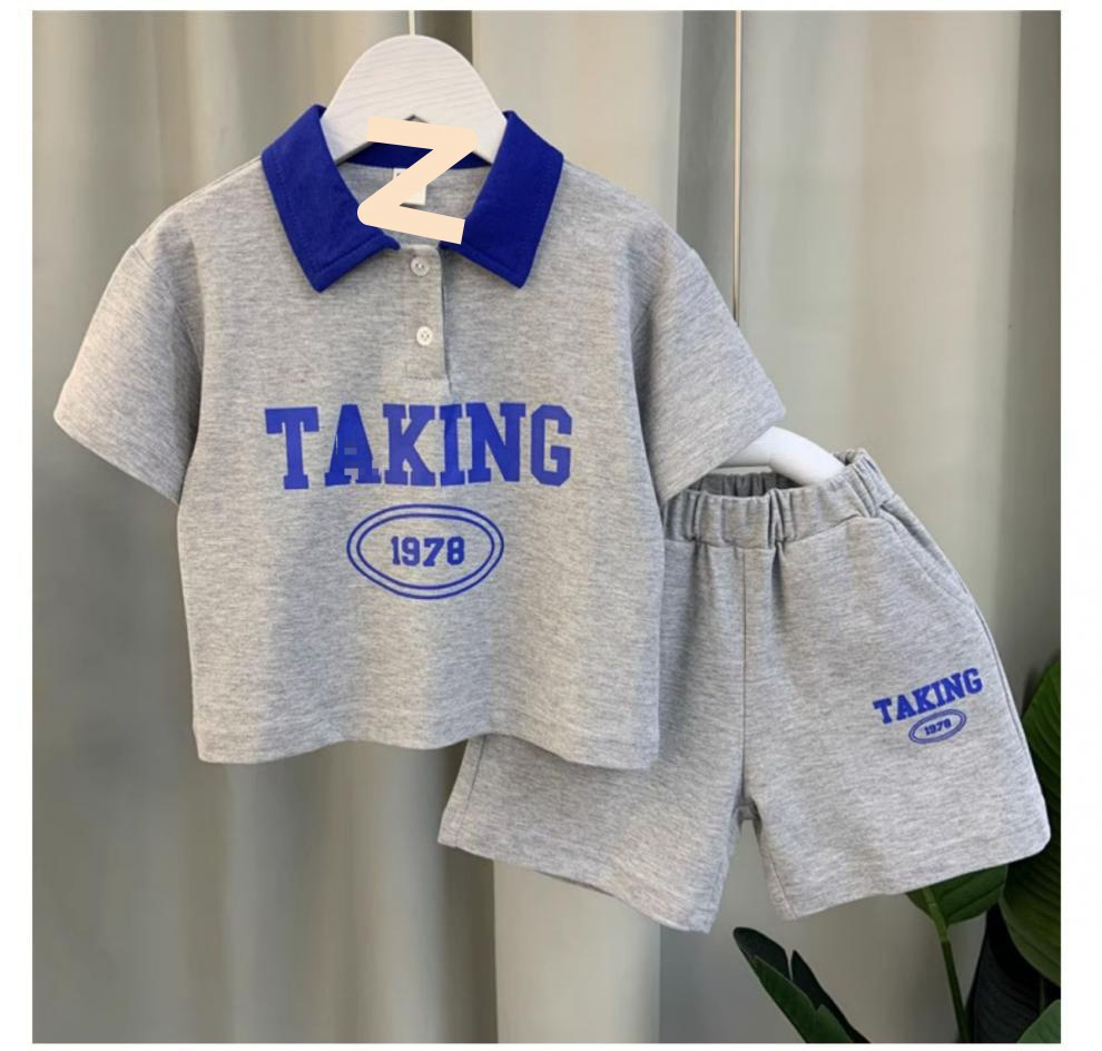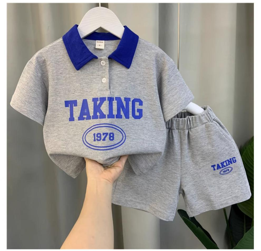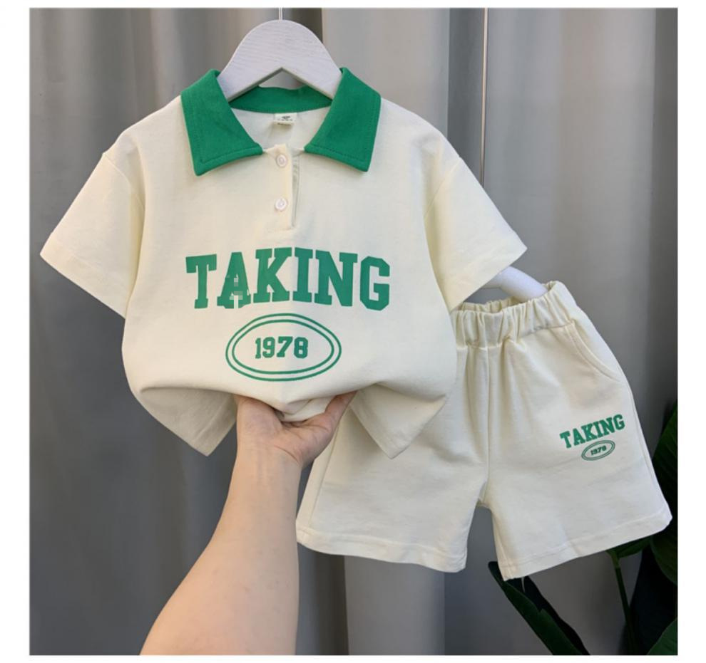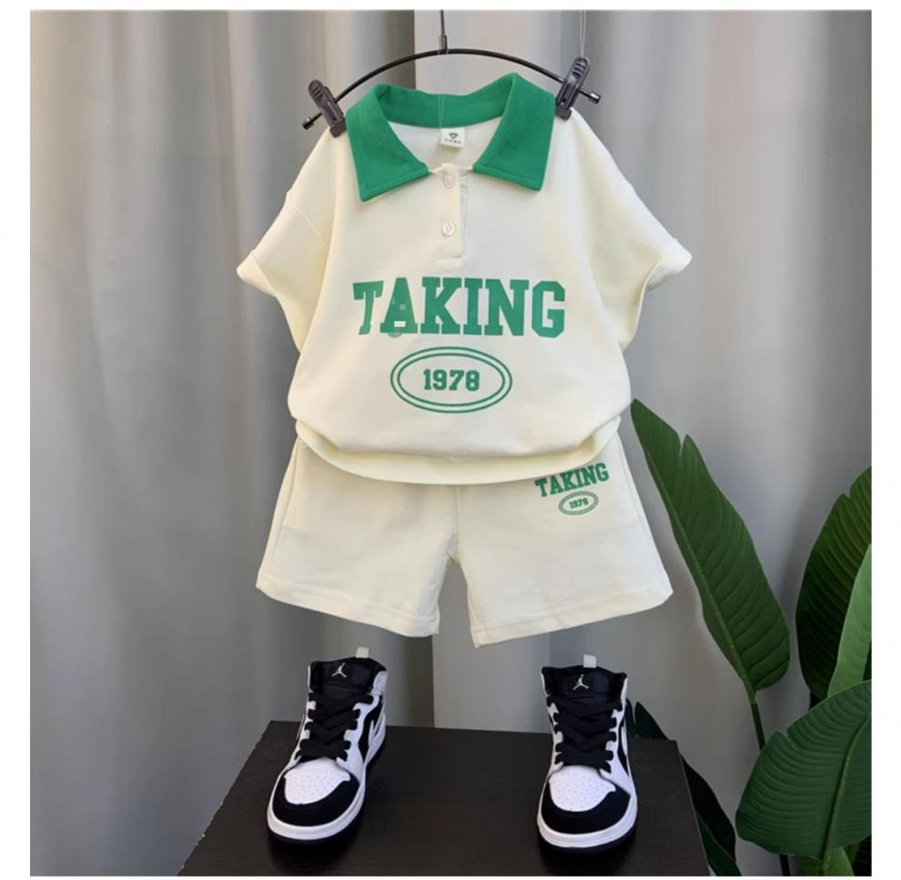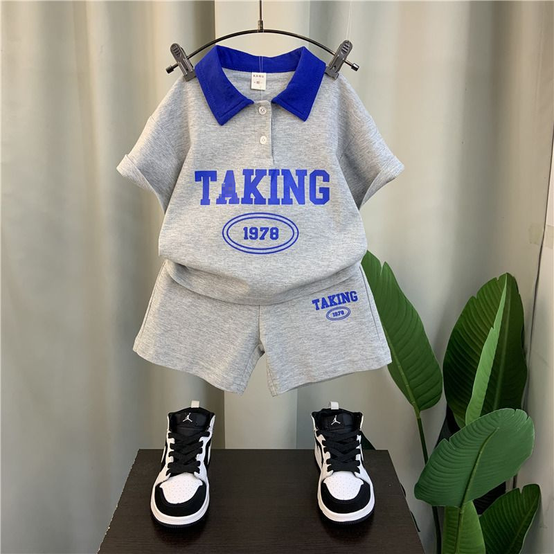 남자들의 여름 반팔 세트 2024 새로운 스타일 여름 인터넷 기념 옷 어린이 멋진 스포츠 투피스 세트