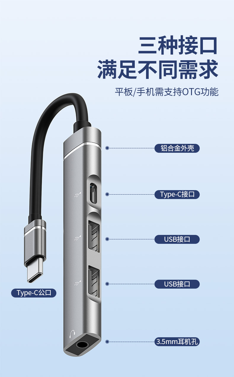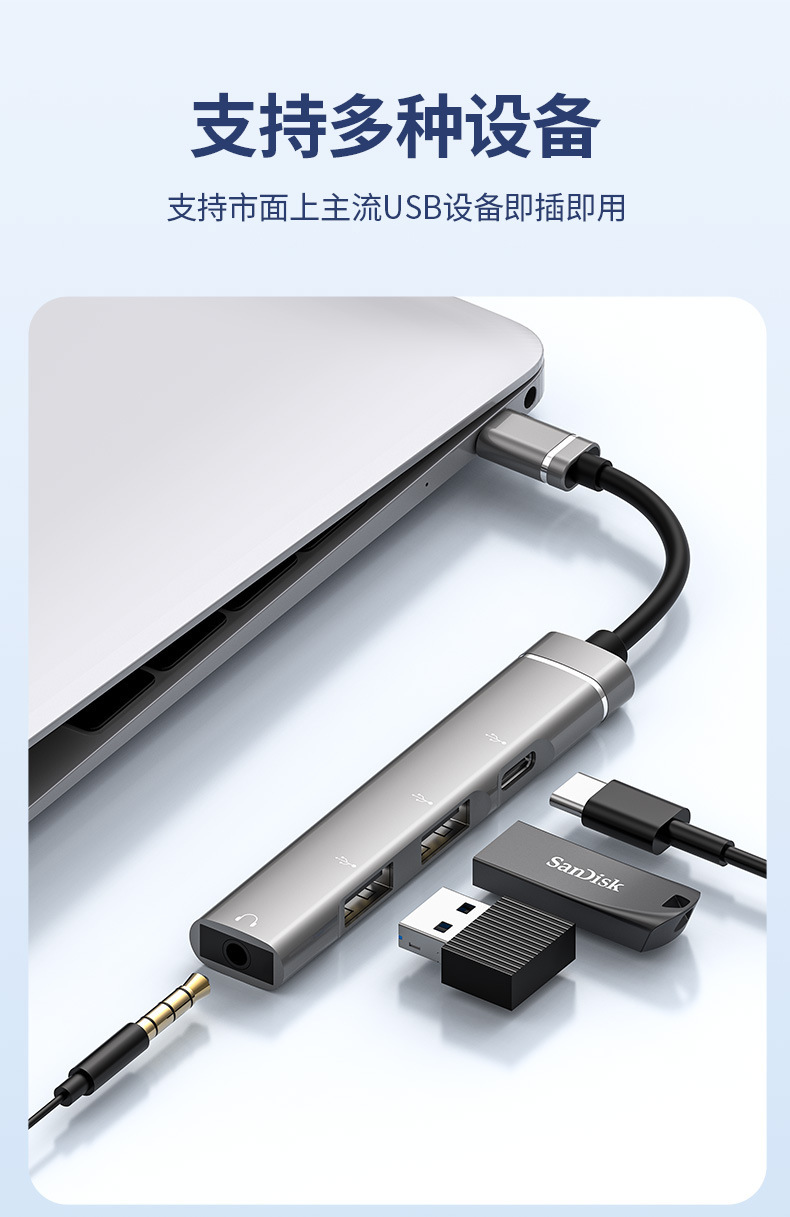 유형-c-3.5 헤드셋 도킹 스테이션 금속 USB HUB 디지털 어댑터 듀얼 USB 데이터 전송 변환스토어 가기