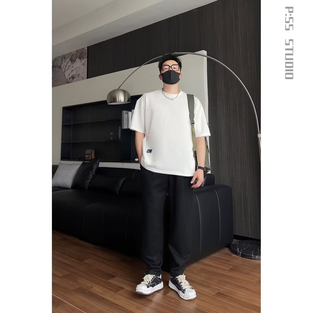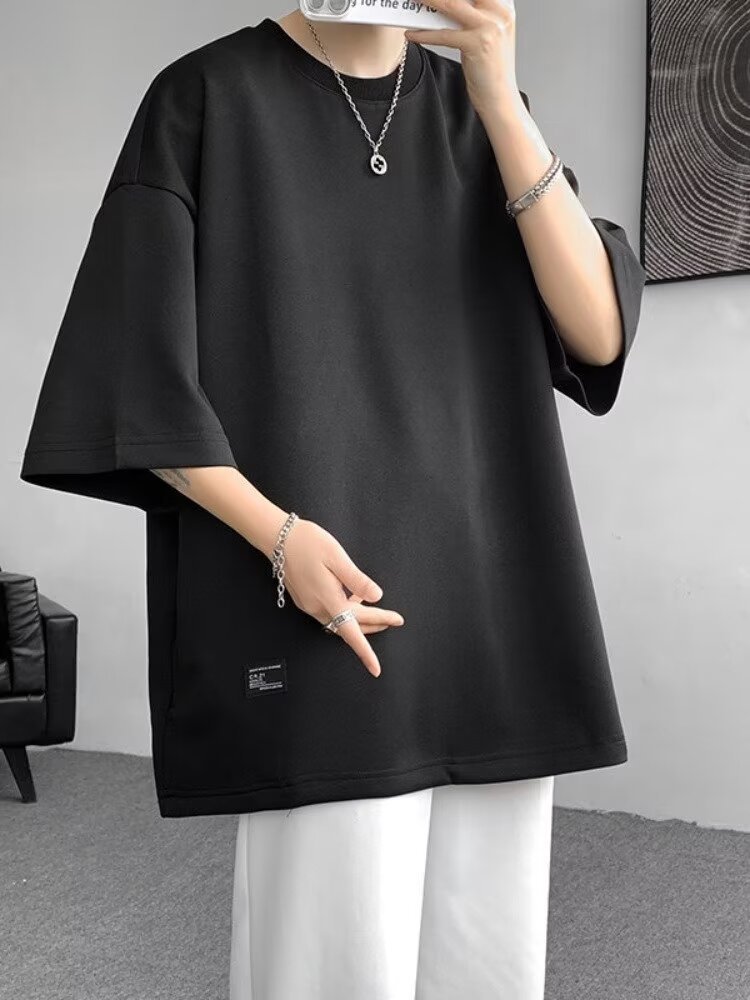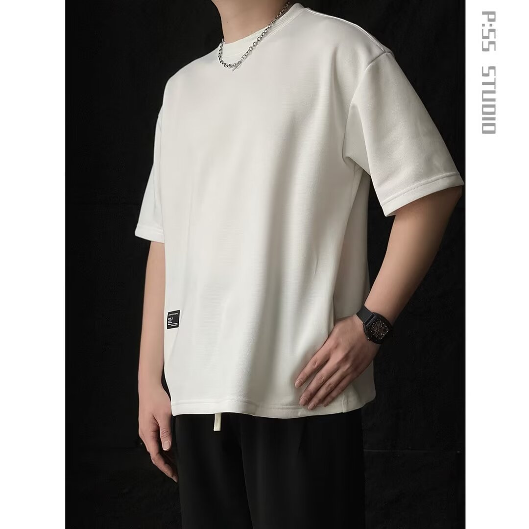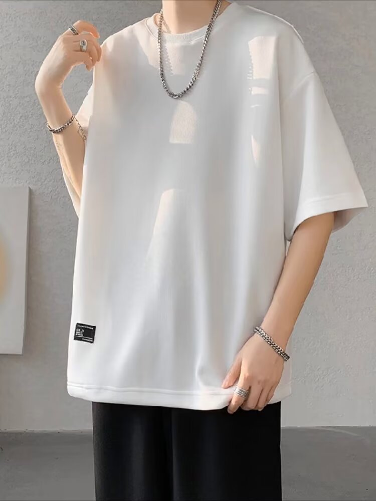 홍콩 스타일 패션 하이 퀄리티 티셔츠 남자 여름 잘 생긴 느슨한 올 매치 스포츠 캐주얼 반소매 라운드 넥 티셔츠스토어 가기