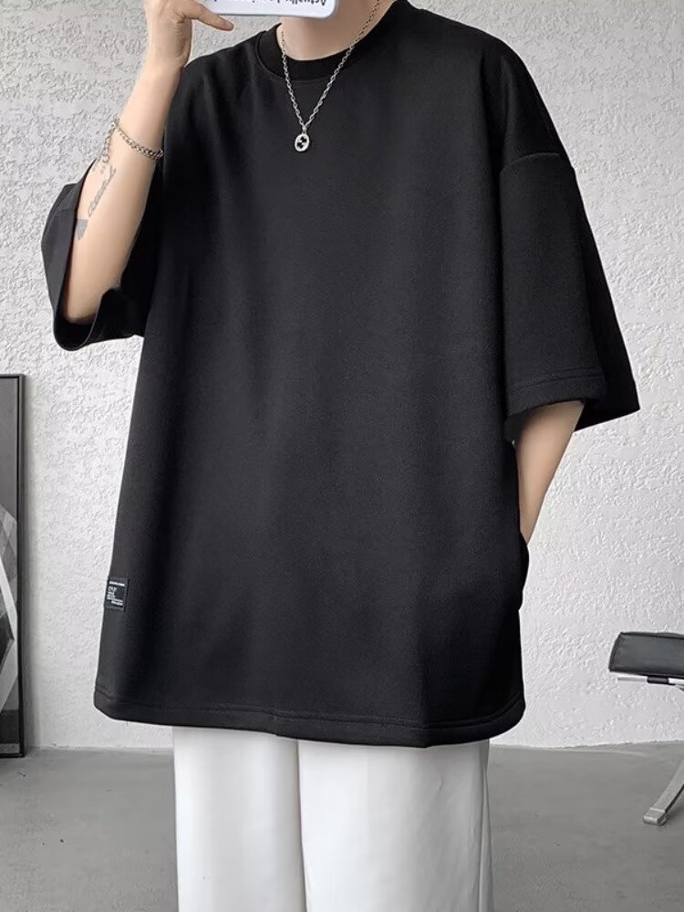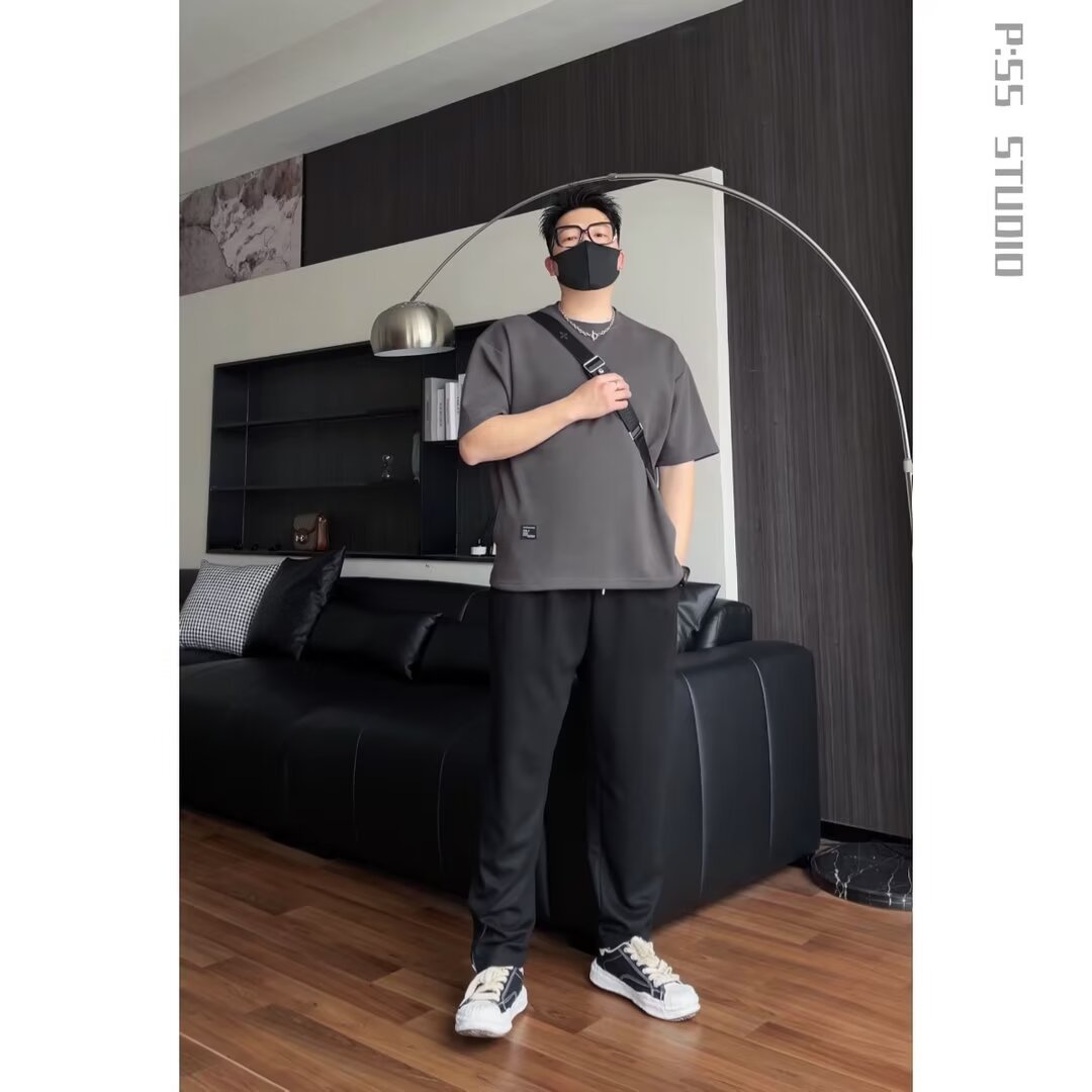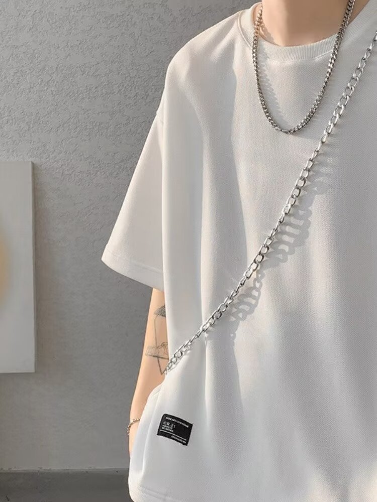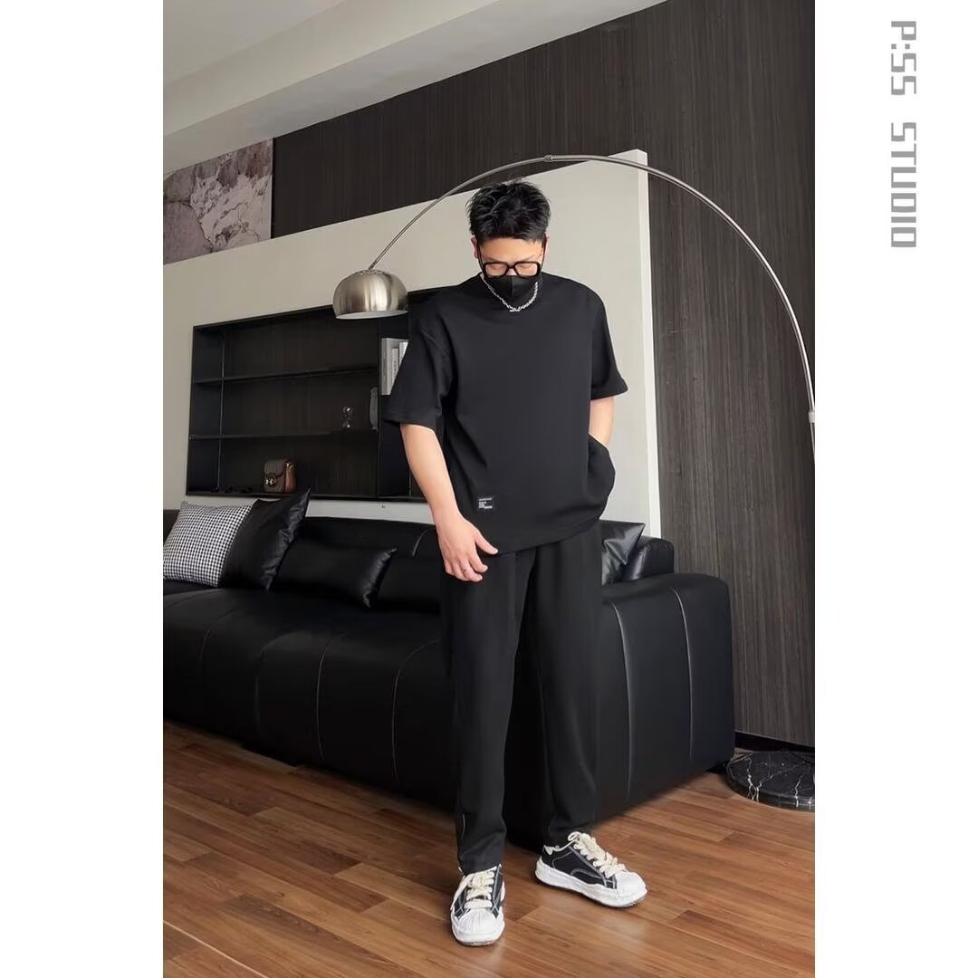 홍콩 스타일 패션 하이 퀄리티 티셔츠 남자 여름 잘 생긴 느슨한 올 매치 스포츠 캐주얼 반소매 라운드 넥 티셔츠스토어 가기