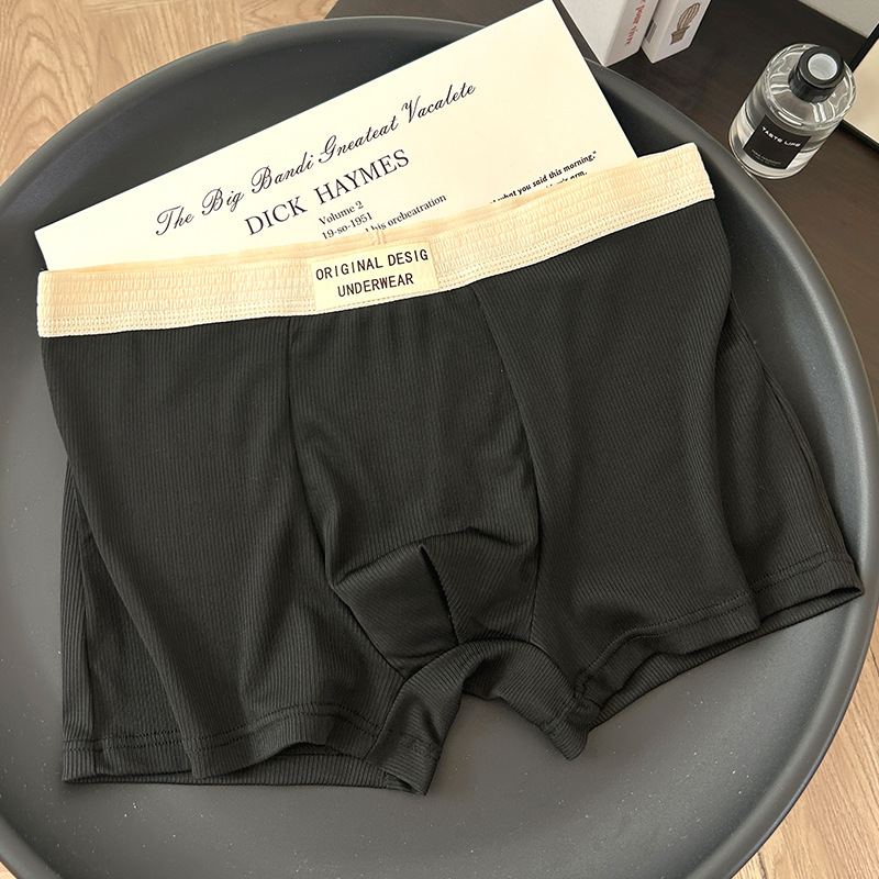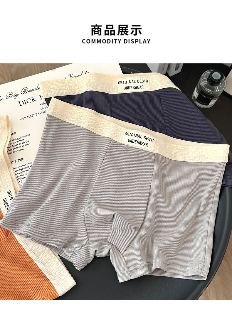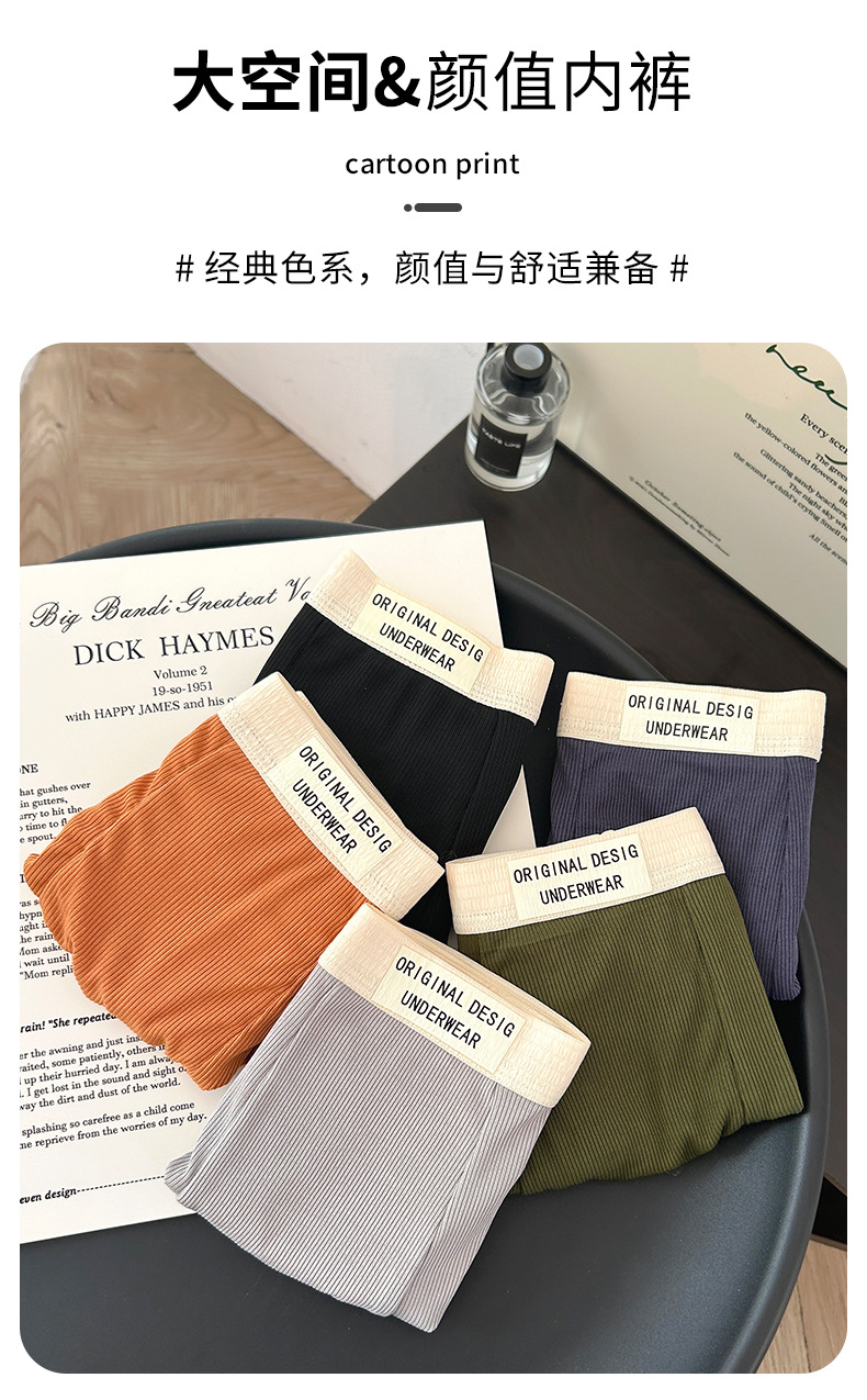 복서 팬티 남성용 코튼 크로치 플랫 피트 편지 느슨한 중간 허리 통기성 추적없는 주니어 학생 4 코너 짧은 바지