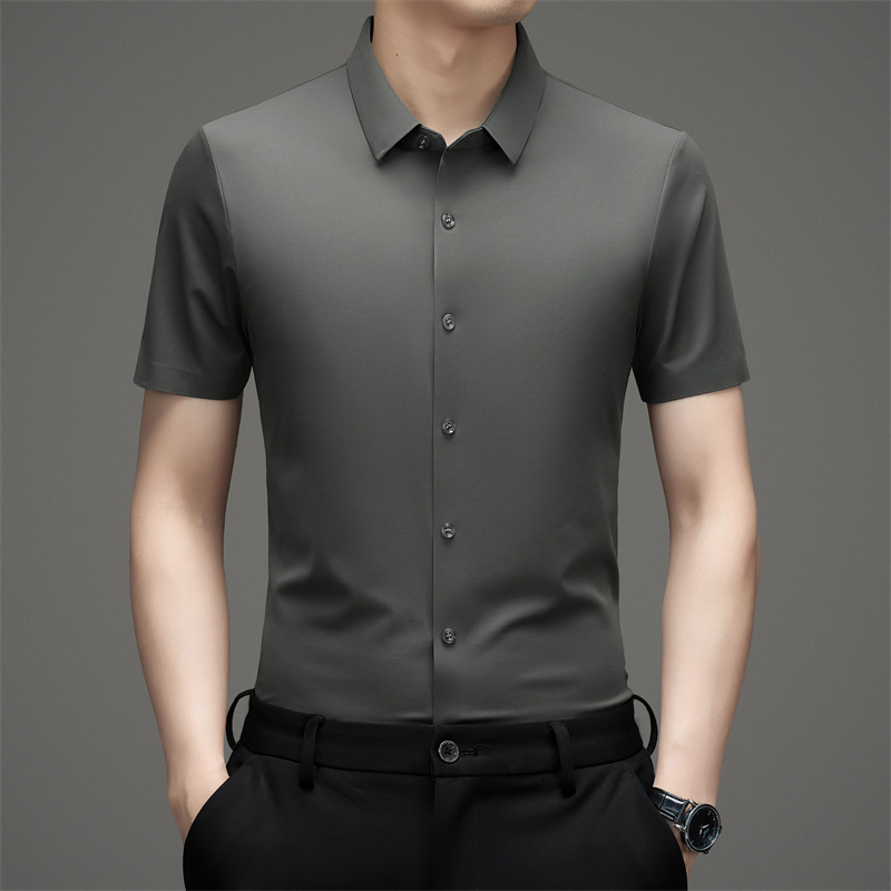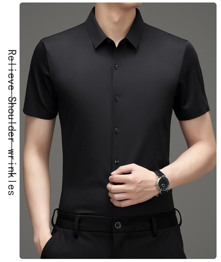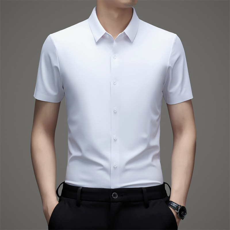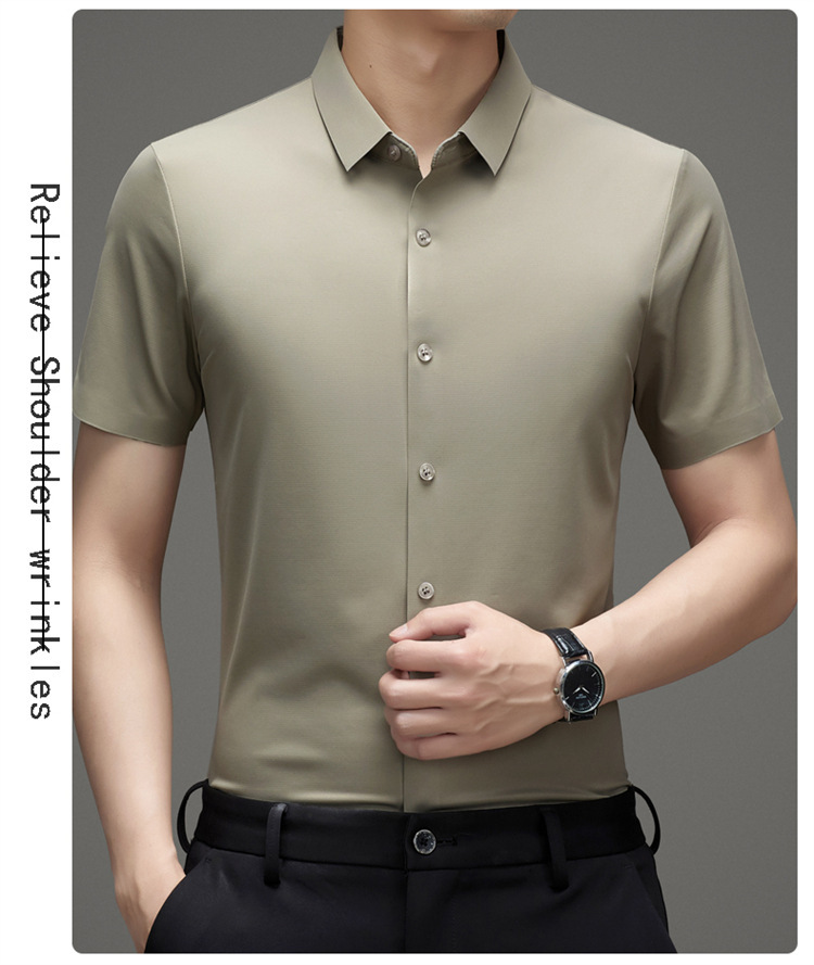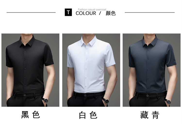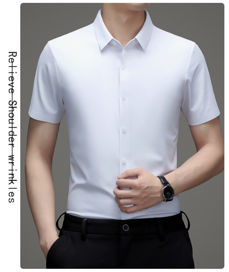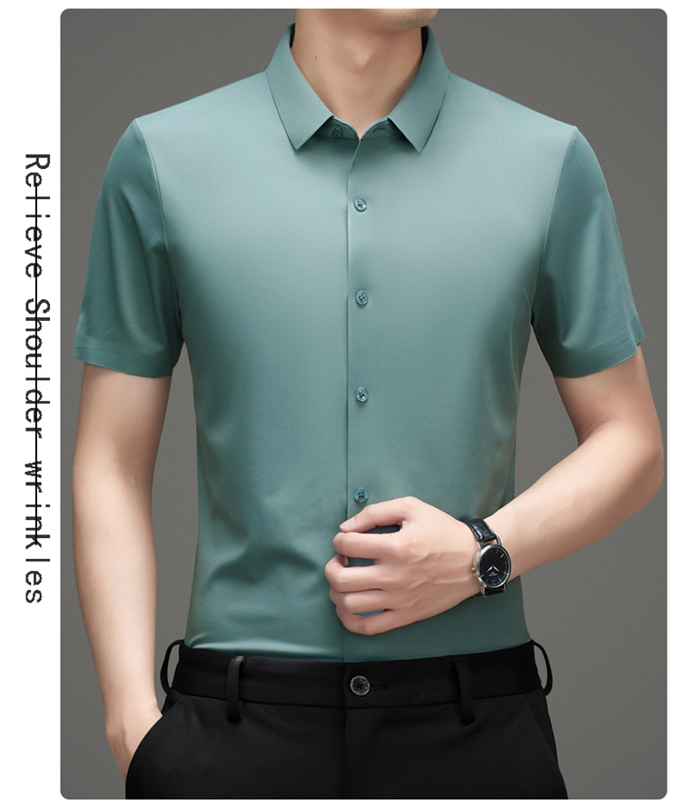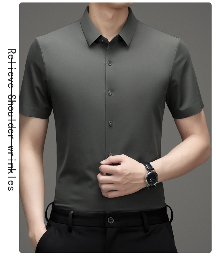 여름 아이스 실크 비 다림질 반팔 셔츠 남성용 비 마킹 통기성 빠른 건조 셔츠 남성용 탄성 반소매 비즈니스 남성복
