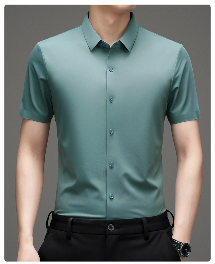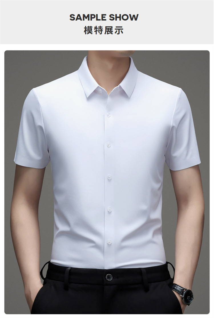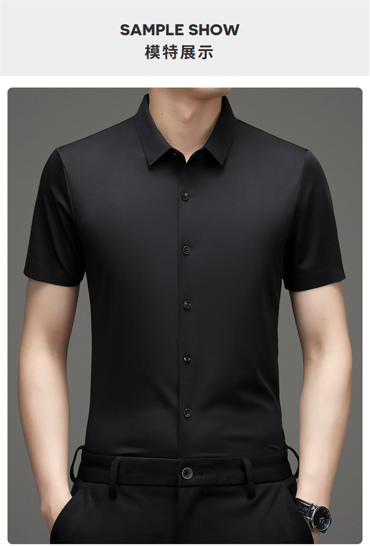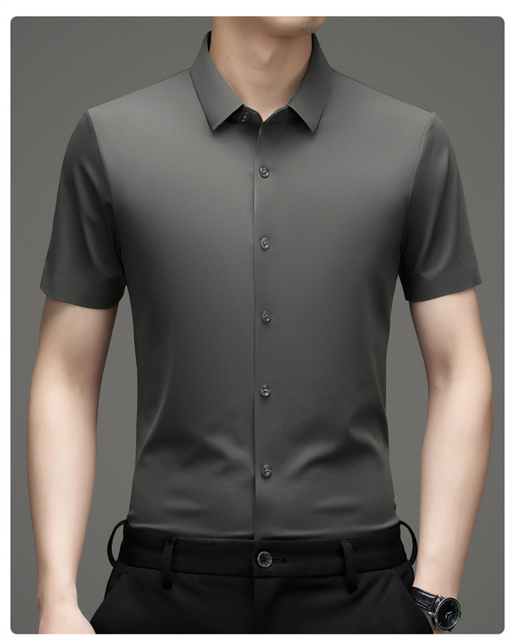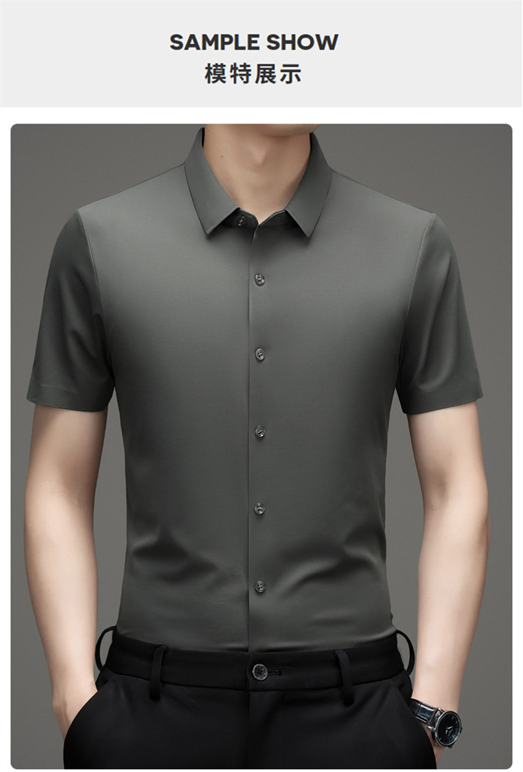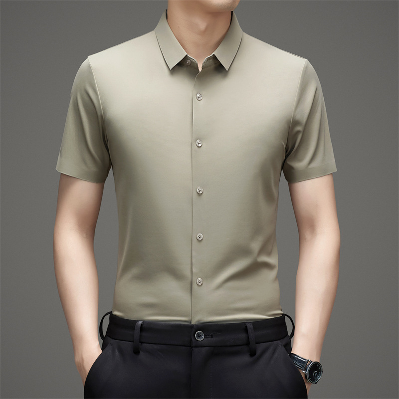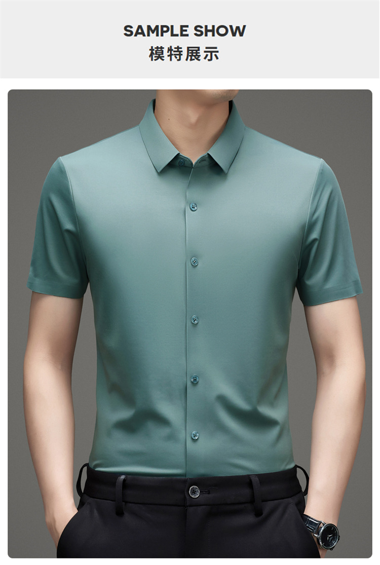 여름 아이스 실크 비 다림질 반팔 셔츠 남성용 비 마킹 통기성 빠른 건조 셔츠 남성용 탄성 반소매 비즈니스 남성복