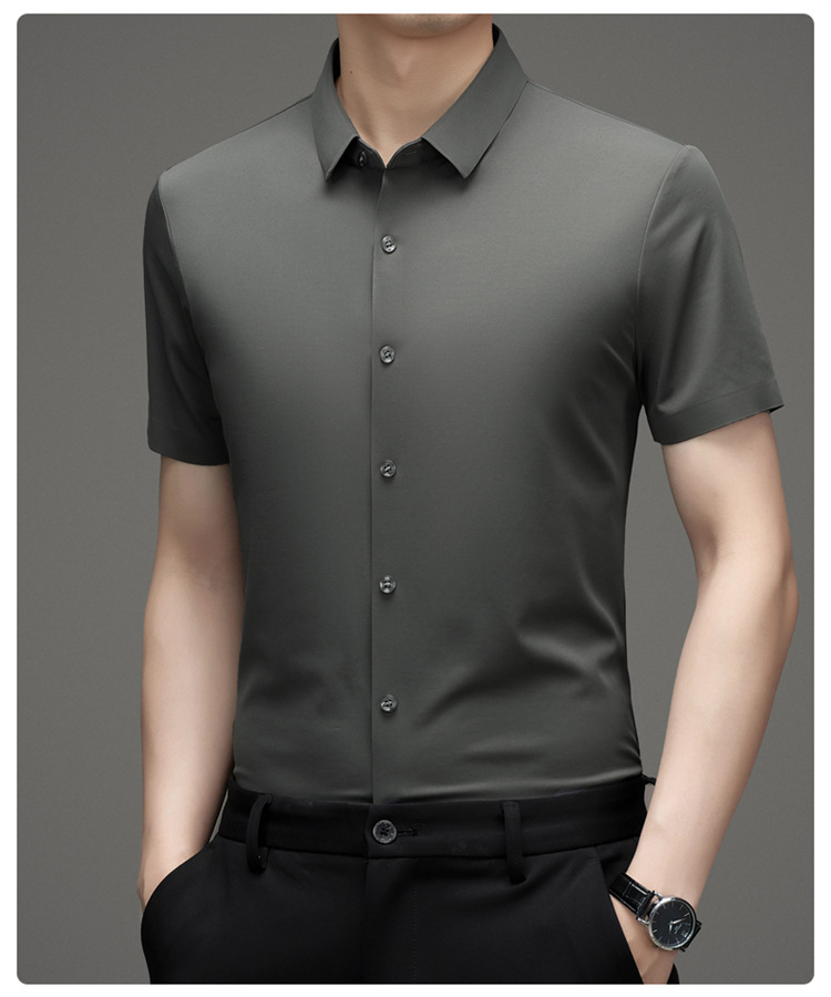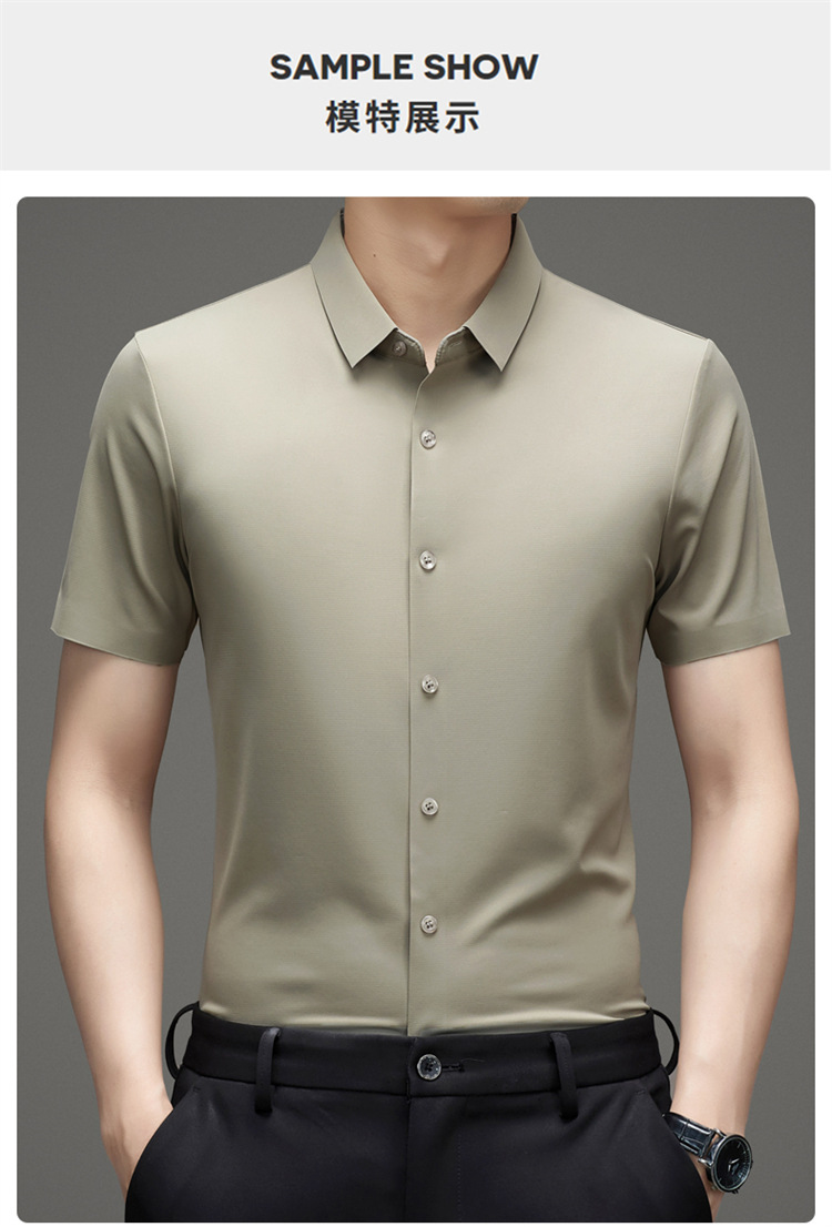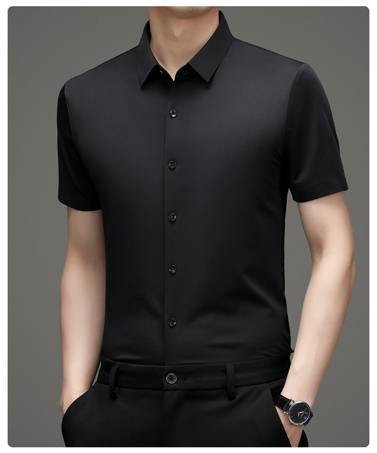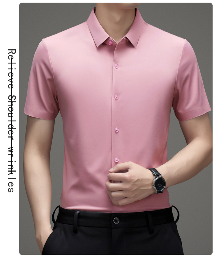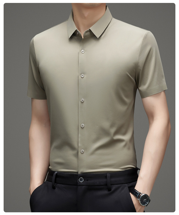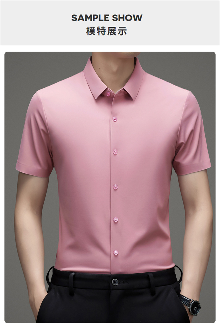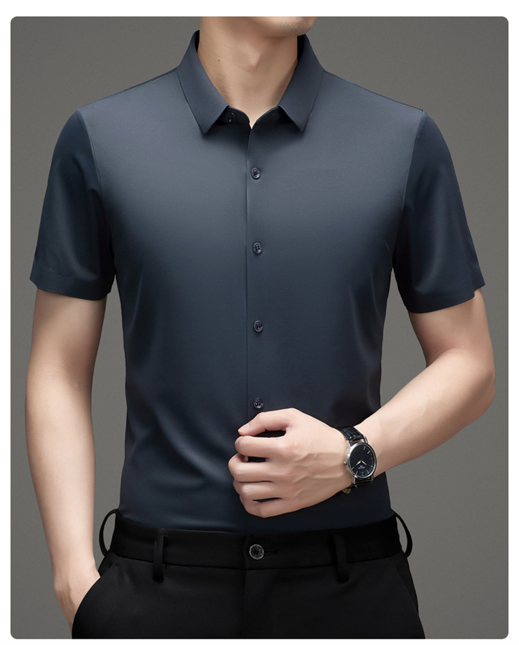 여름 아이스 실크 비 다림질 반팔 셔츠 남성용 비 마킹 통기성 빠른 건조 셔츠 남성용 탄성 반소매 비즈니스 남성복