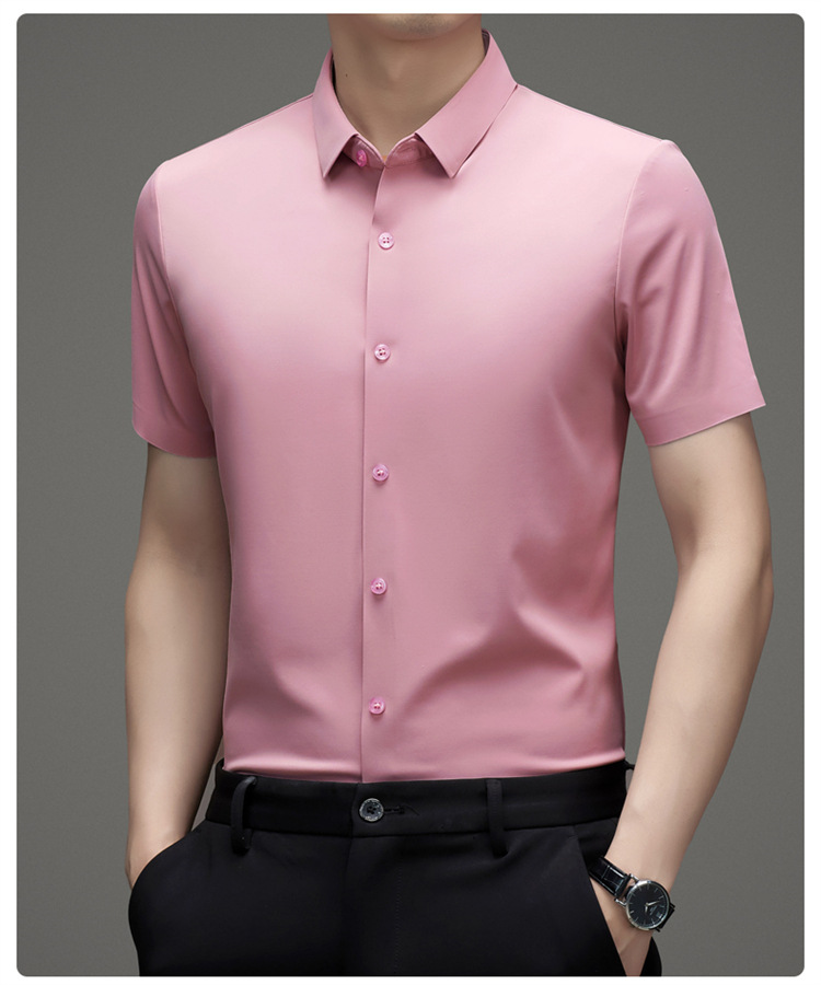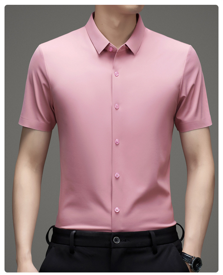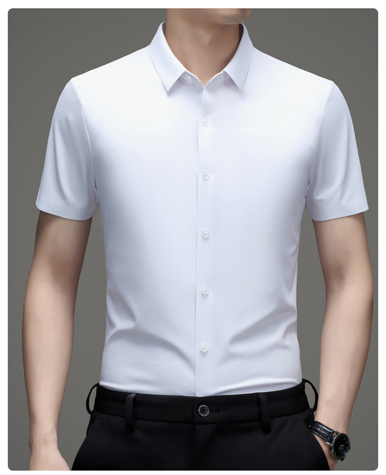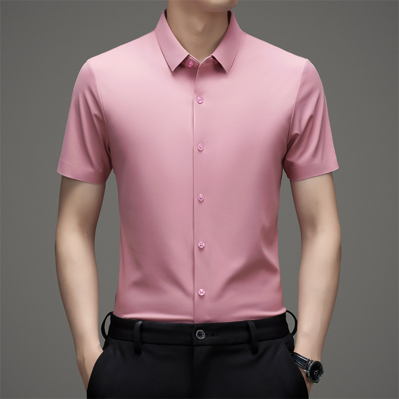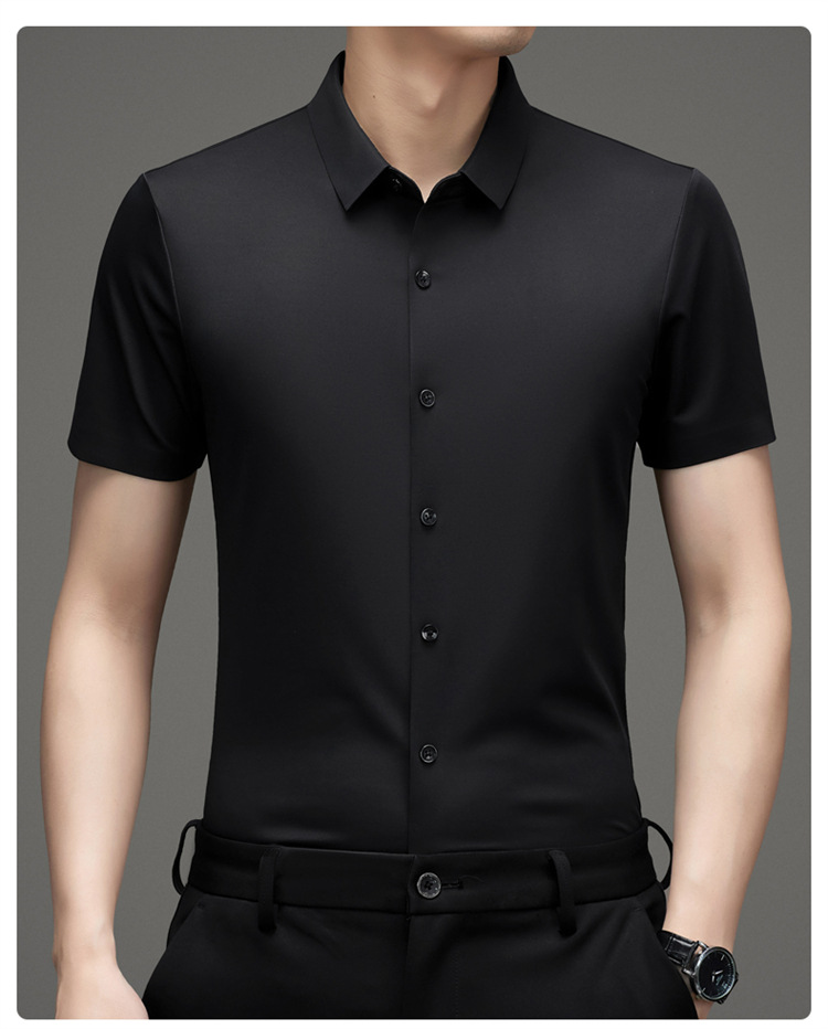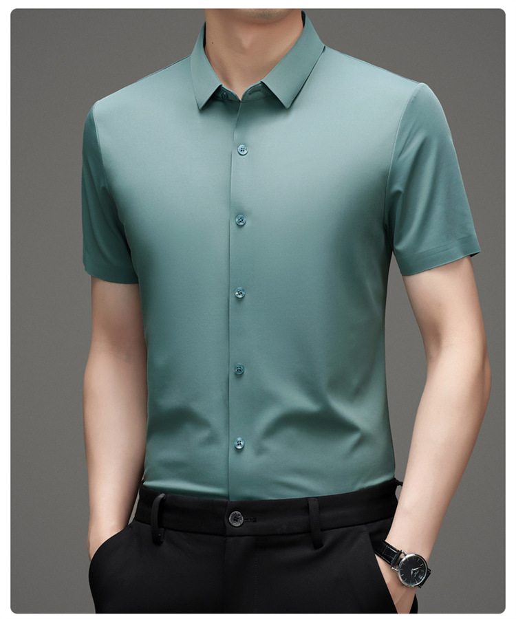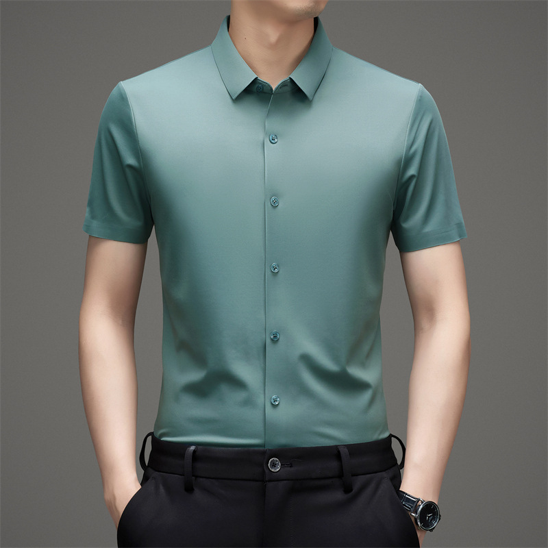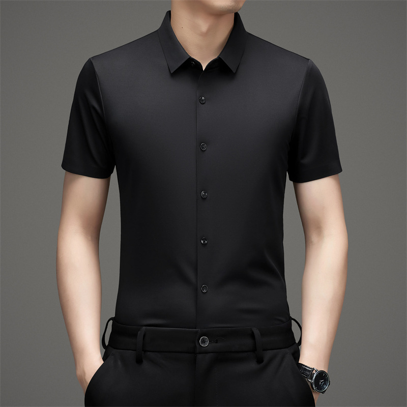 여름 아이스 실크 비 다림질 반팔 셔츠 남성용 비 마킹 통기성 빠른 건조 셔츠 남성용 탄성 반소매 비즈니스 남성복