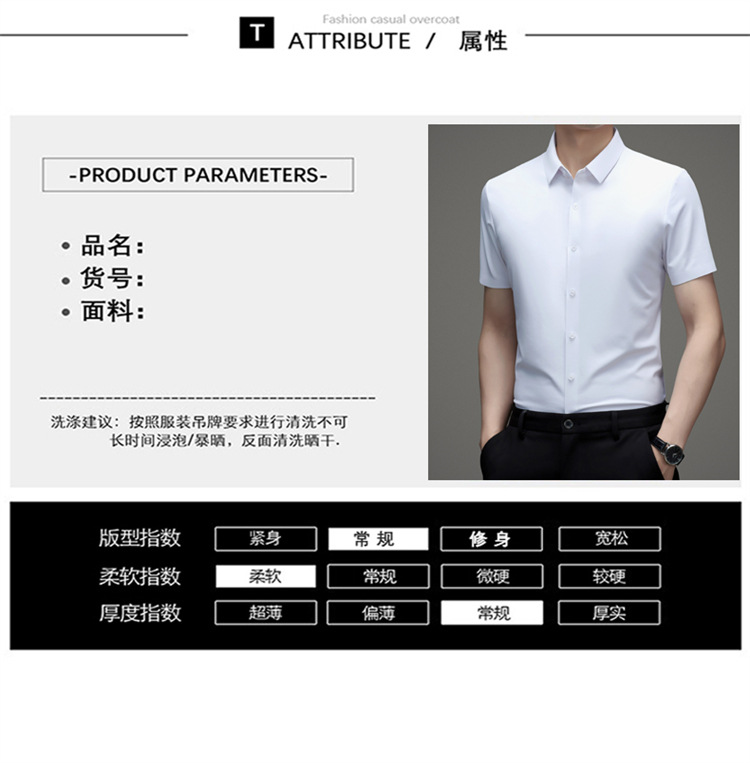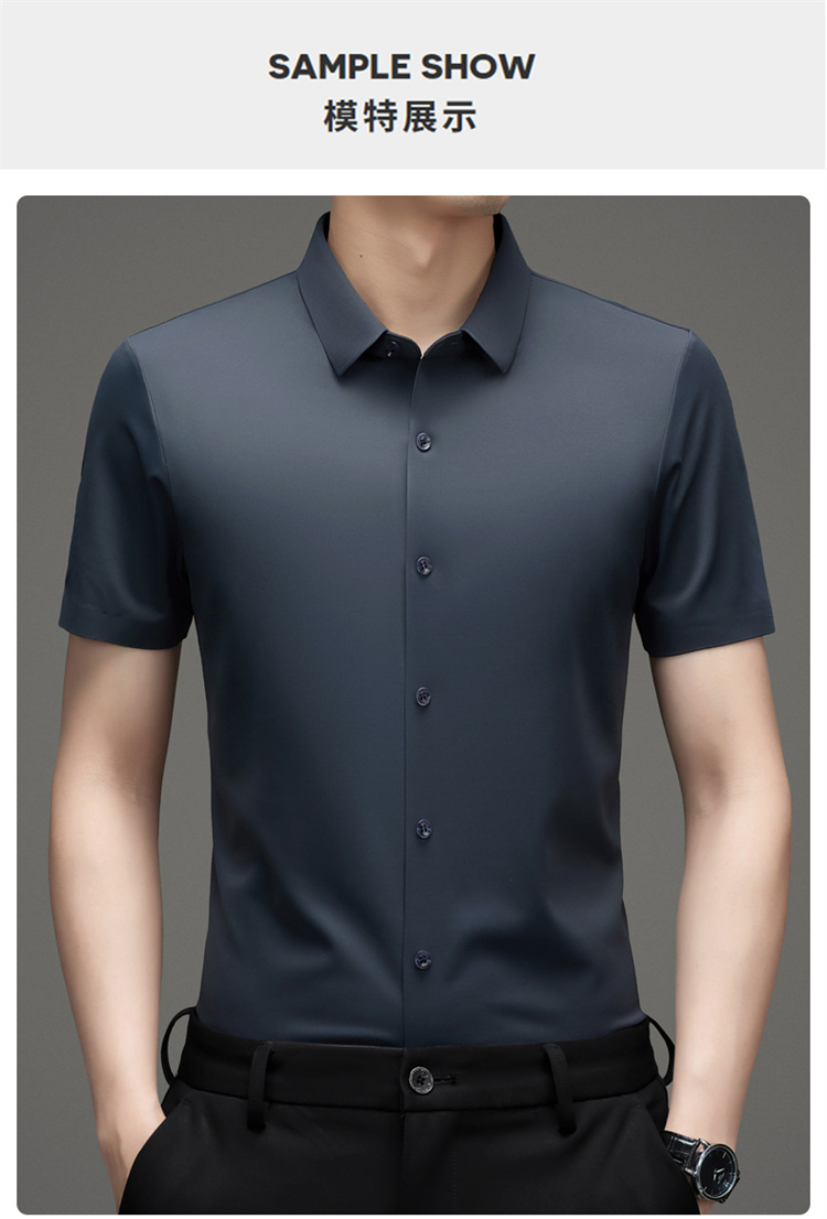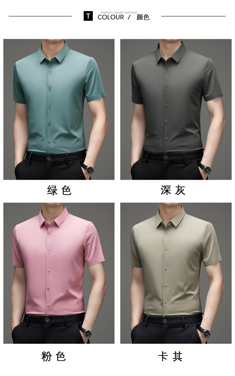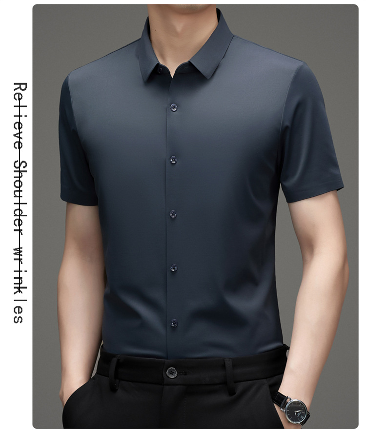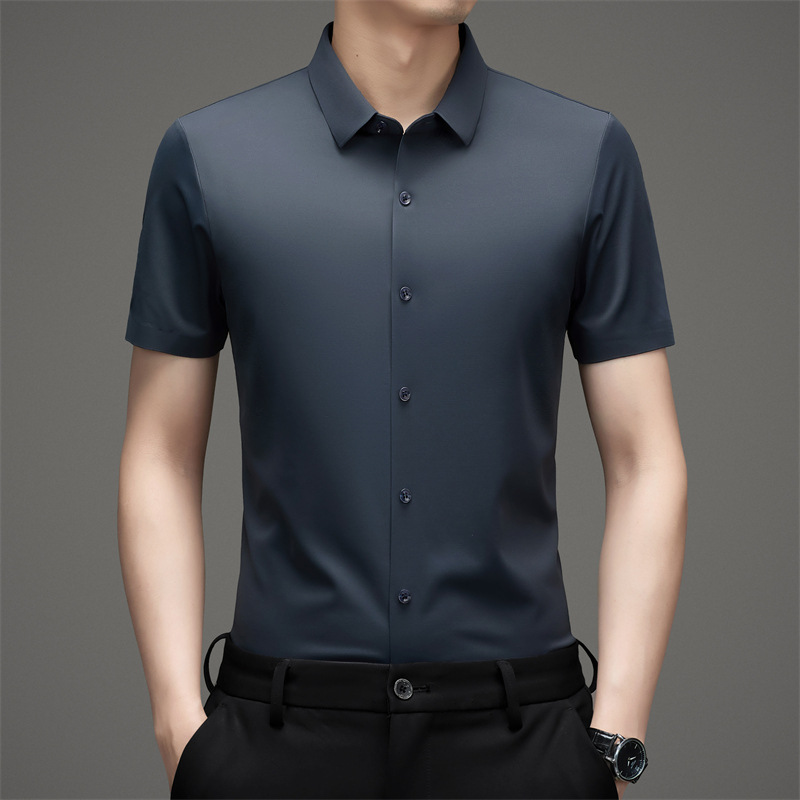 여름 아이스 실크 비 다림질 반팔 셔츠 남성용 비 마킹 통기성 빠른 건조 셔츠 남성용 탄성 반소매 비즈니스 남성복스토어 가기