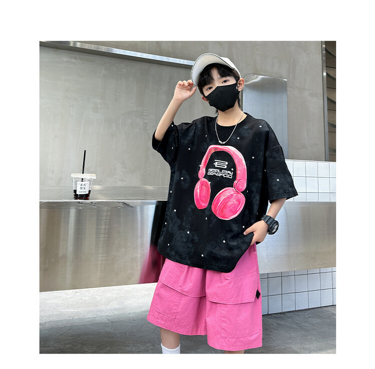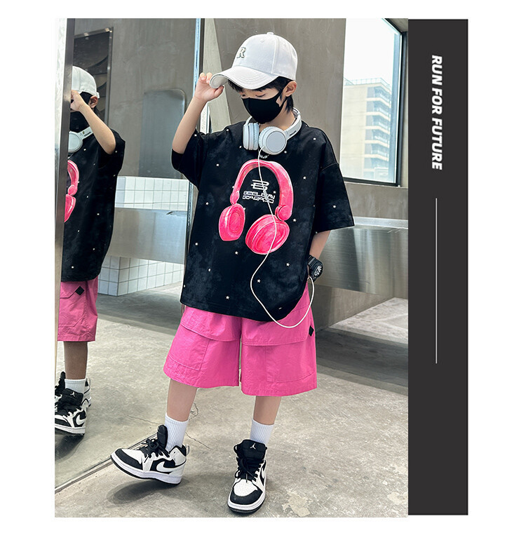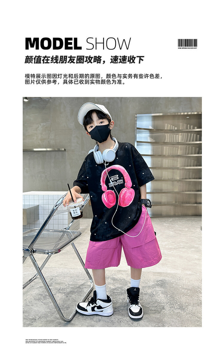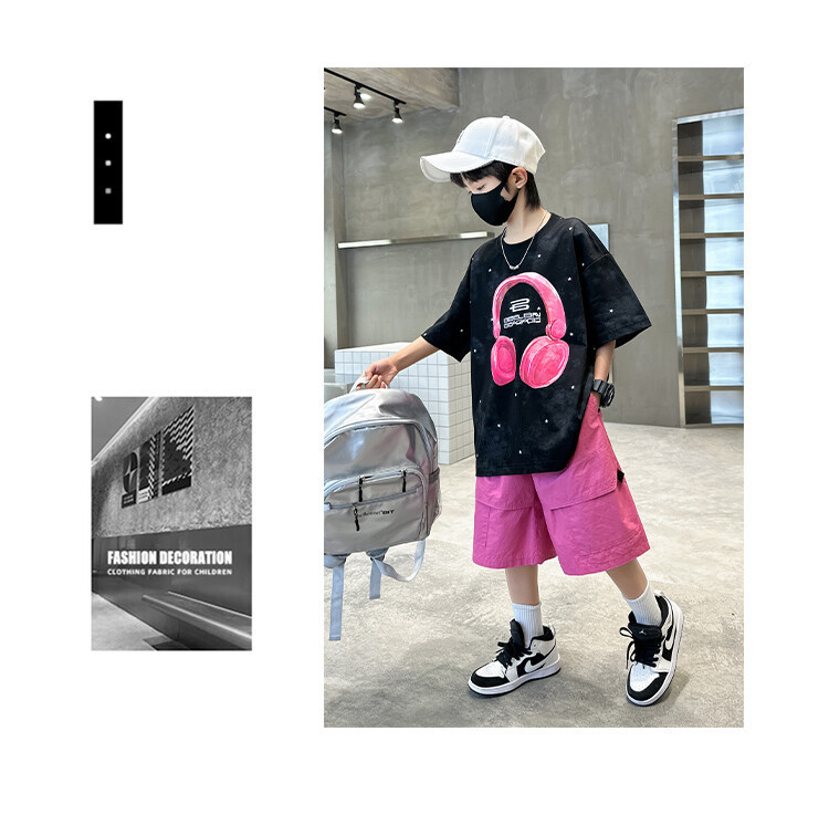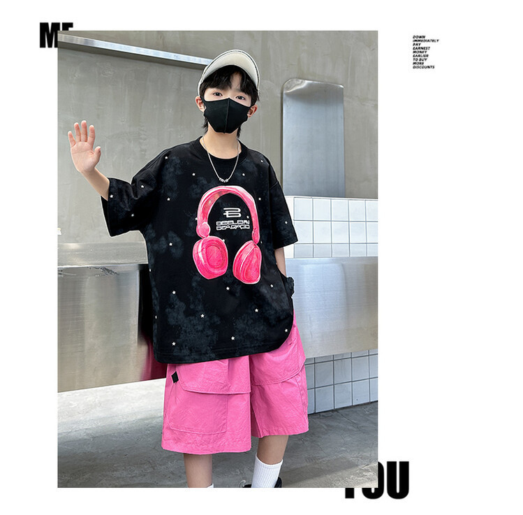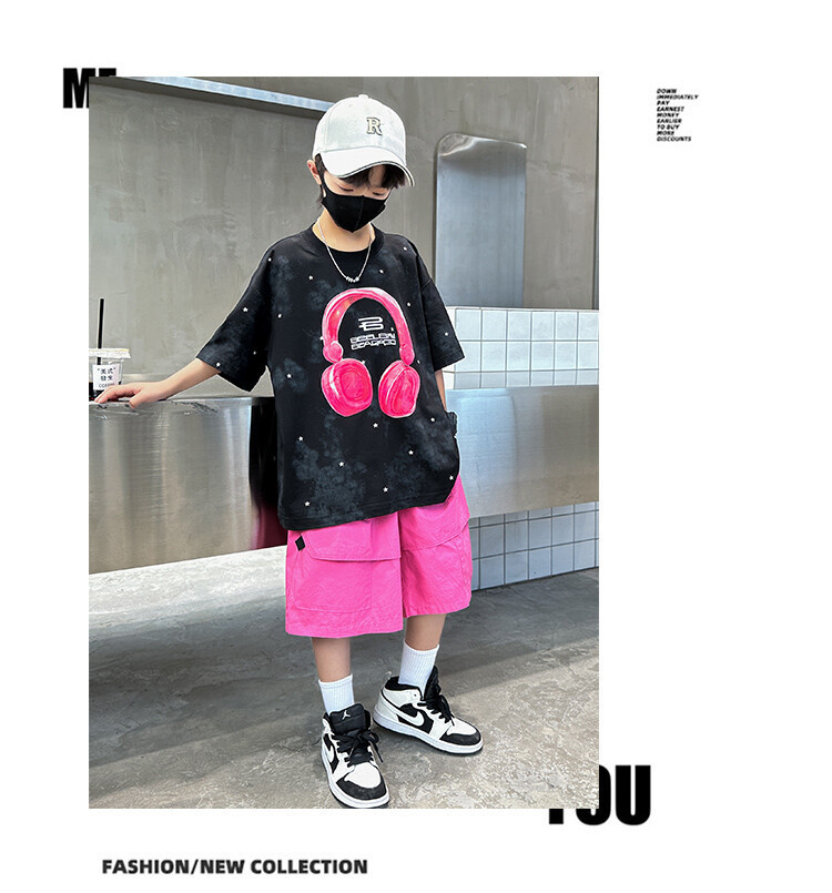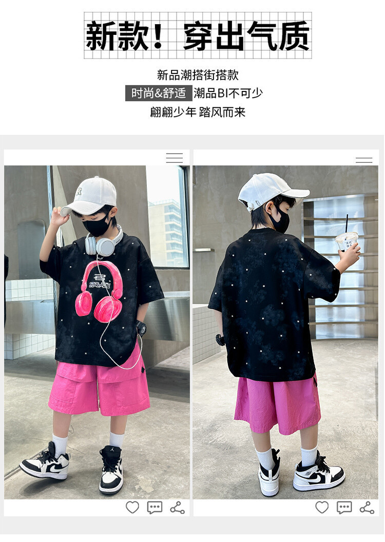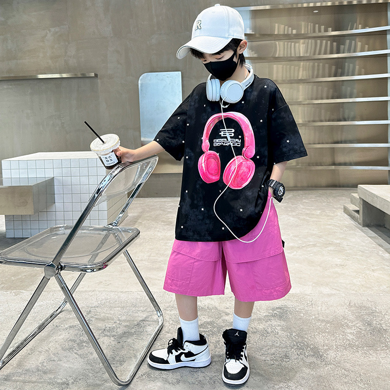 소년 인쇄 세트 여름 유행 어린이 반팔 작업복 스포츠 느슨한 투피스 세트 큰 어린이 여름 원피스스토어 가기