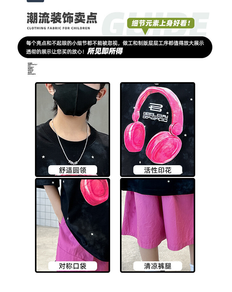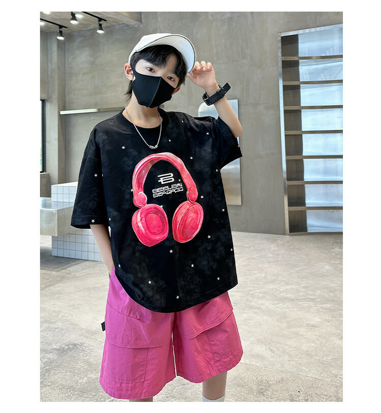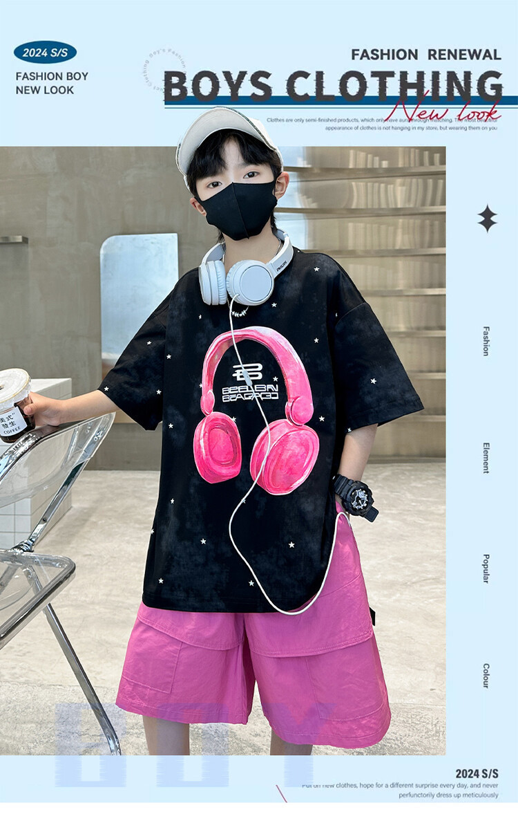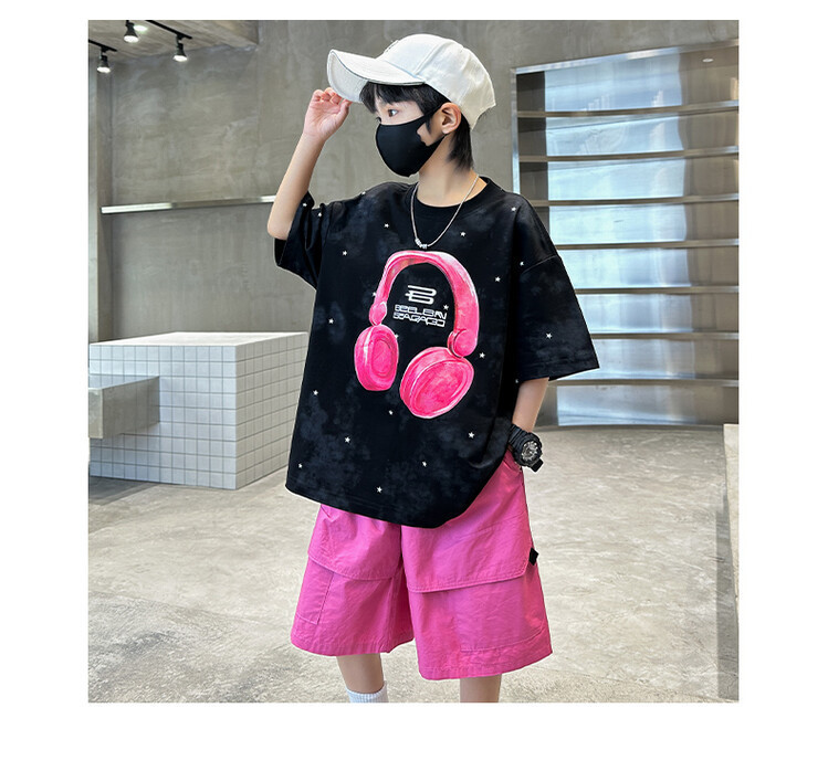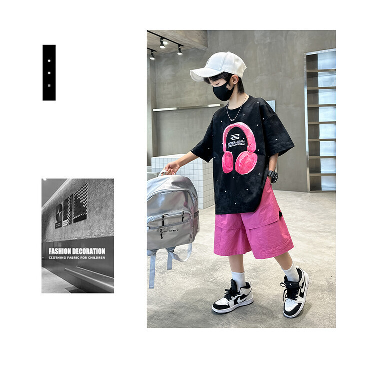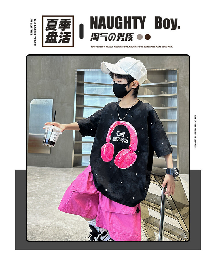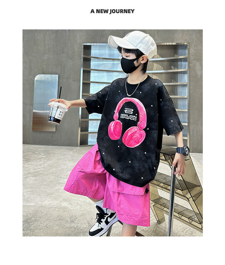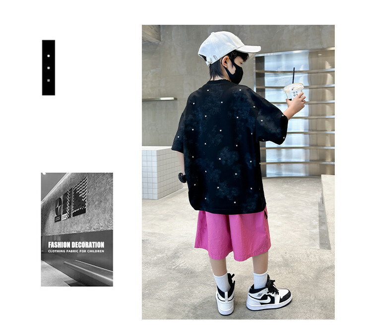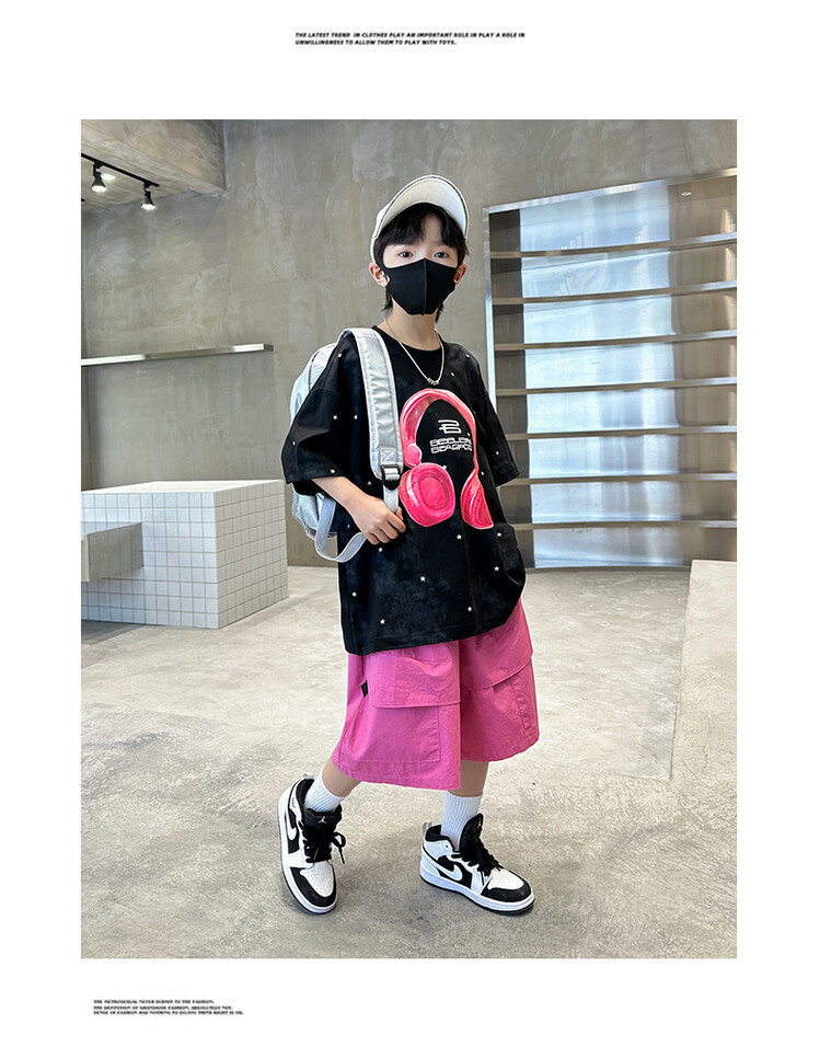 소년 인쇄 세트 여름 유행 어린이 반팔 작업복 스포츠 느슨한 투피스 세트 큰 어린이 여름 원피스스토어 가기