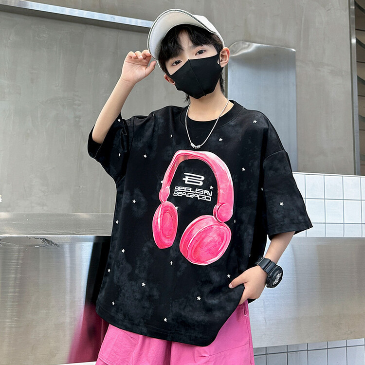소년 인쇄 세트 여름 유행 어린이 반팔 작업복 스포츠 느슨한 투피스 세트 큰 어린이 여름 원피스