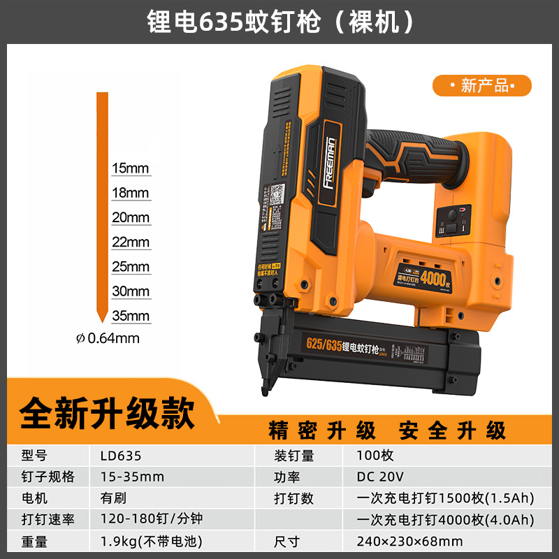 리튬 이온 모기 네일 건 FREEMAN 휴대용 충전 네일 건 635 목공 네일 촬영 특수 전기 빠른 네일 건스토어 가기