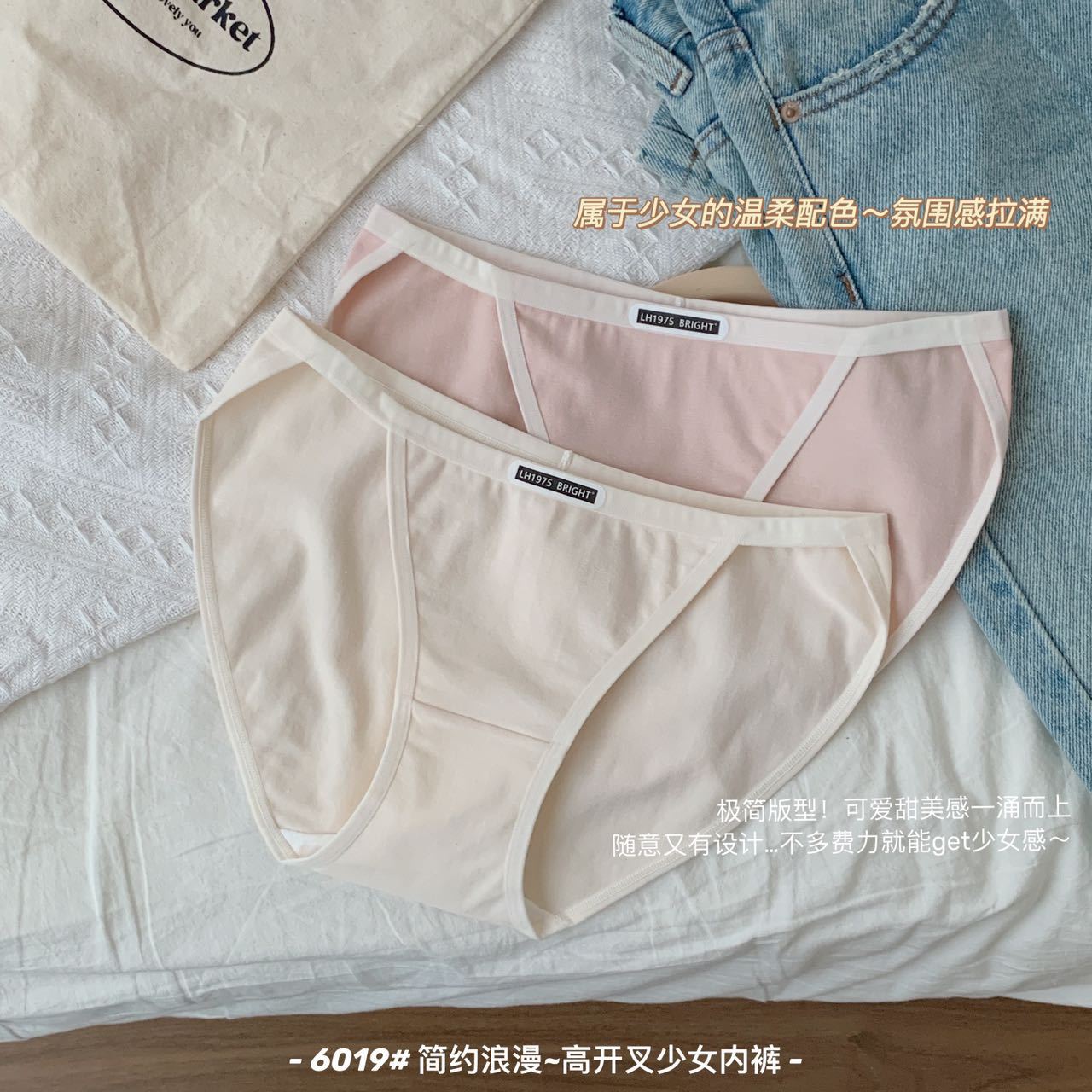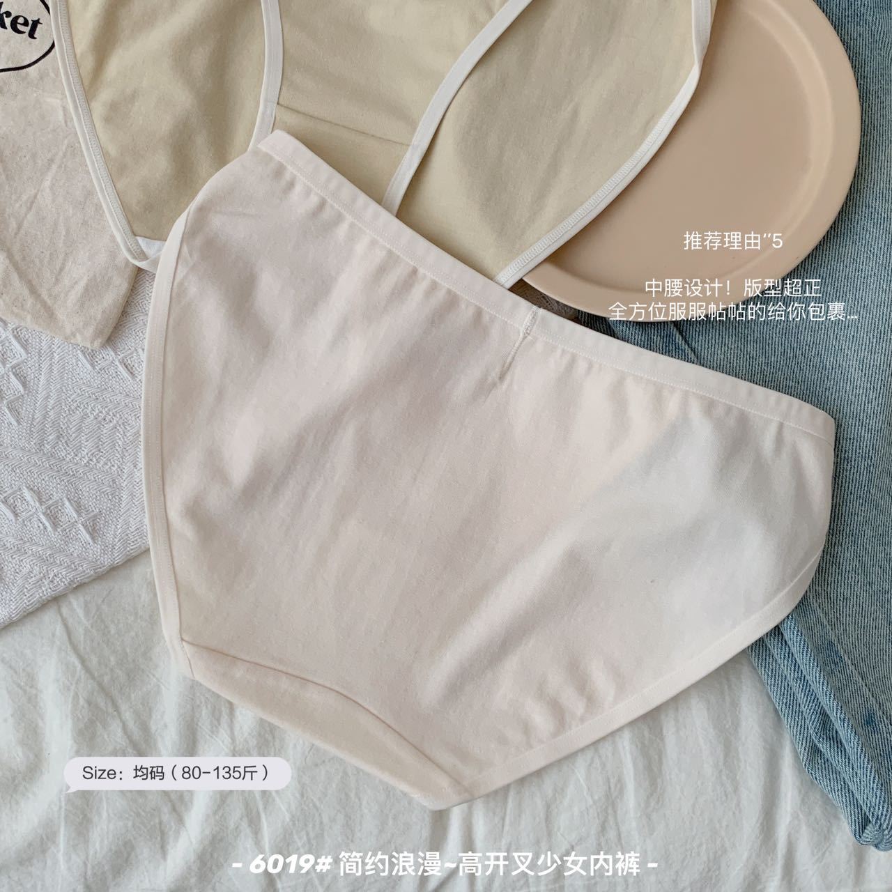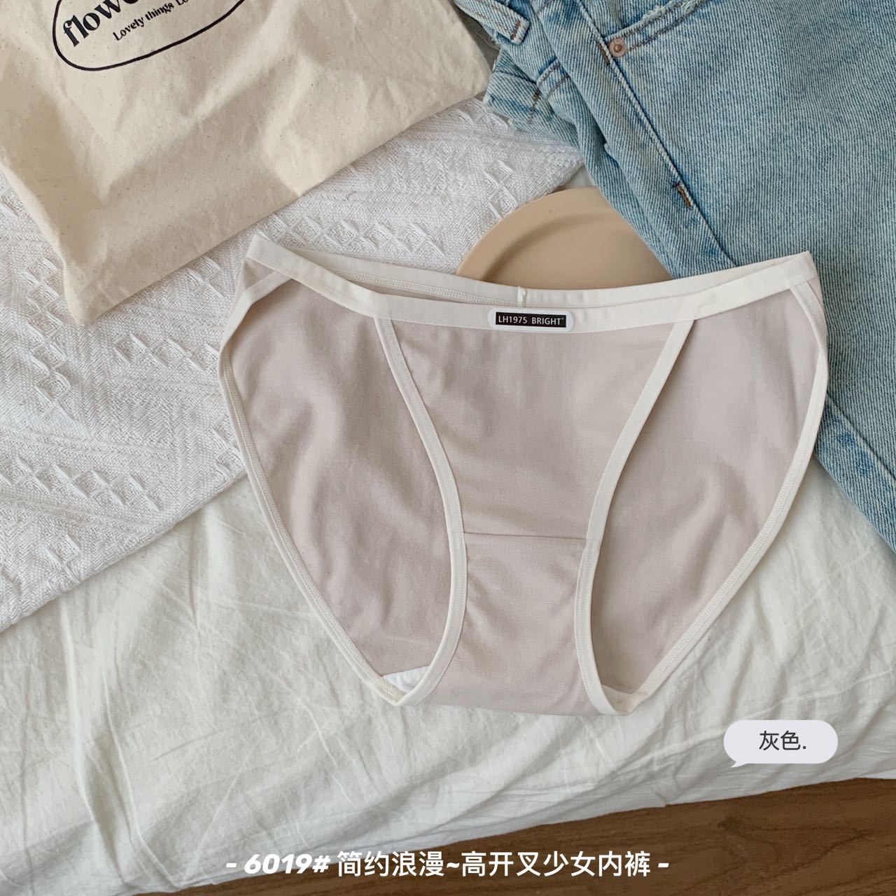 순수한 욕망 간단한 단색 편지 바느질 높은 분할 다리 긴면 속옷 여성의 중간 허리 편안한 통기성 소녀