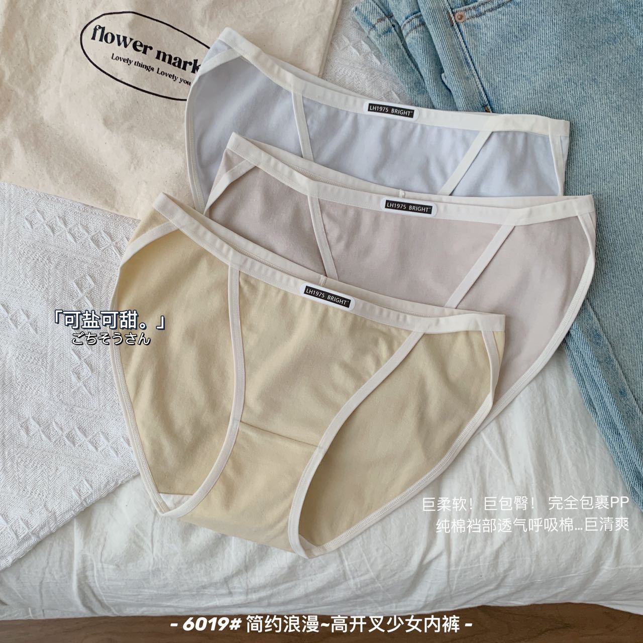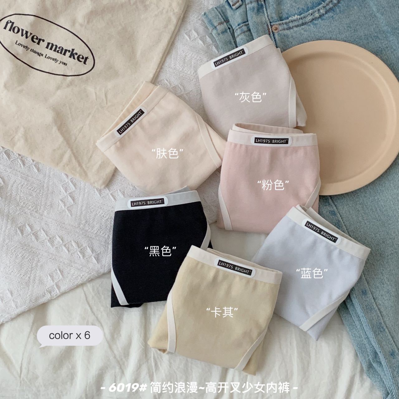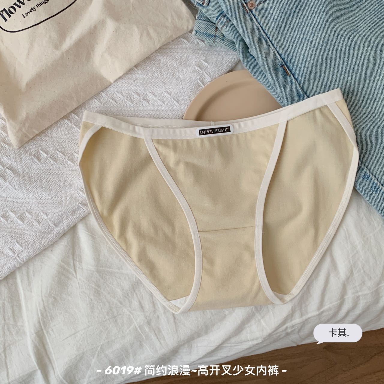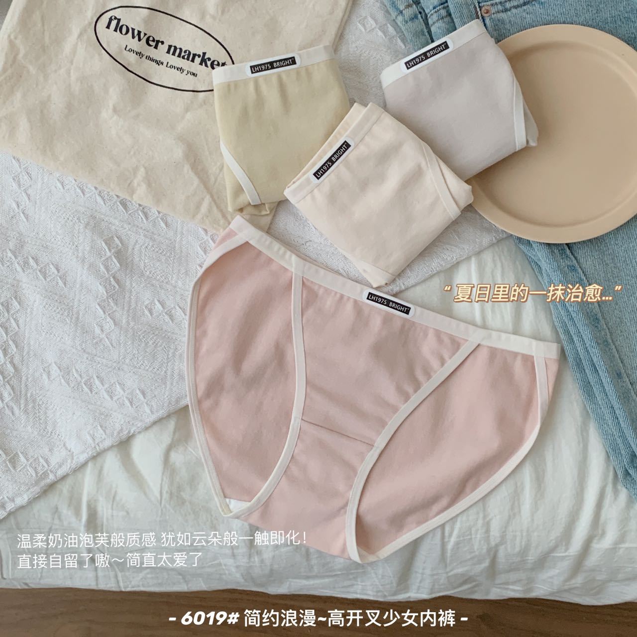 순수한 욕망 간단한 단색 편지 바느질 높은 분할 다리 긴면 속옷 여성의 중간 허리 편안한 통기성 소녀스토어 가기