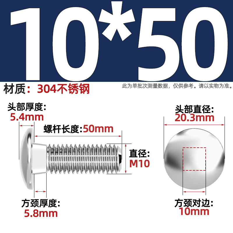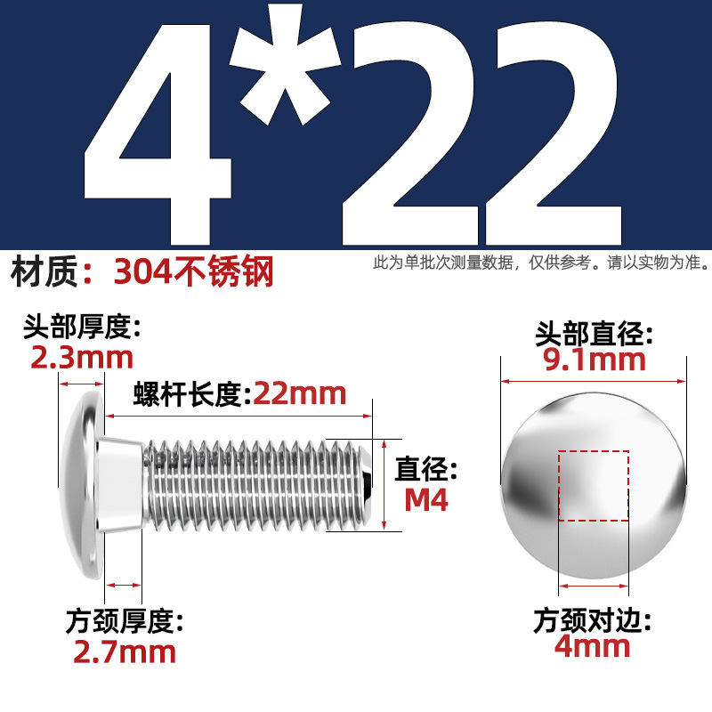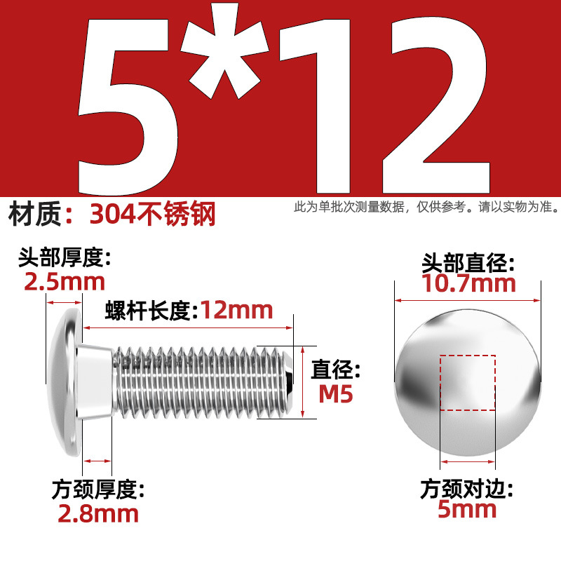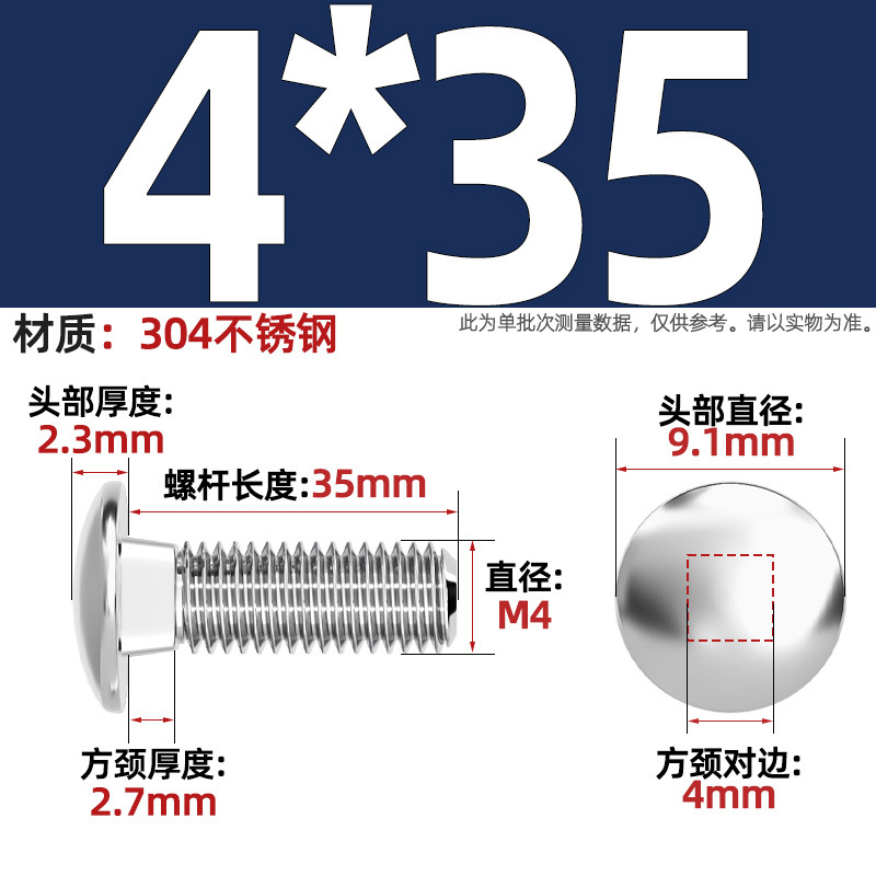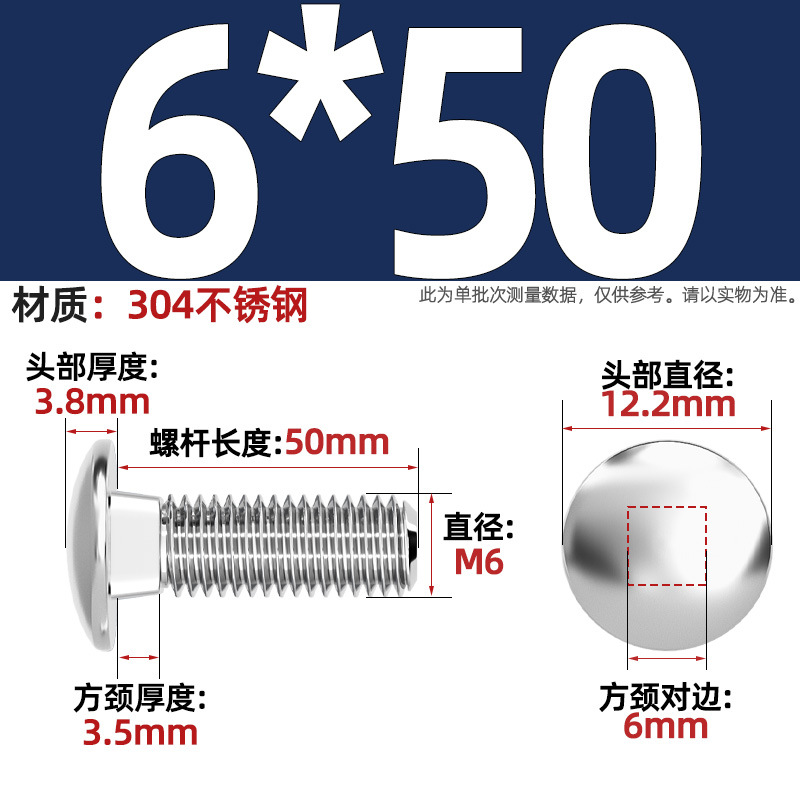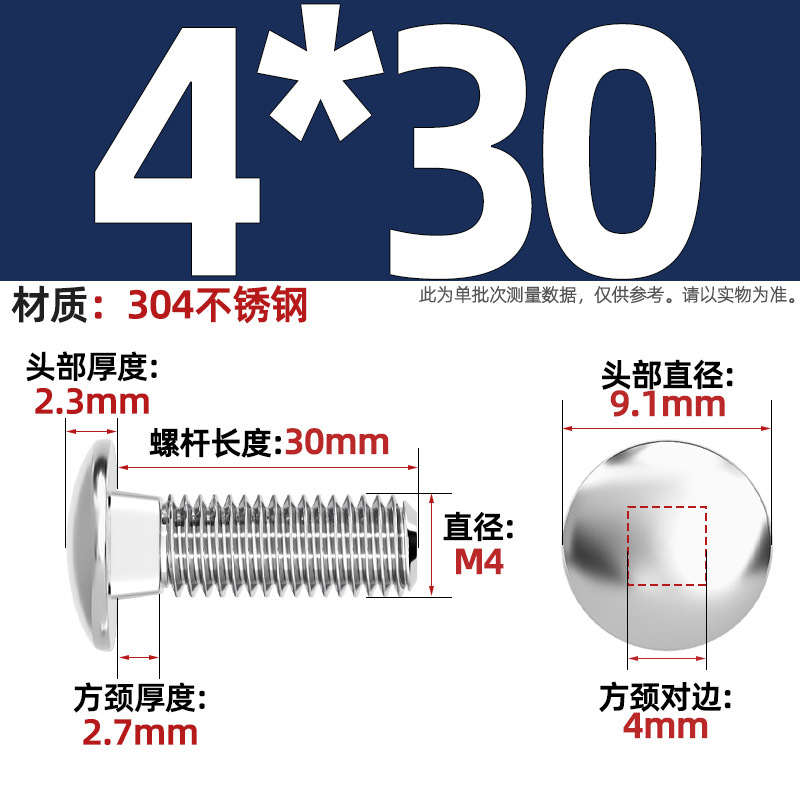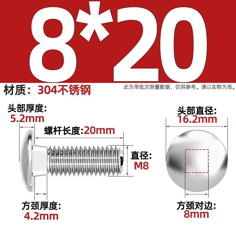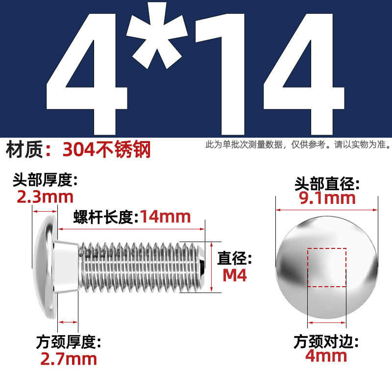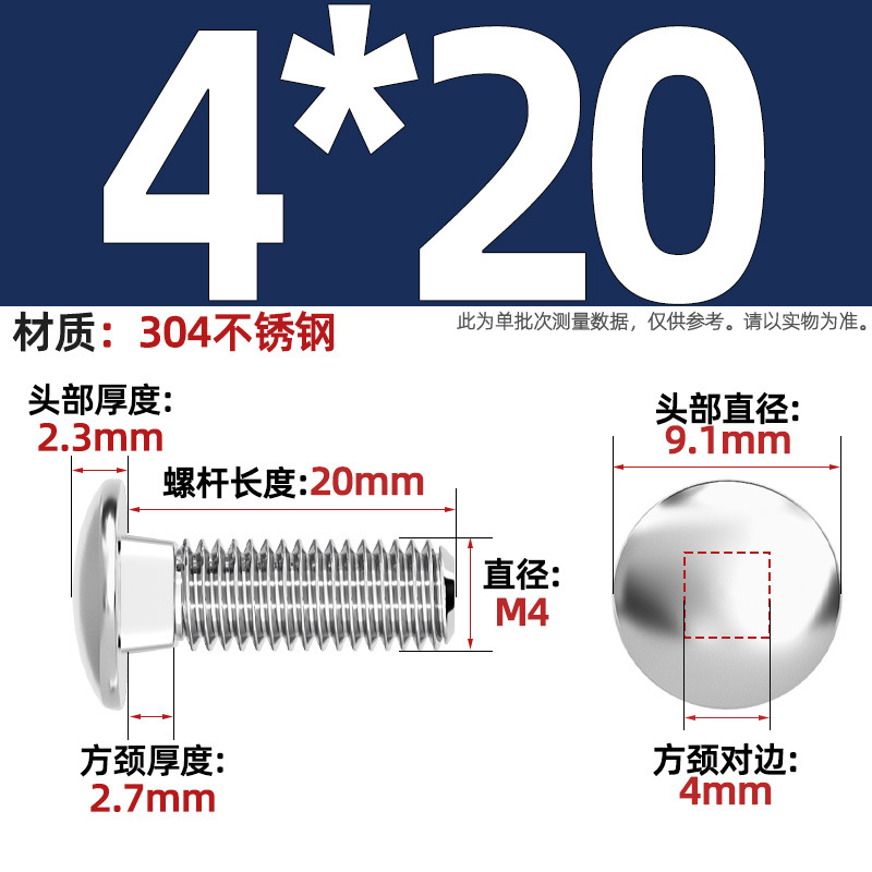 304 스테인레스 스틸 대형 플랫 헤드 반원형 헤드 볼트 사각 넥 나사 브리지 선반 소형 헤드 캐리지 M4-M12