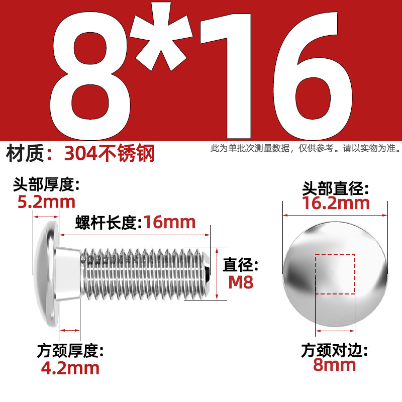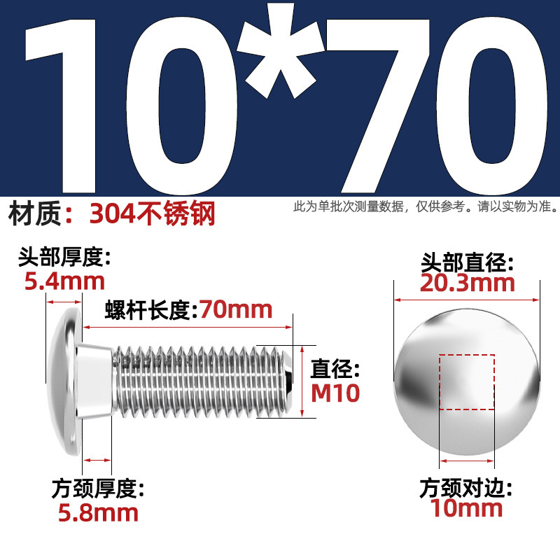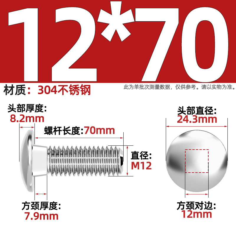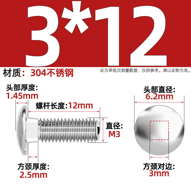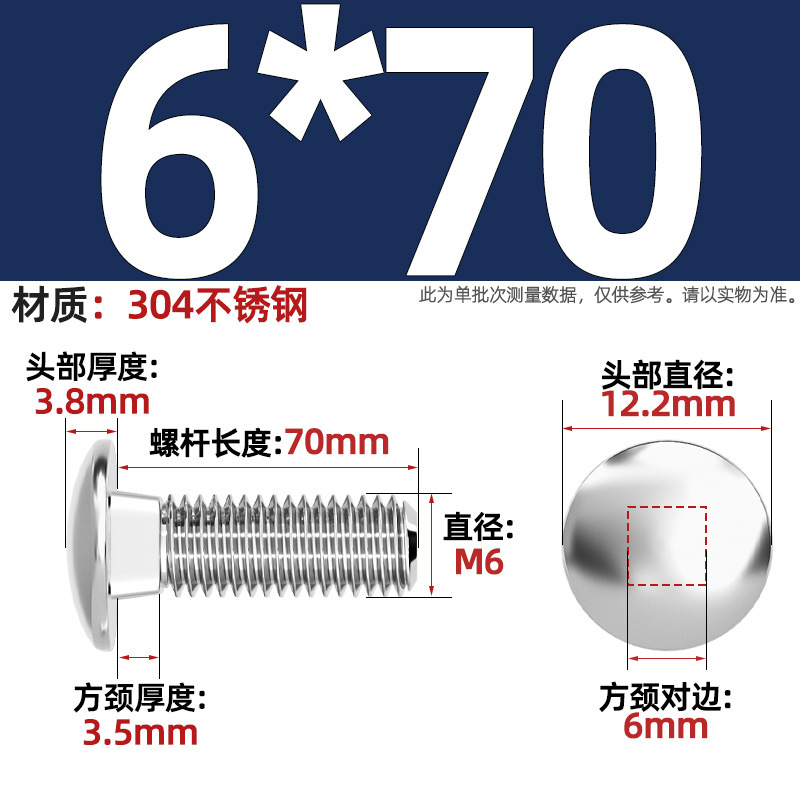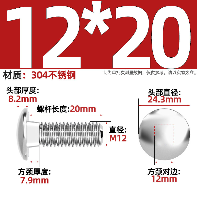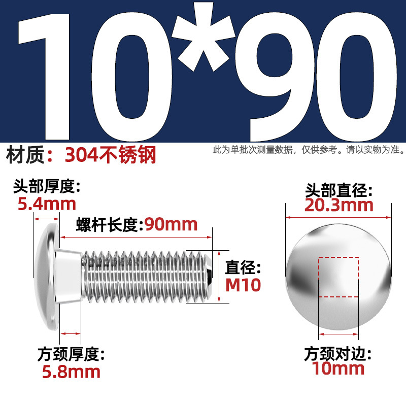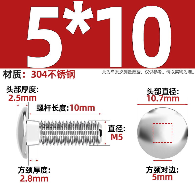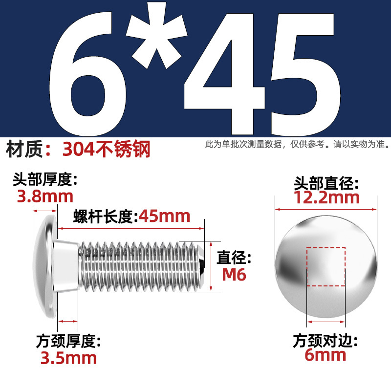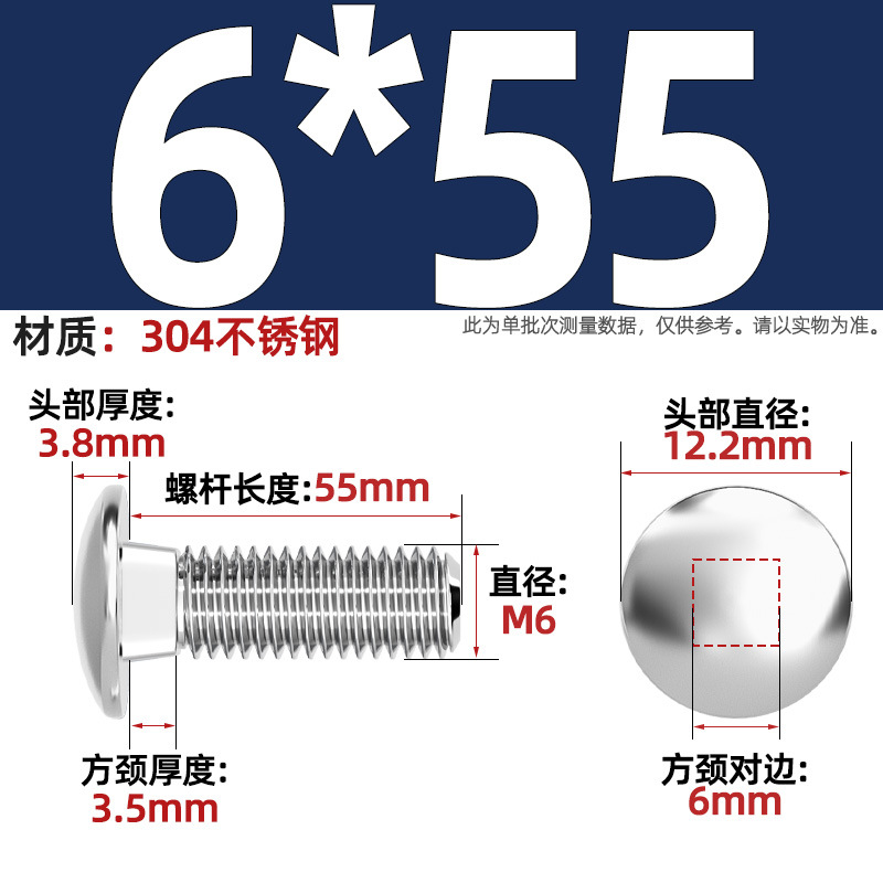 304 스테인레스 스틸 대형 플랫 헤드 반원형 헤드 볼트 사각 넥 나사 브리지 선반 소형 헤드 캐리지 M4-M12