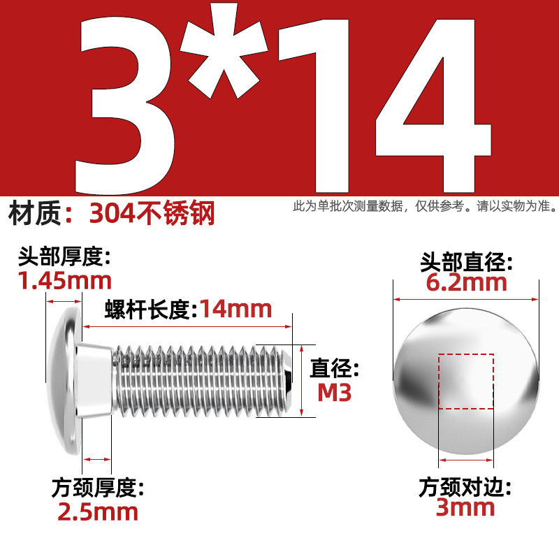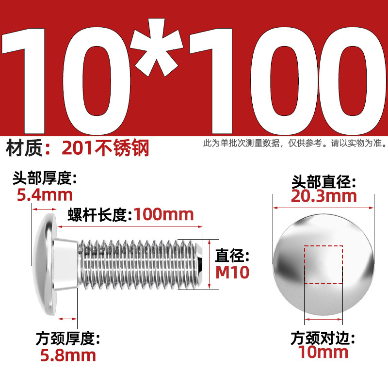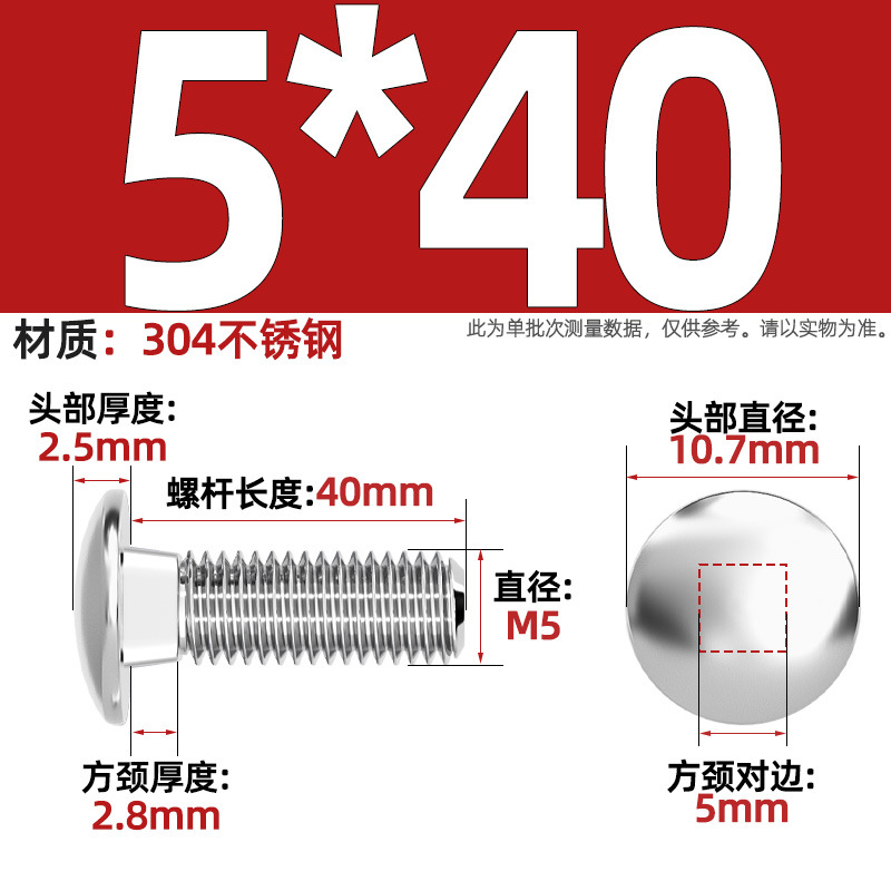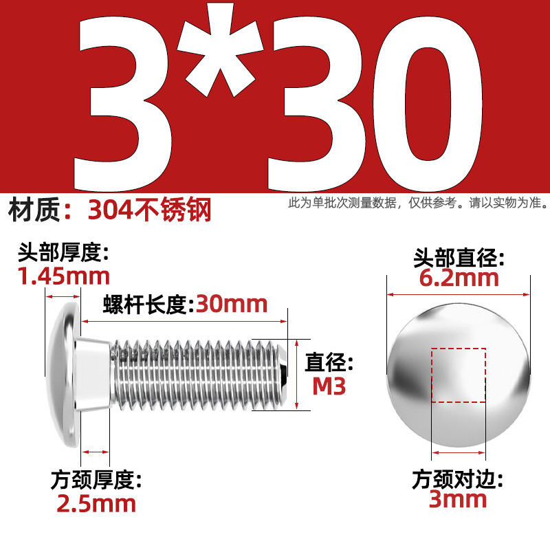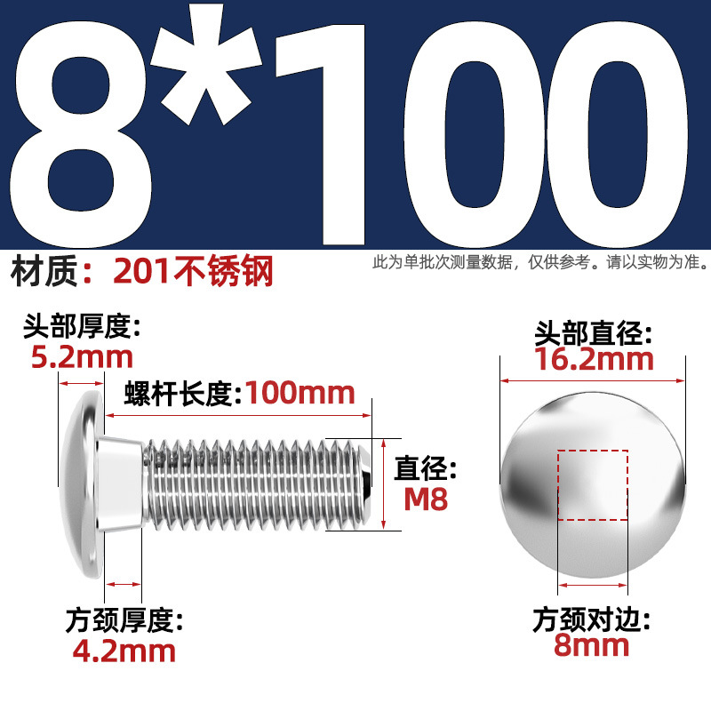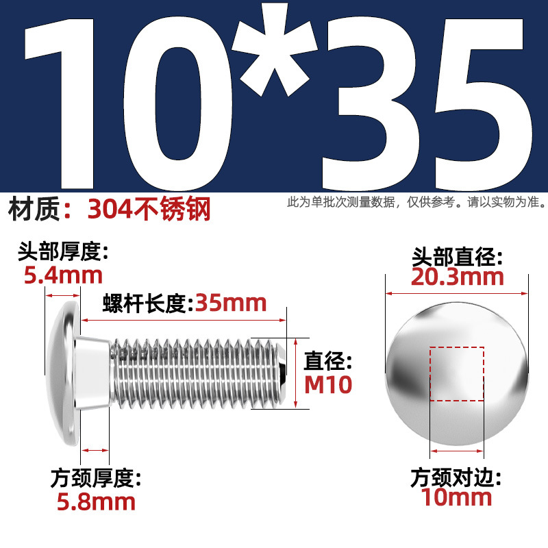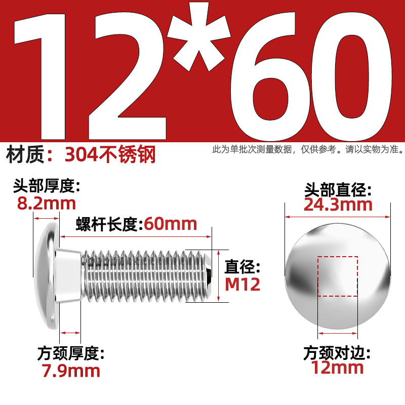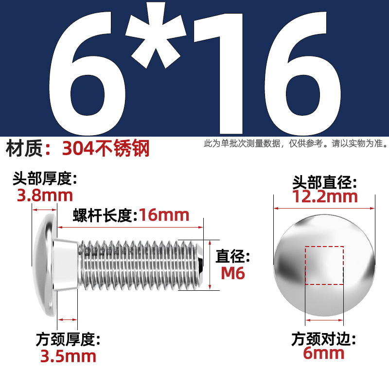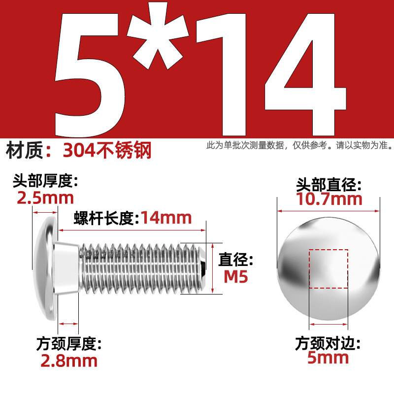 304 스테인레스 스틸 대형 플랫 헤드 반원형 헤드 볼트 사각 넥 나사 브리지 선반 소형 헤드 캐리지 M4-M12