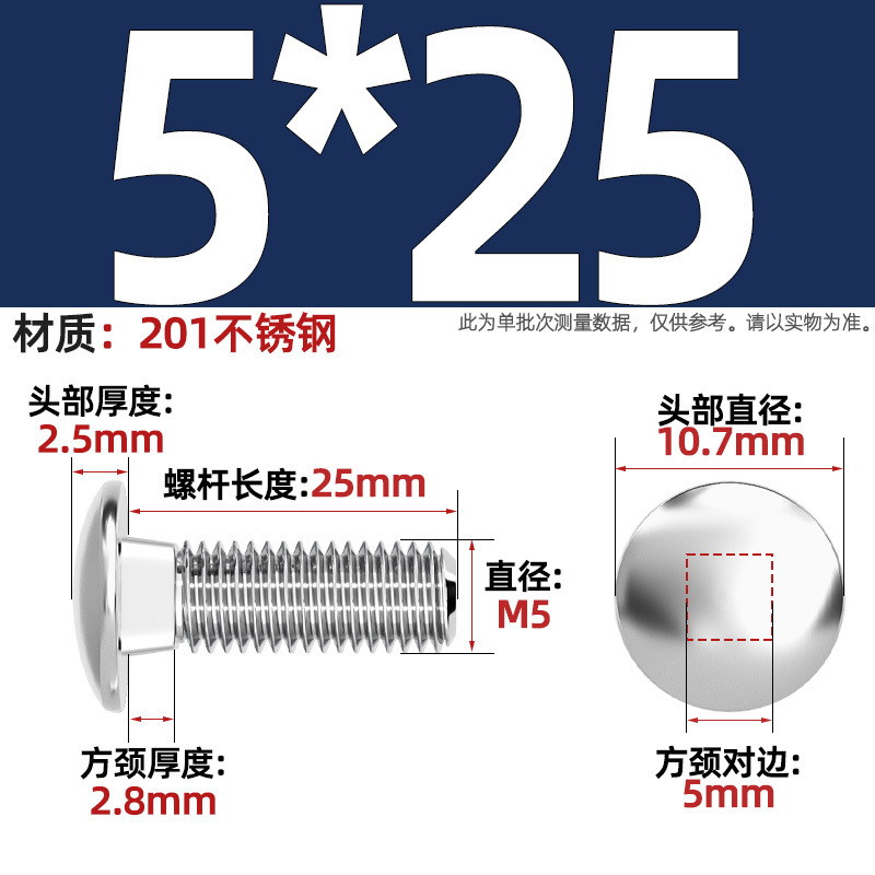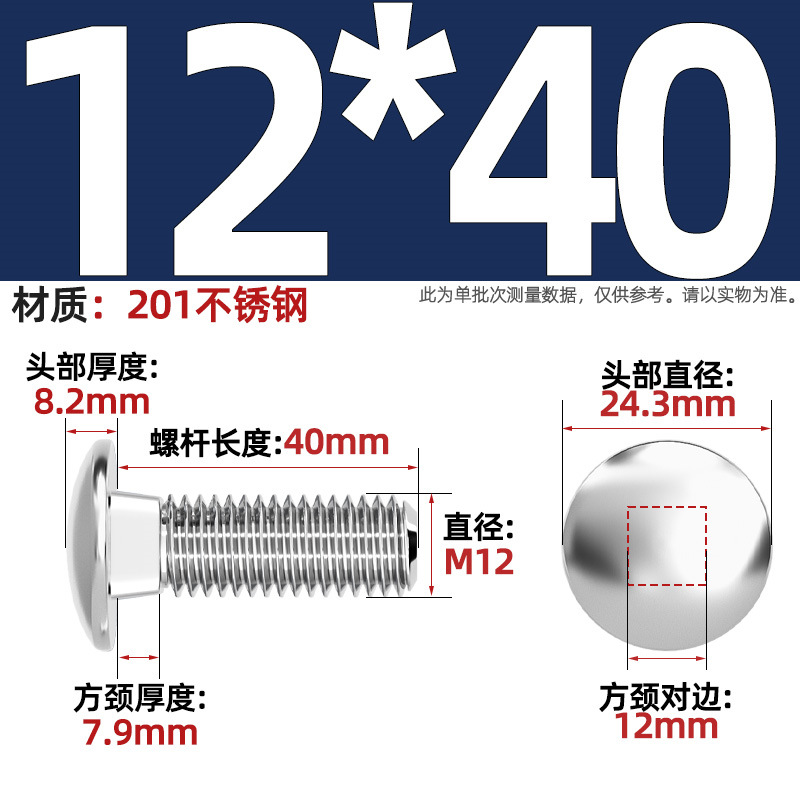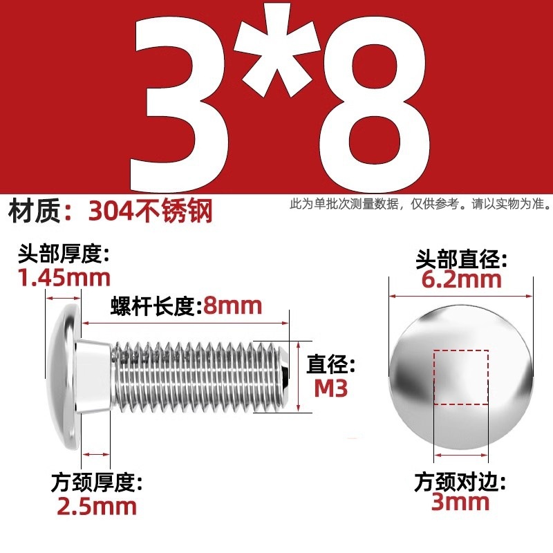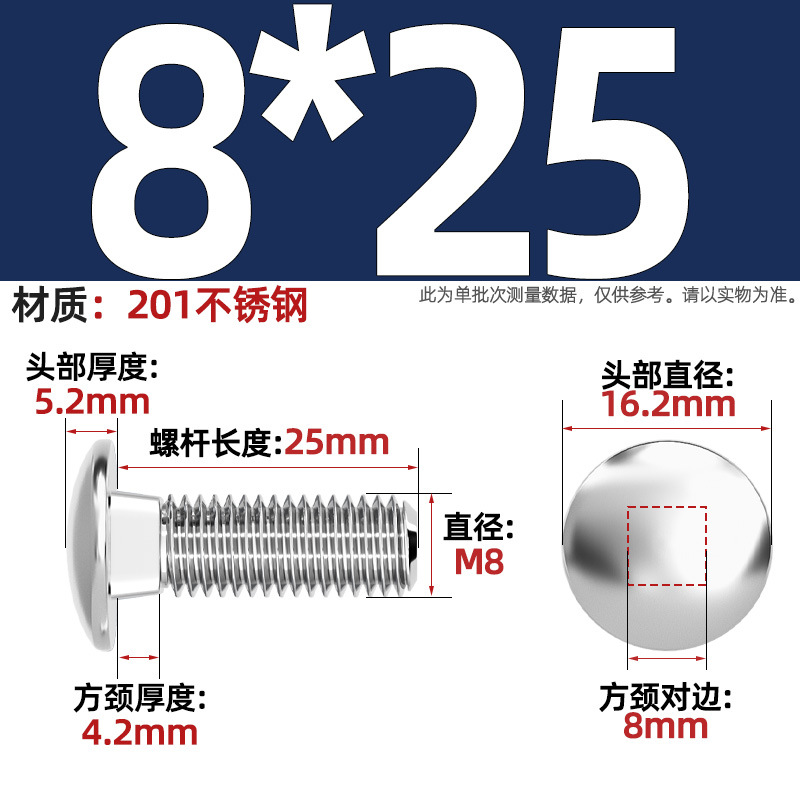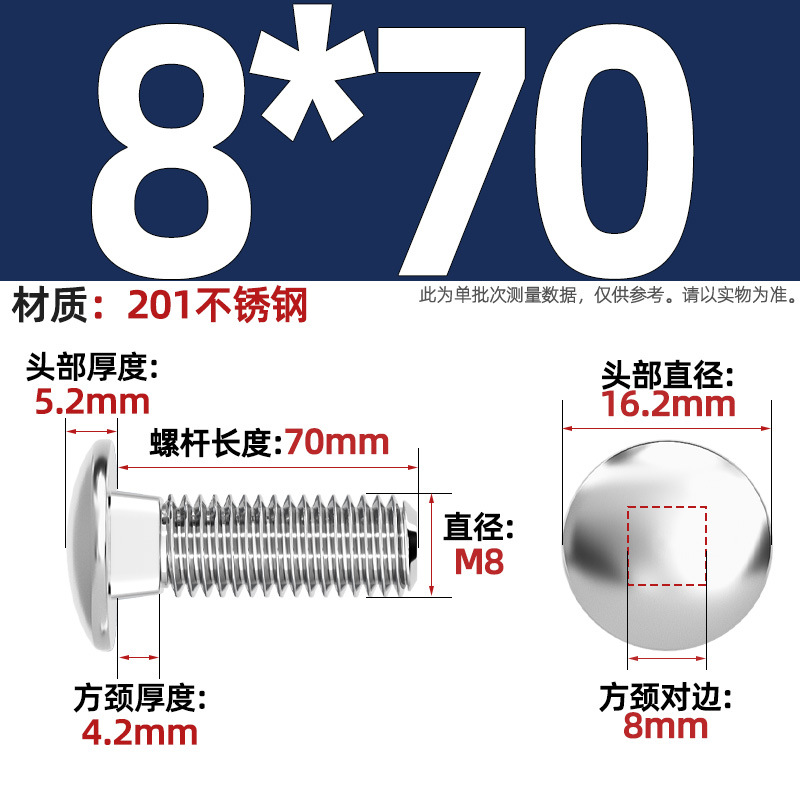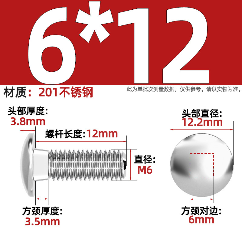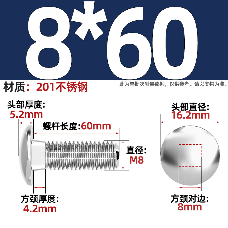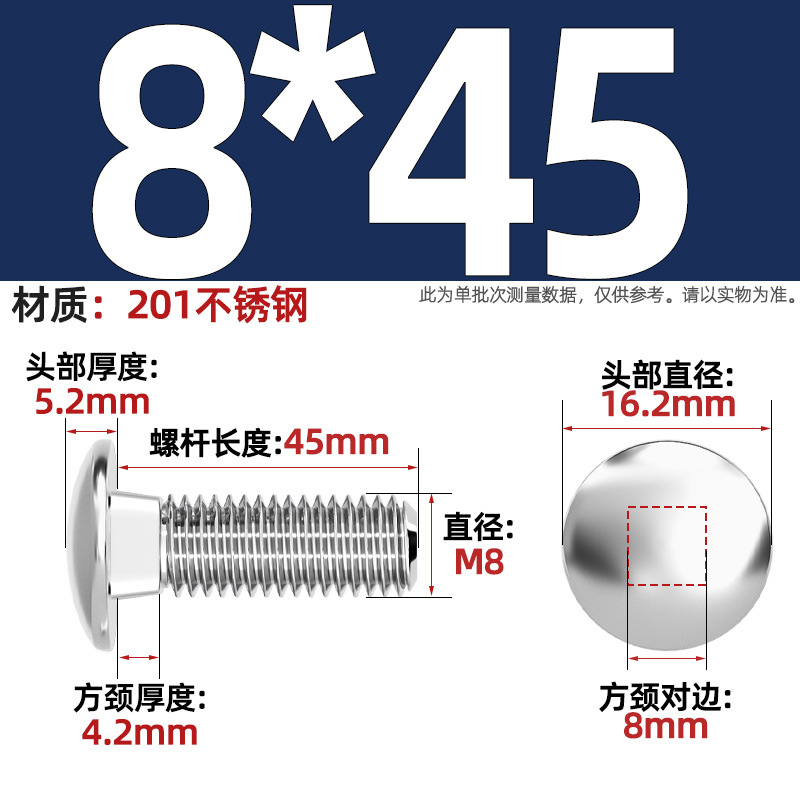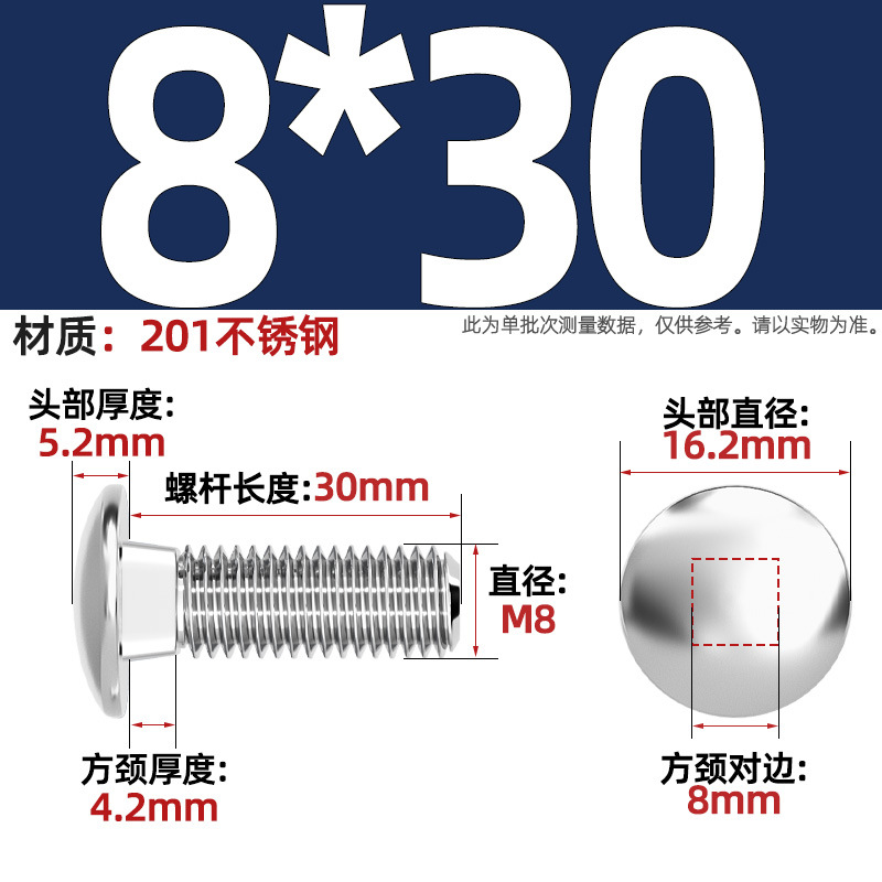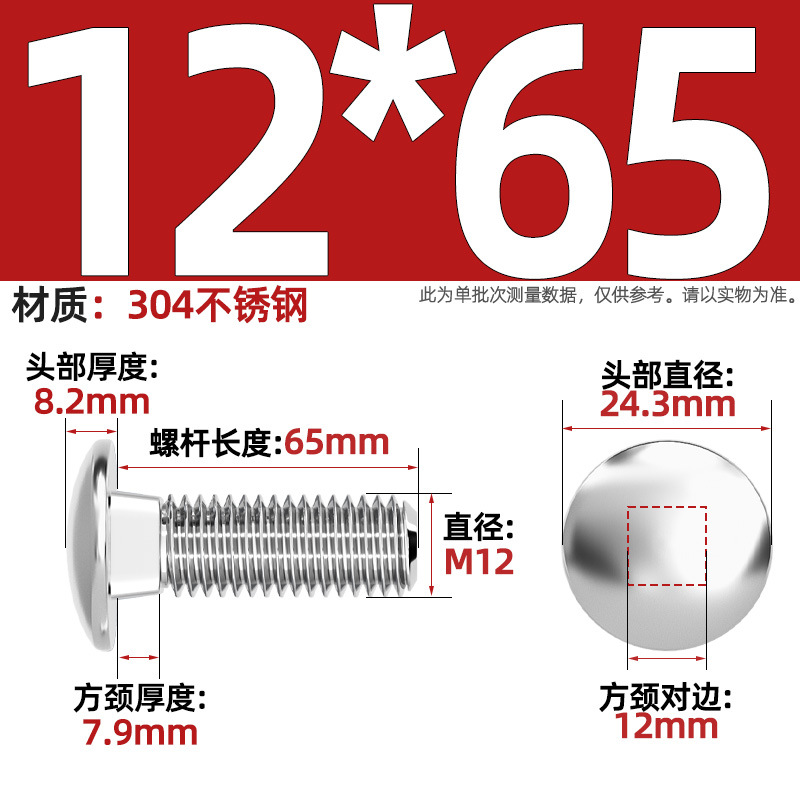 304 스테인레스 스틸 대형 플랫 헤드 반원형 헤드 볼트 사각 넥 나사 브리지 선반 소형 헤드 캐리지 M4-M12