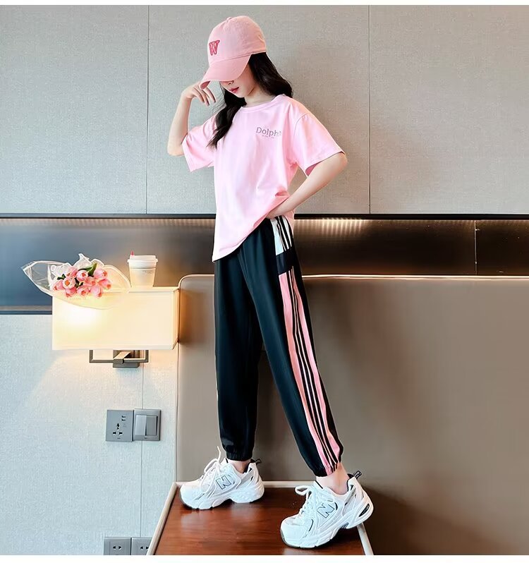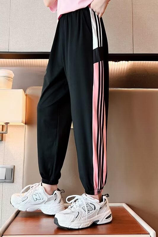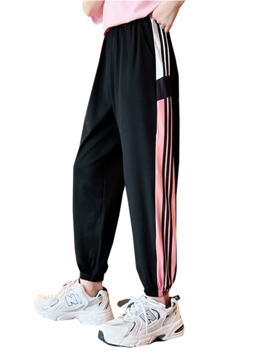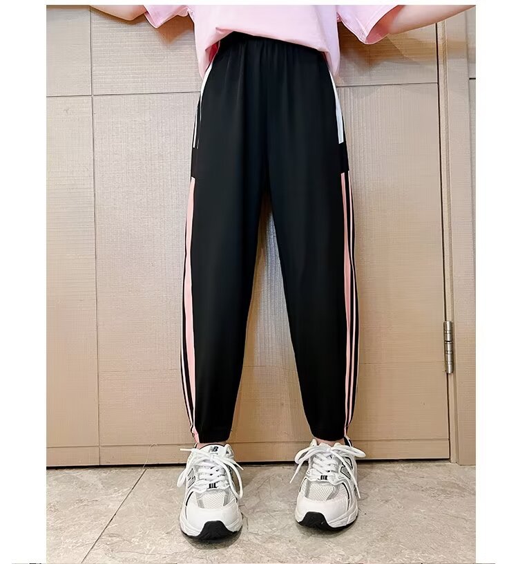 소녀 바지 여름 얇은 얼음 실크 빠른 건조 느슨한 모기 방지 바지 큰 어린이 2024 여름 스포츠 바지