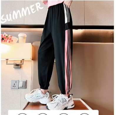 소녀 바지 여름 얇은 얼음 실크 빠른 건조 느슨한 모기 방지 바지 큰 어린이 2024 여름 스포츠 바지스토어 가기