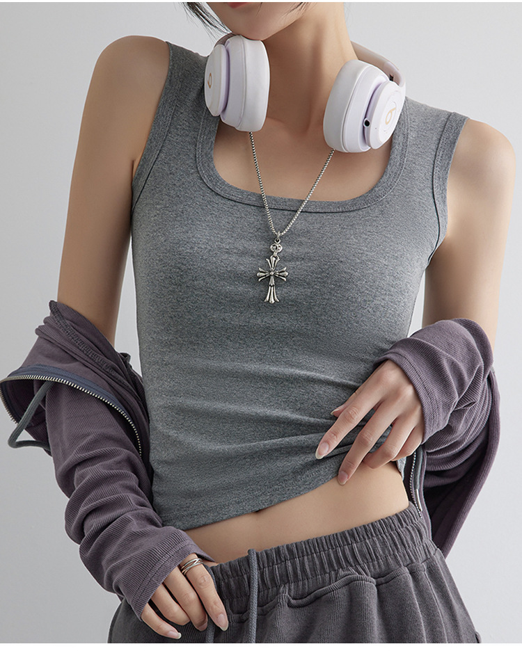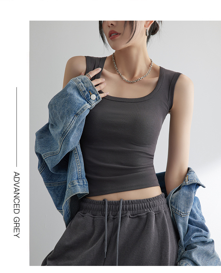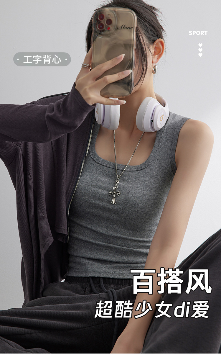 새로운 여름 코튼 카미 솔 조끼 여성베이스 내부 착용 외부 Auxilum I-Shoulder 아메리칸 스타일 와이드 숄더 벨트 탑