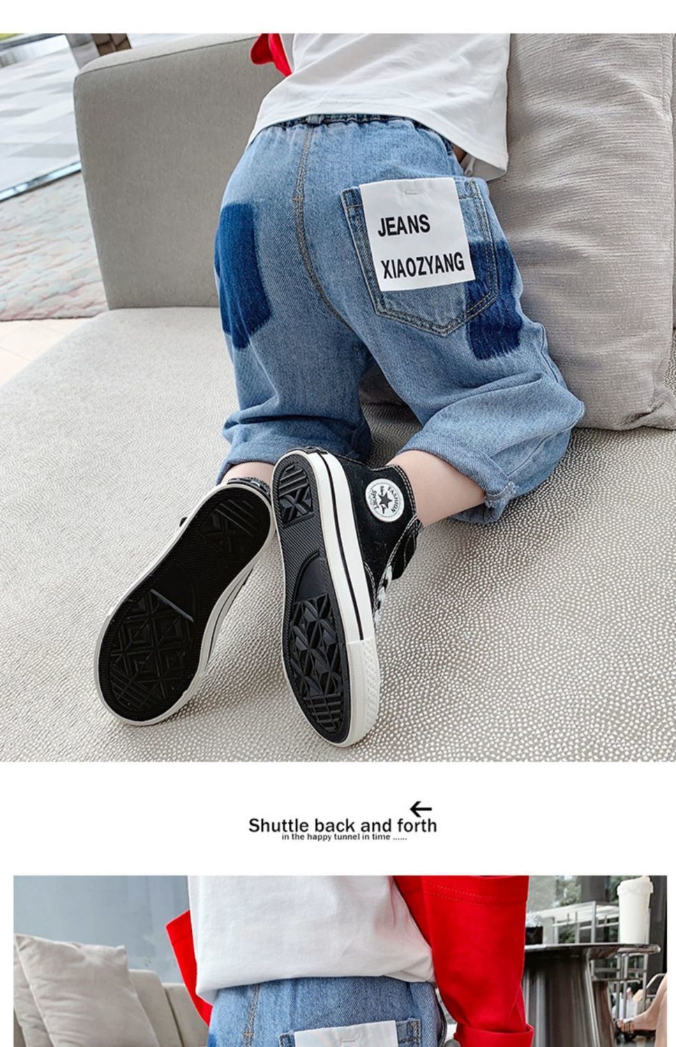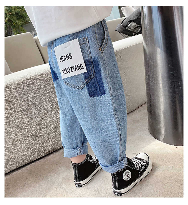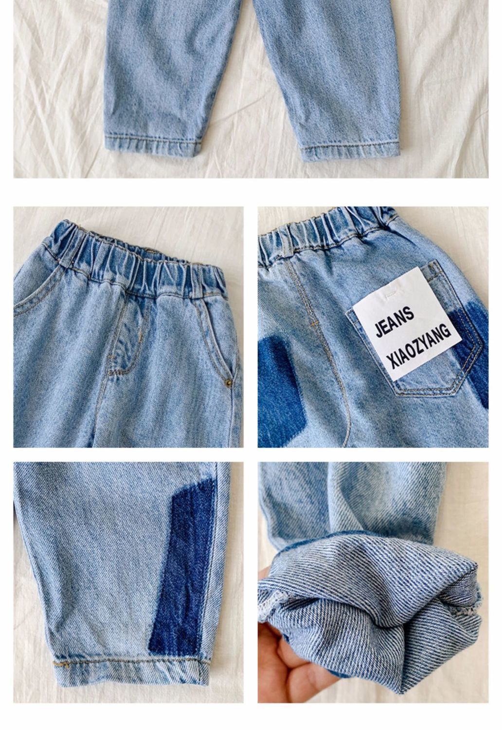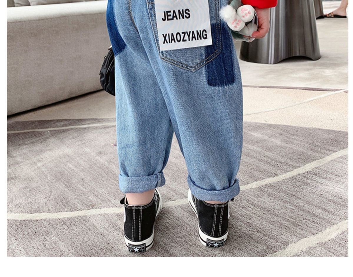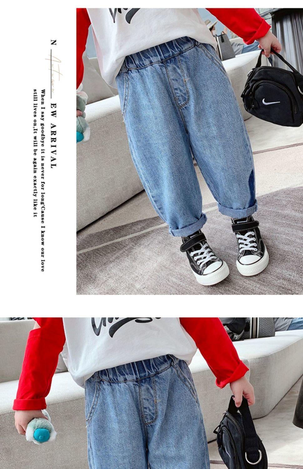소녀 청바지 2024 년 봄과 가을 새로운 도착 유행 남자 아기의 가을 어린이 가을 서양식 순무 바지
