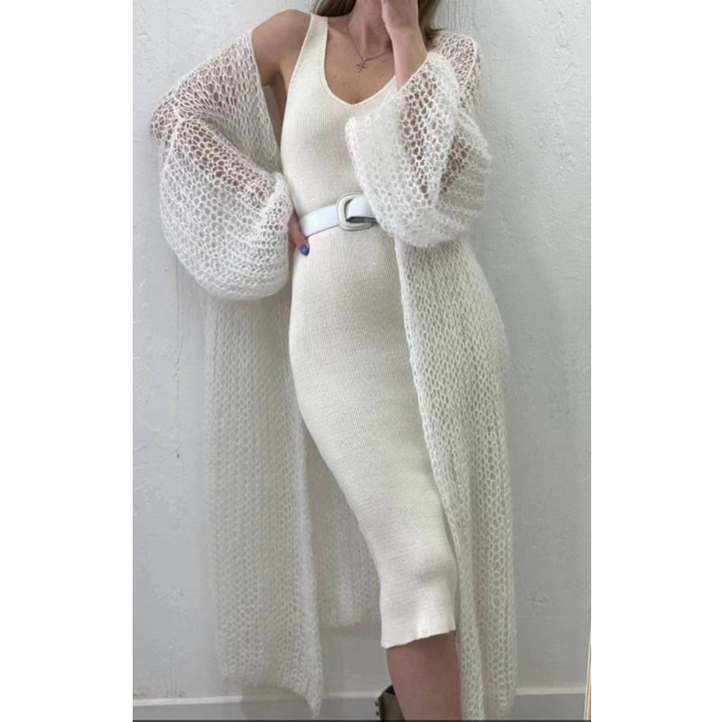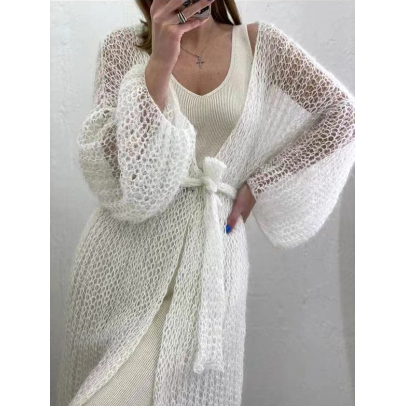 2025 한국 신상 레이지 스타일 여성용 자외선 차단 탑 재킷 루즈 롱 경량 니트 레이스 업 솔리드 컬러 가디건스토어 가기