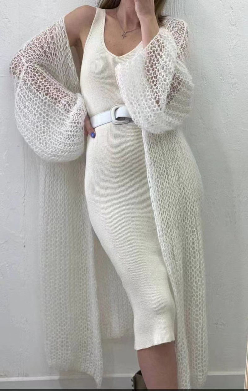 2025 한국 신상 레이지 스타일 여성용 자외선 차단 탑 재킷 루즈 롱 경량 니트 레이스 업 솔리드 컬러 가디건